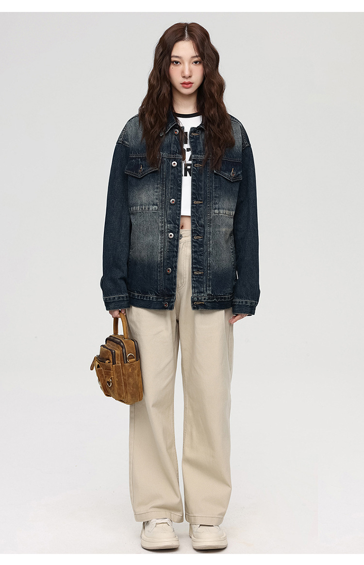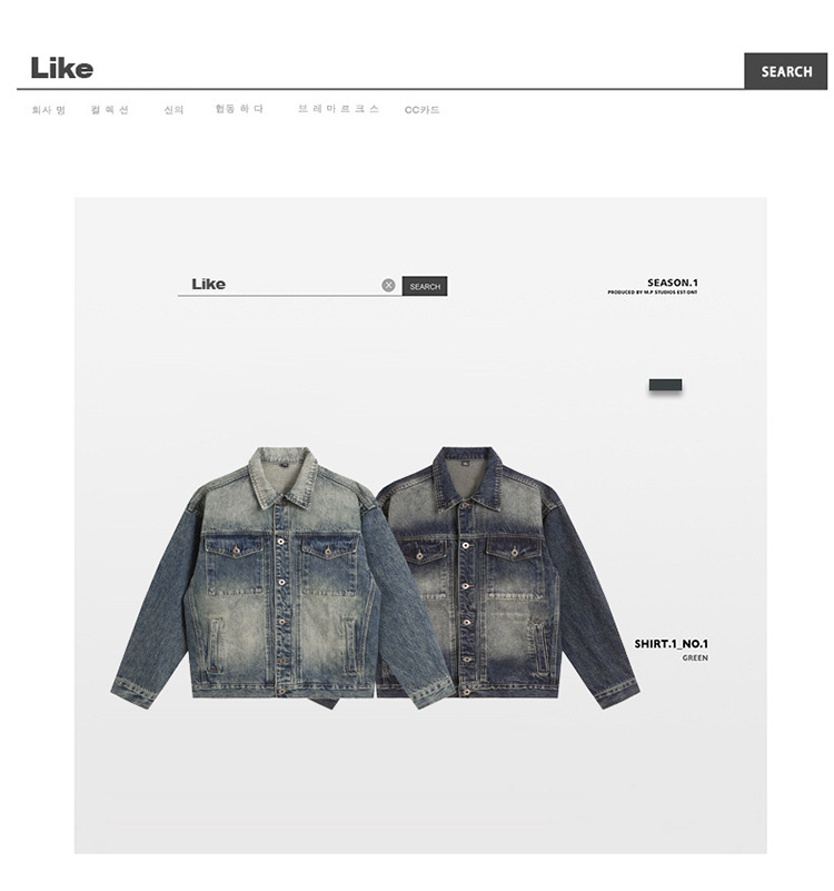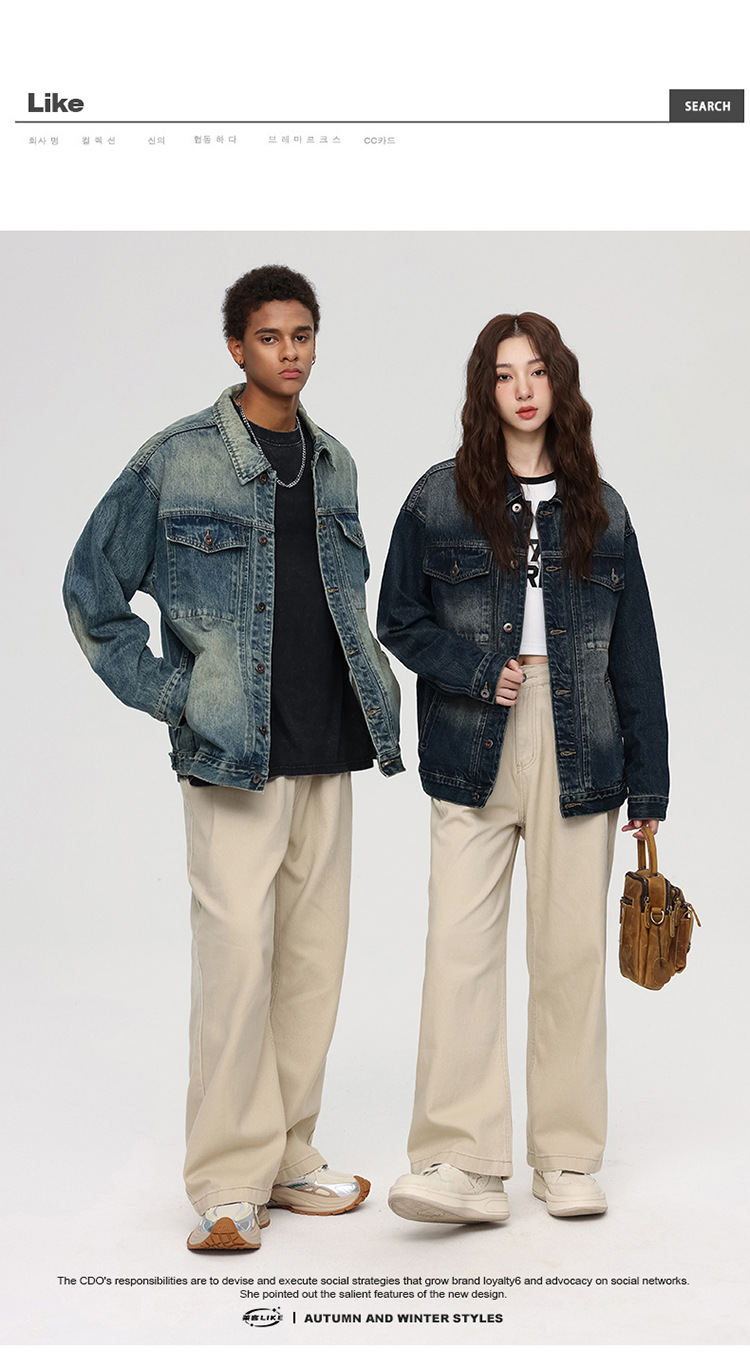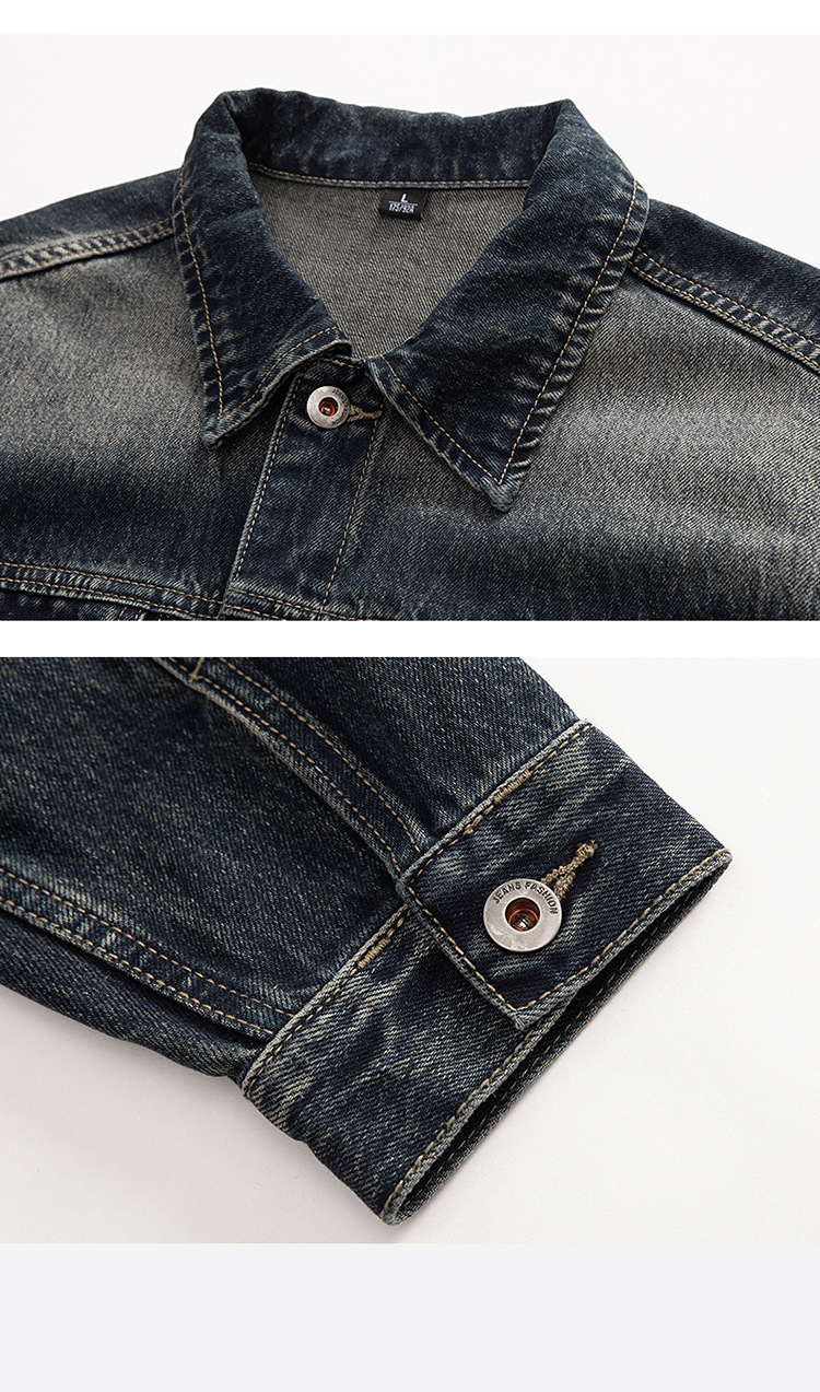 厂家直销男士宽松牛仔外套,春秋休闲美式风格,多口袋设计,街潮牛仔夹克
