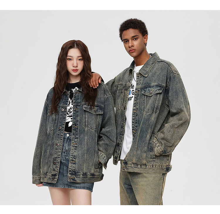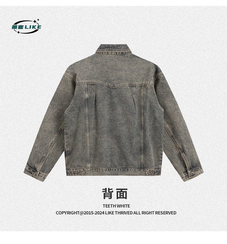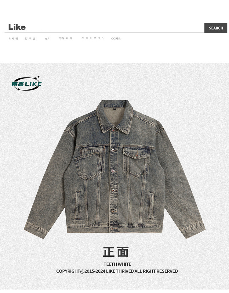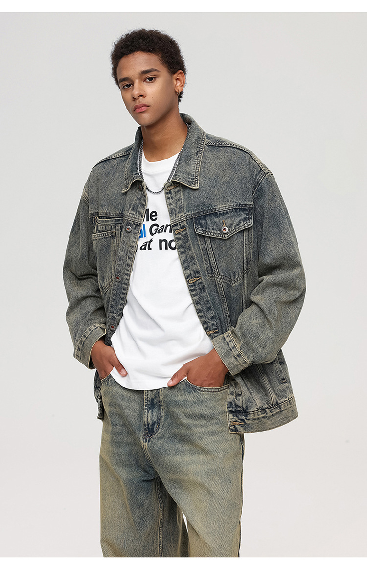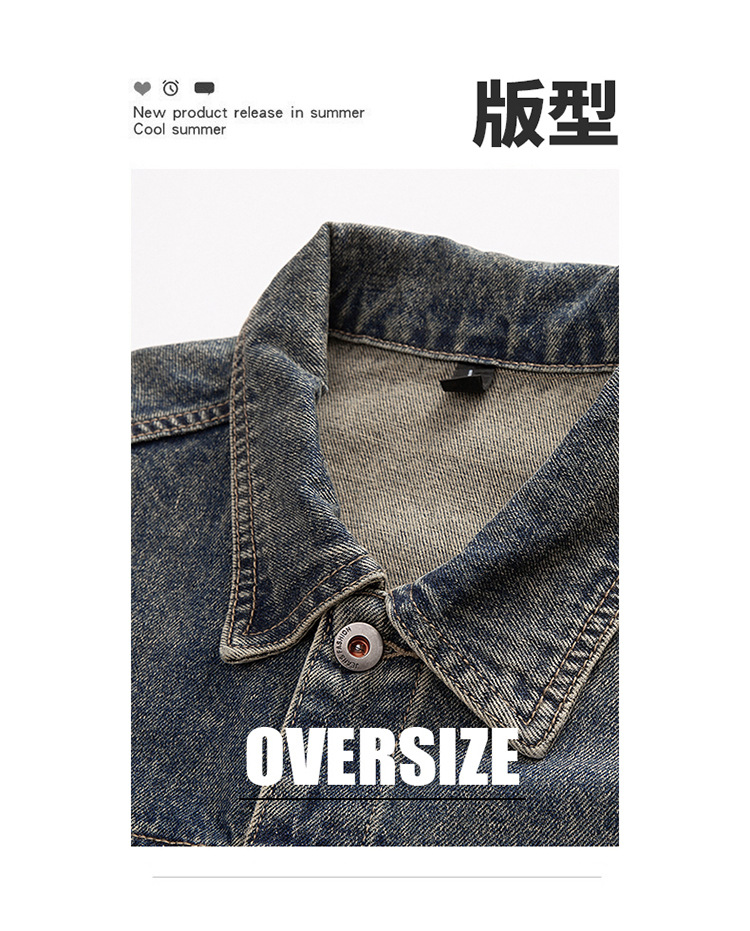 厂家直销男士宽松水洗牛仔外套,复古风格,休闲高街款,适合春秋季,多口袋设计