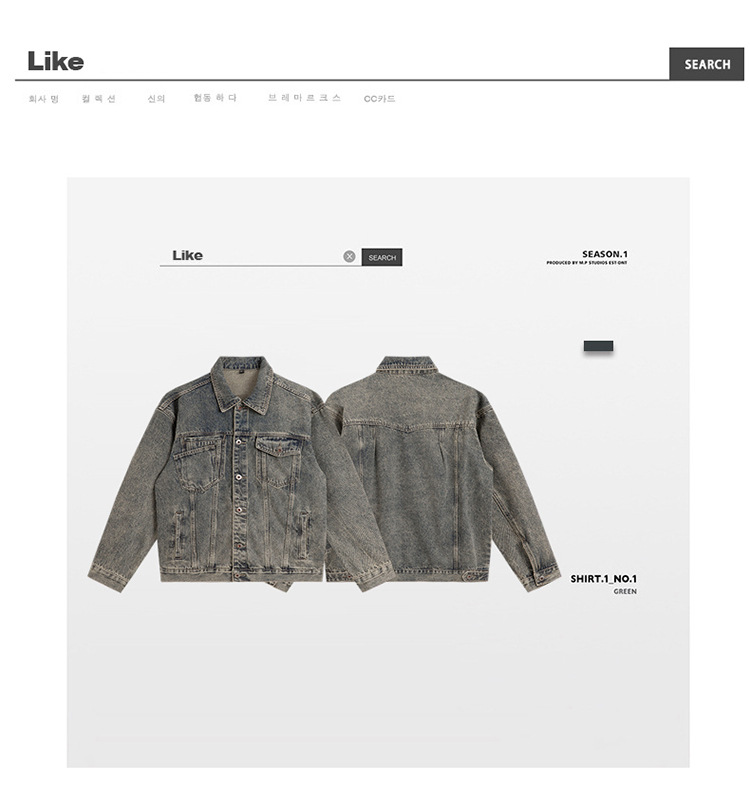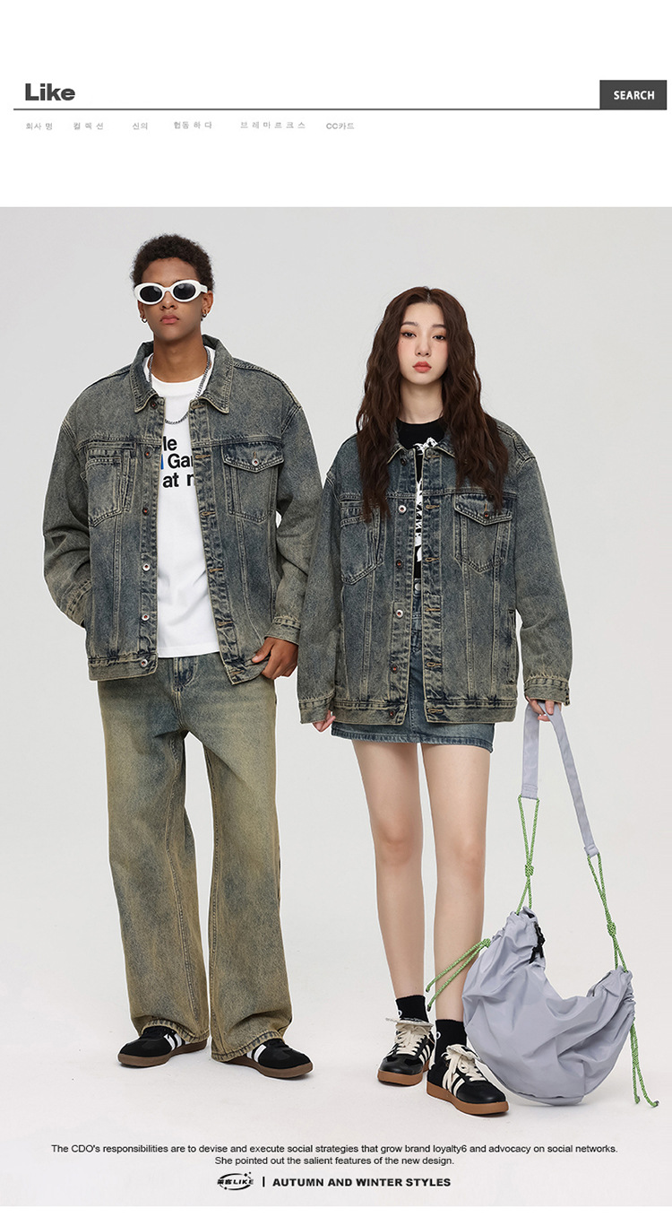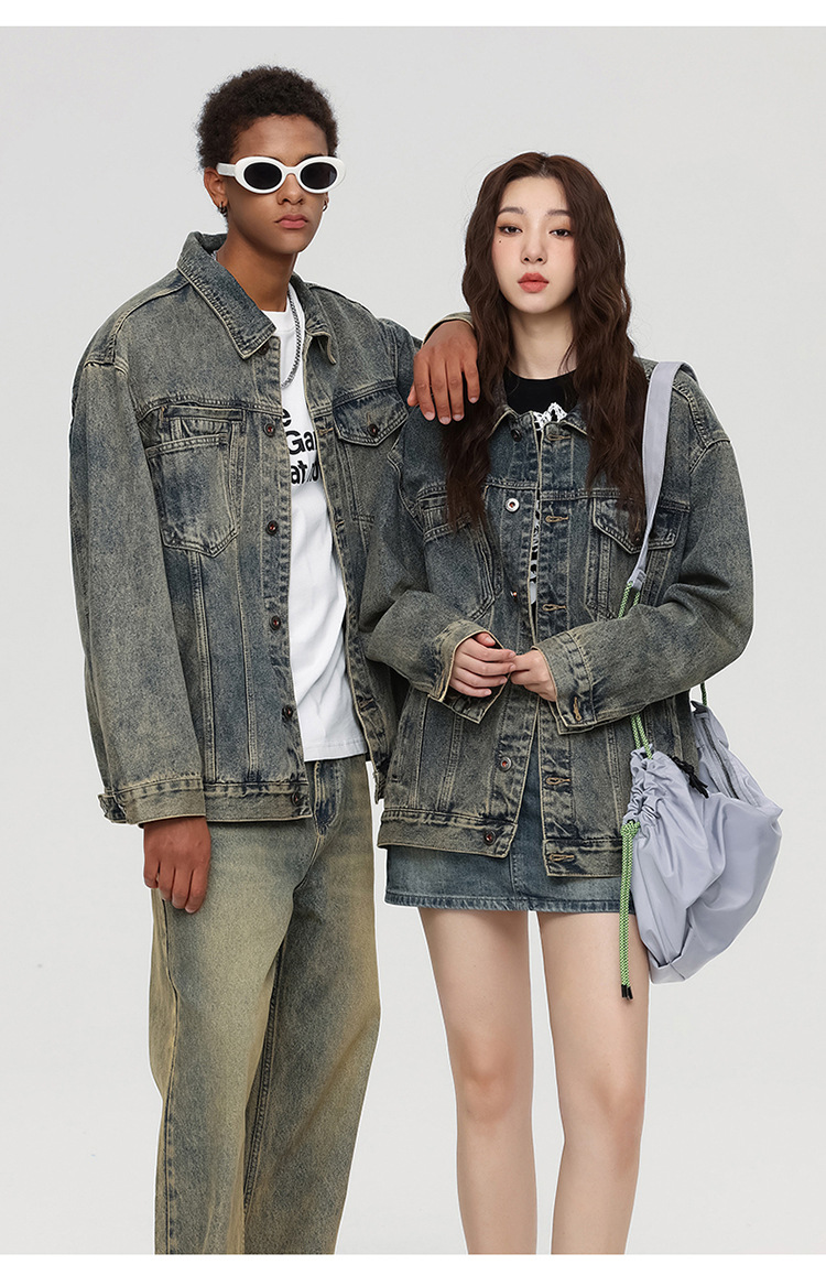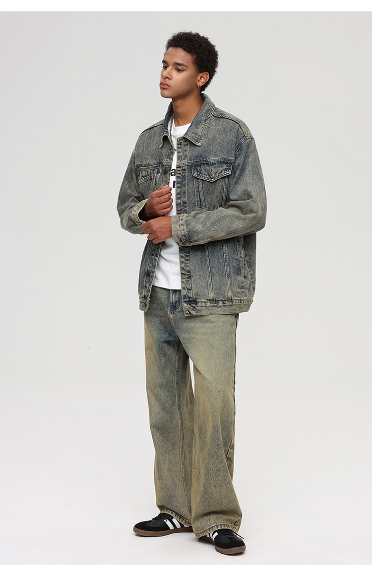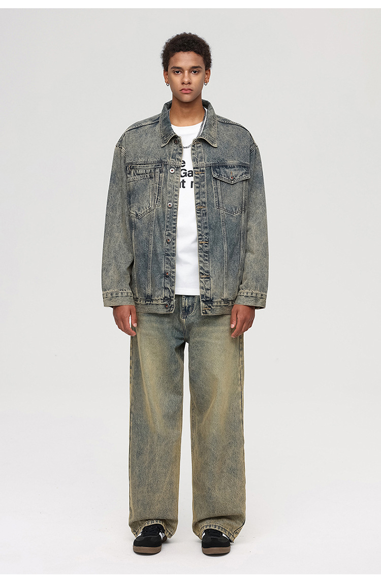 厂家直销男士宽松水洗牛仔外套,复古风格,休闲高街款,适合春秋季,多口袋设计