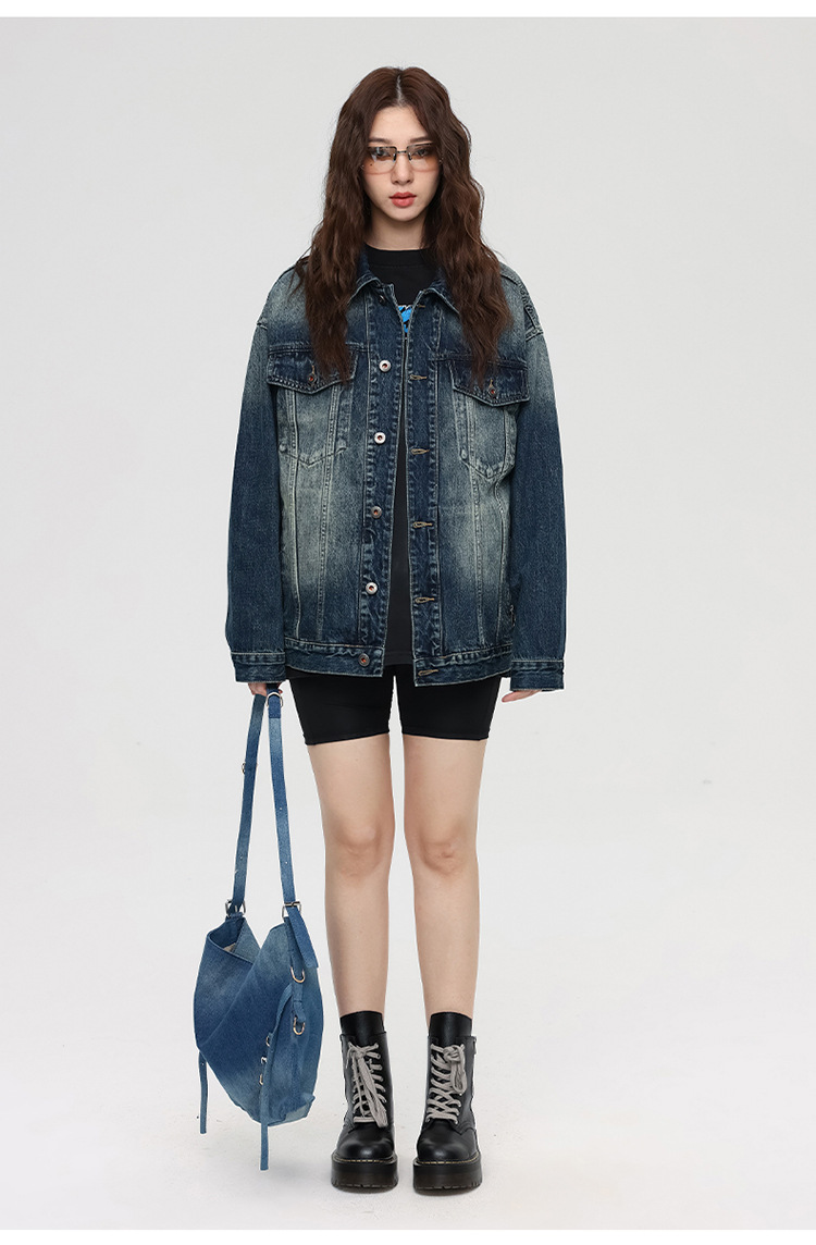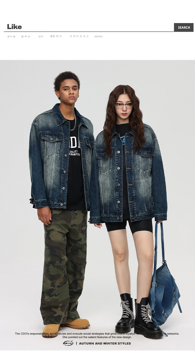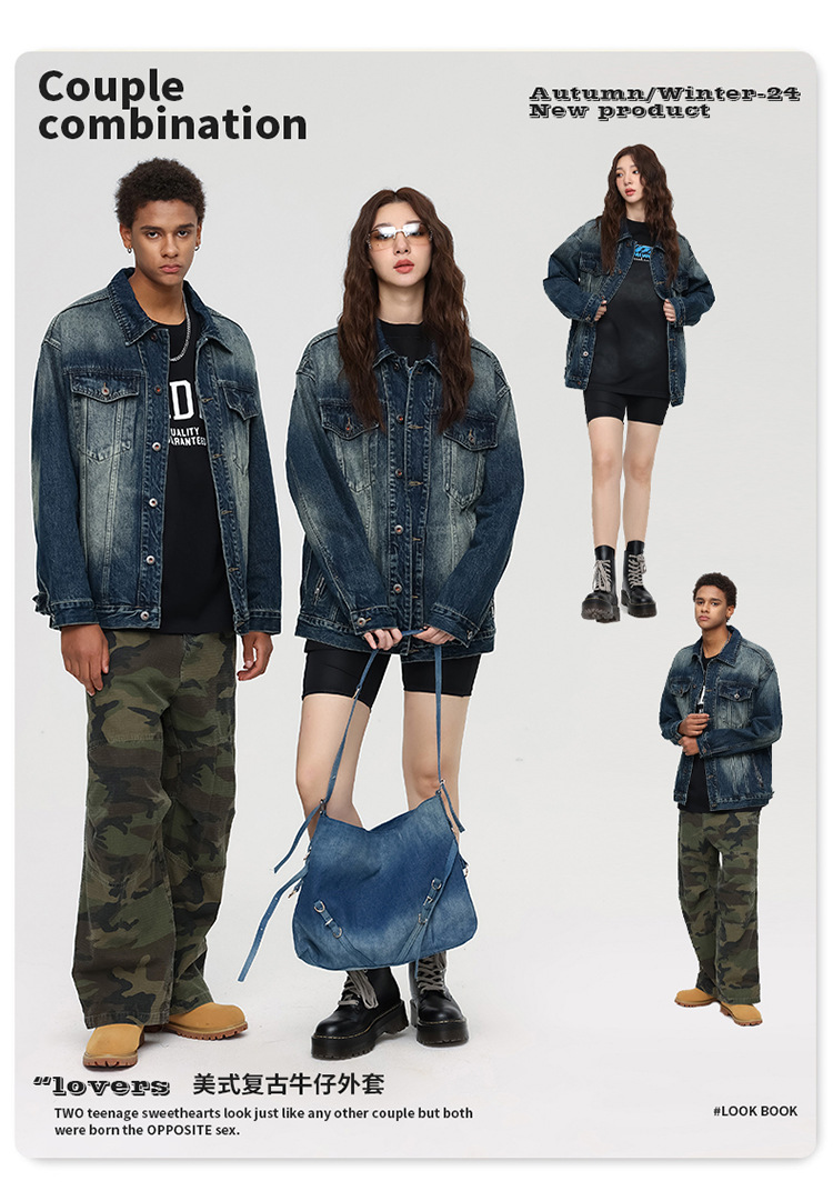 厂家直销男士春秋宽松牛仔外套,高级美式街潮风,牛仔夹克,日常休闲,时尚百搭