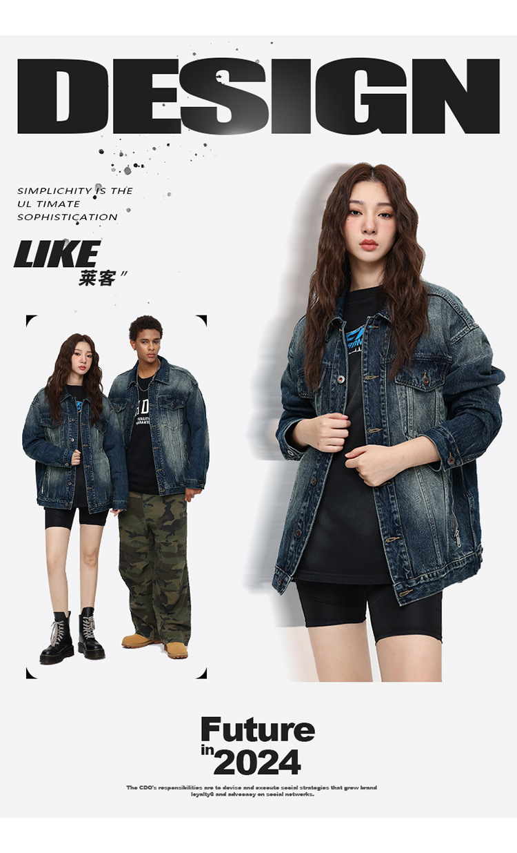 本款潮牌牛仔外套对比正常码数会宽松一些,挑选比自己原码数小一码来穿可能会更加合适哦。