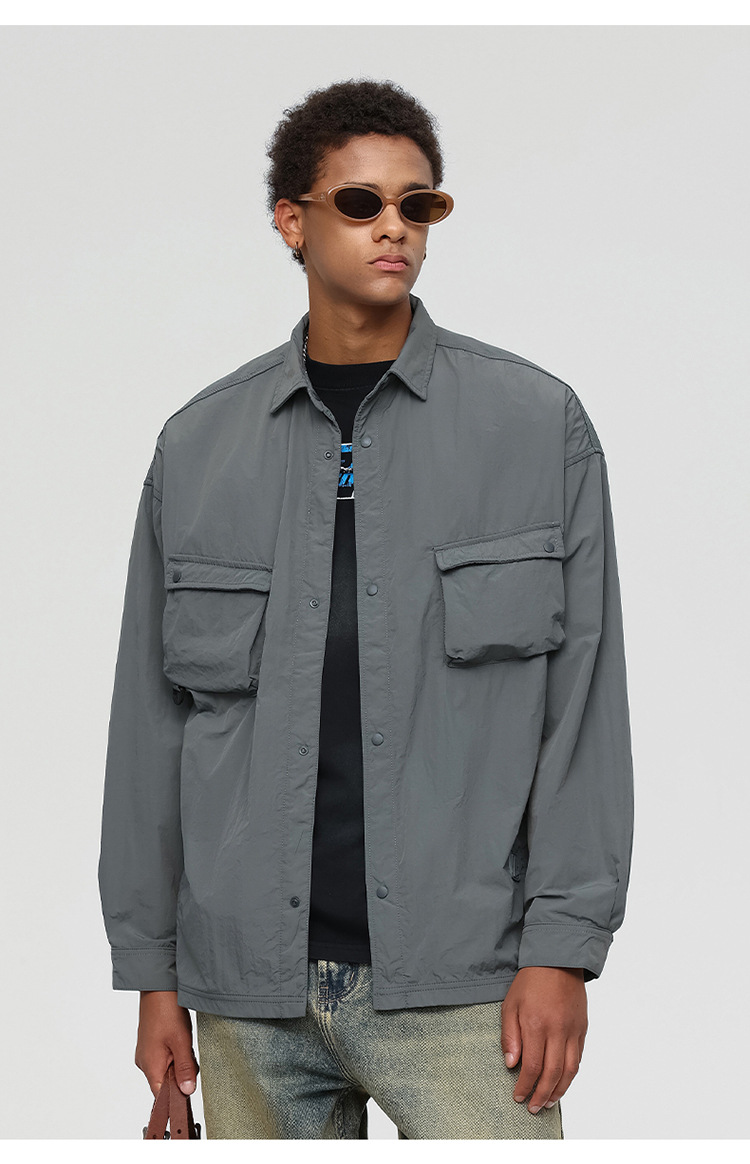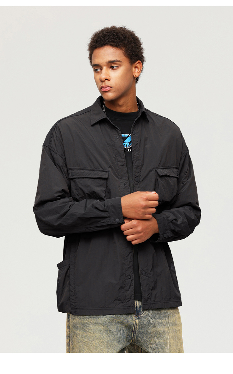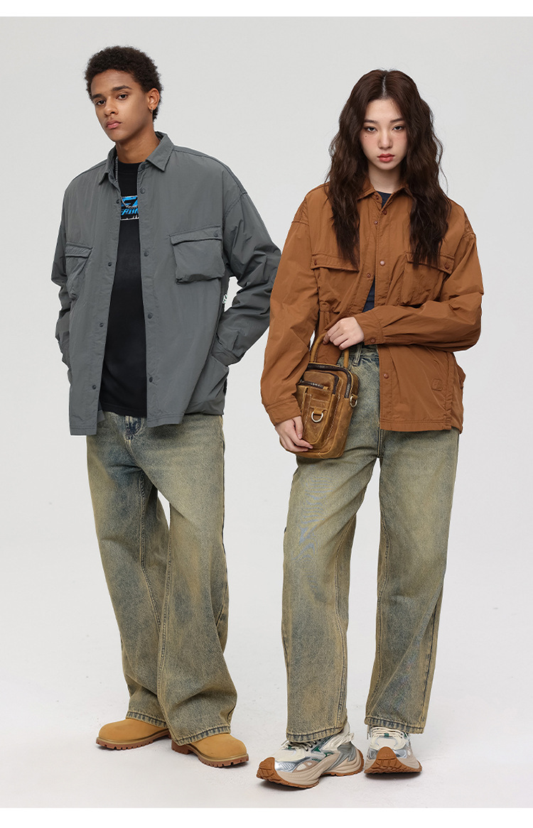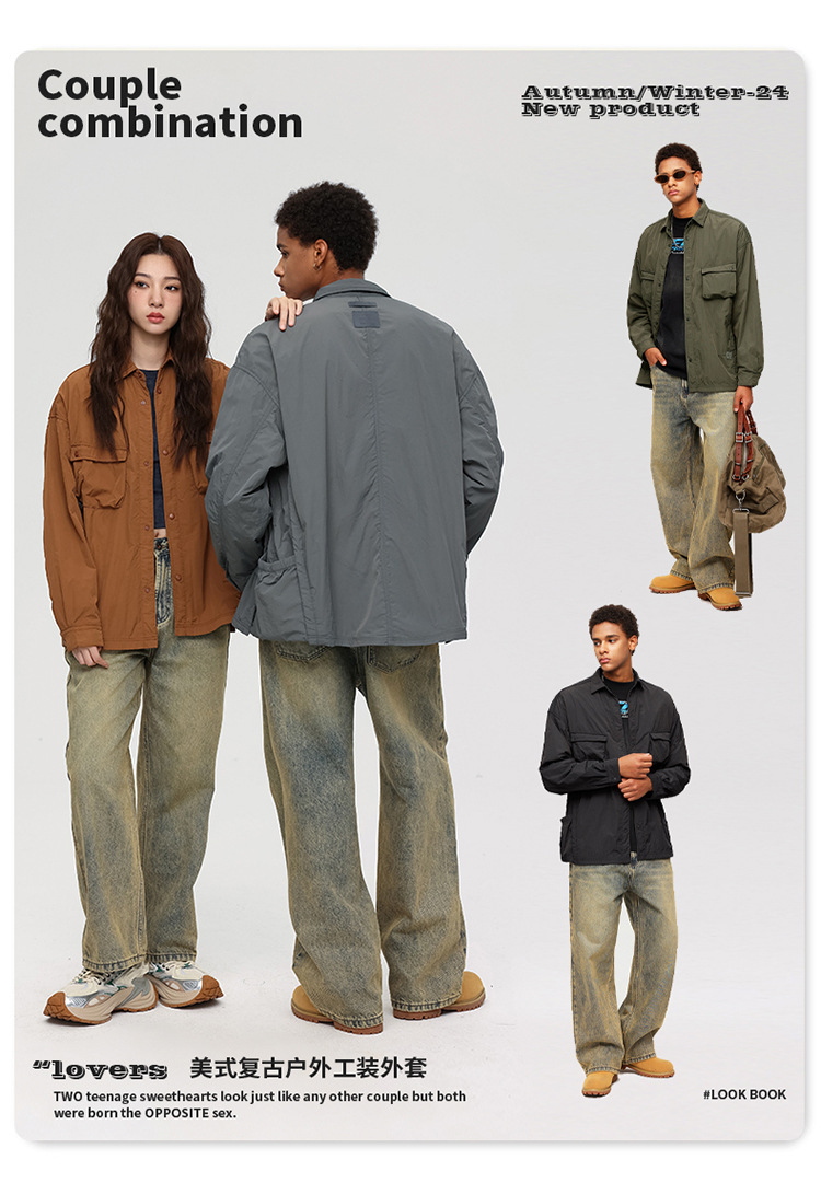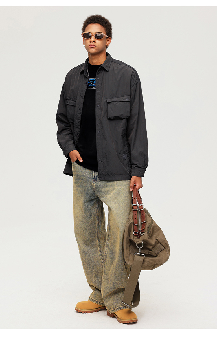 厂家直销男士宽松简约多口袋牛仔外套,休闲风格,免烫处理