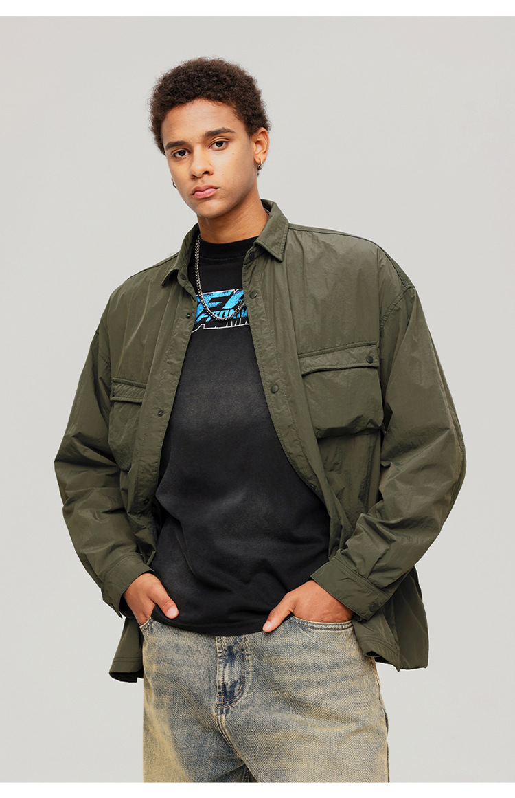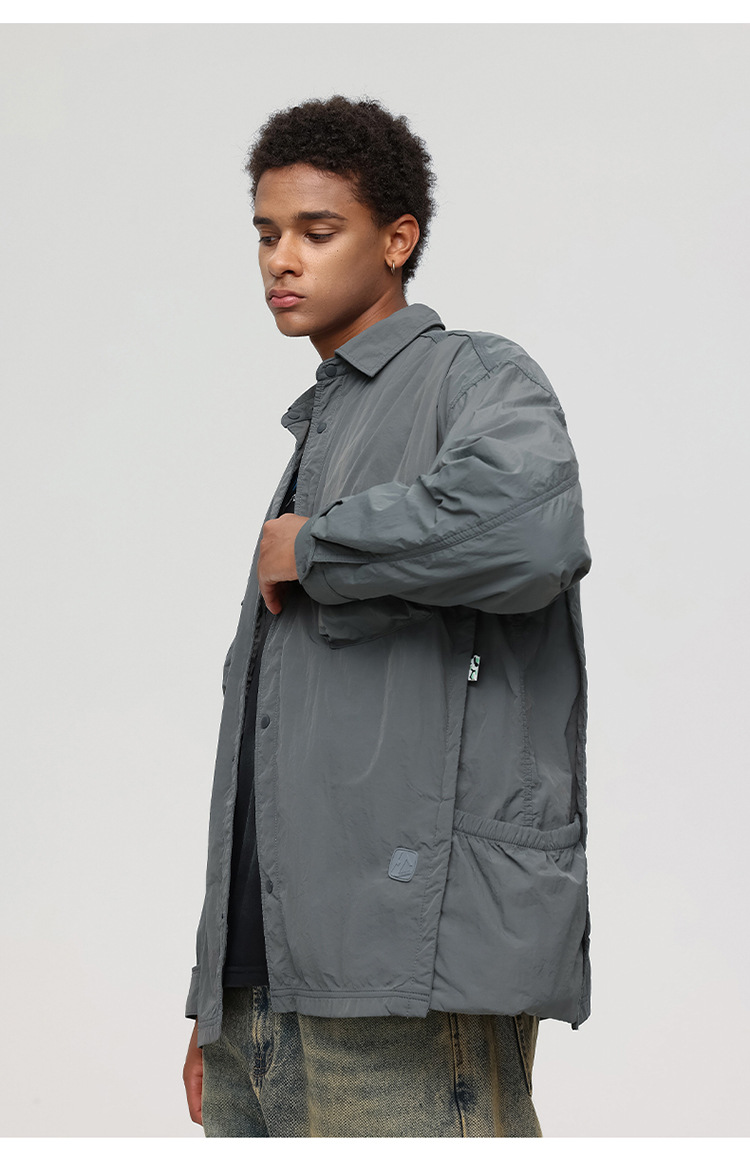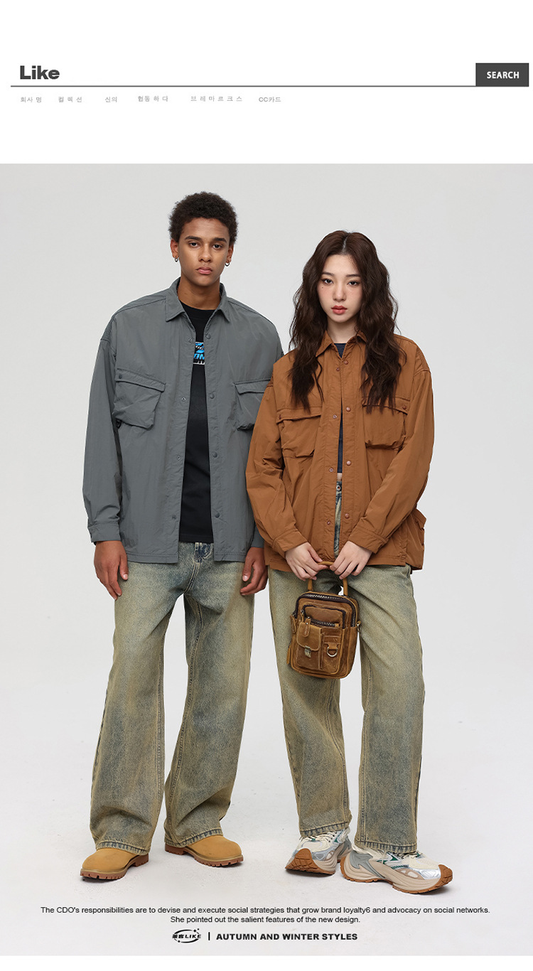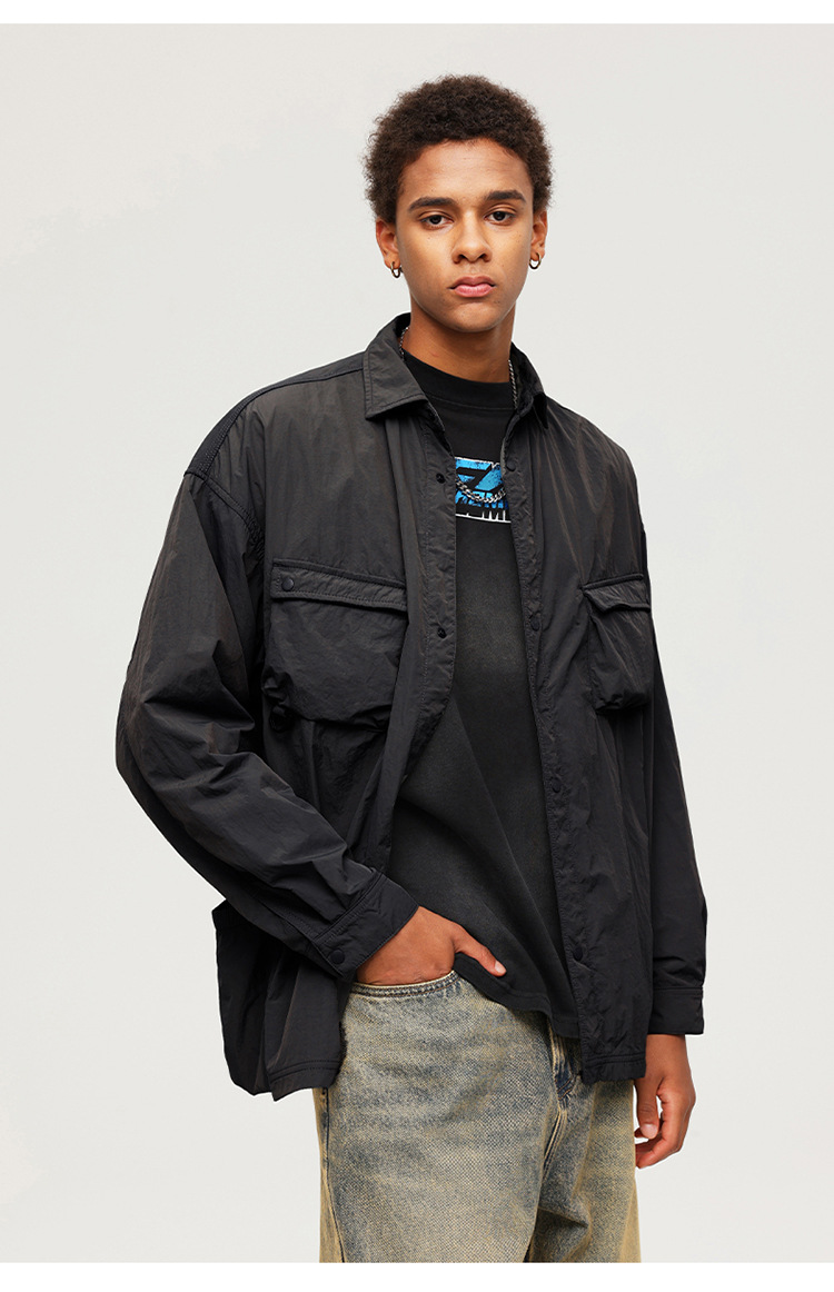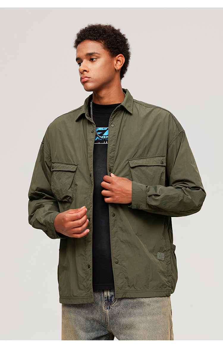 厂家直销男士宽松简约多口袋牛仔外套,休闲风格,免烫处理