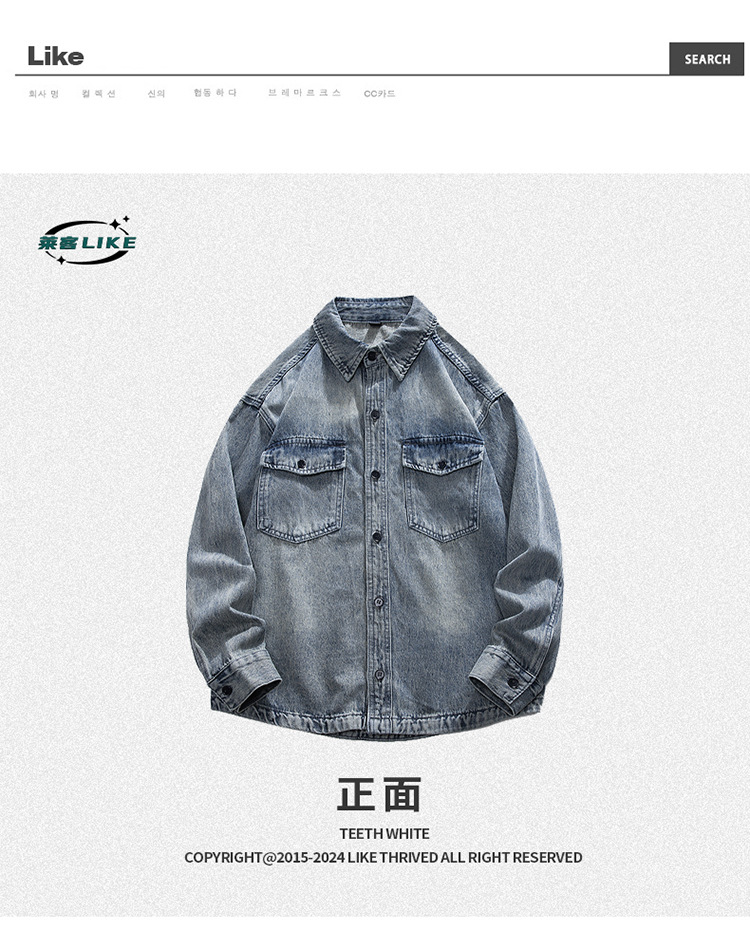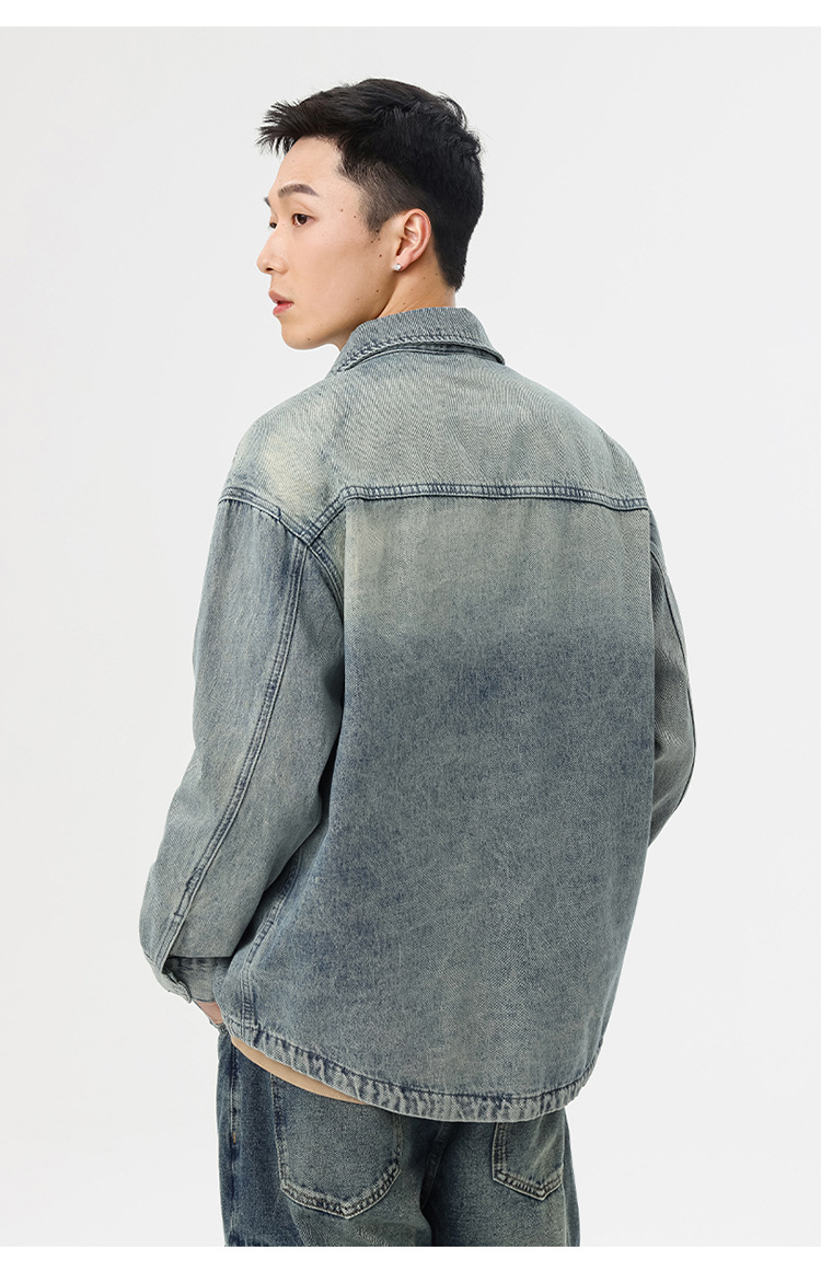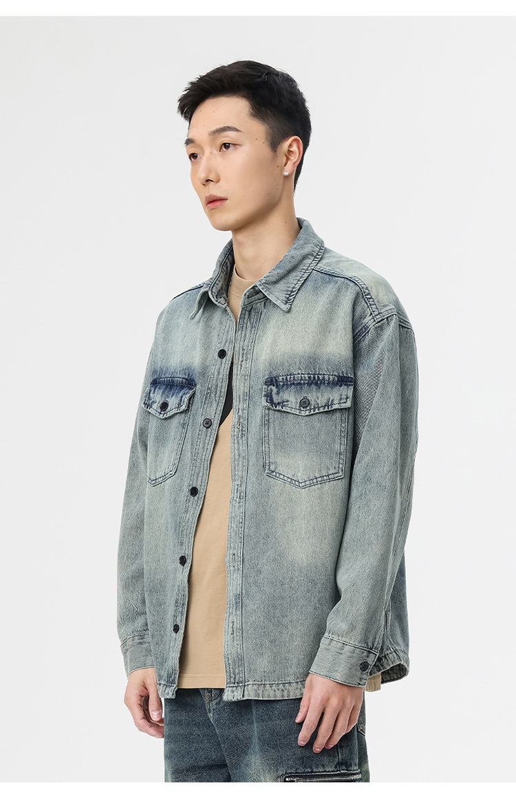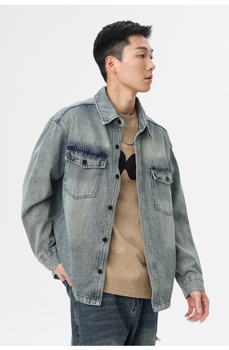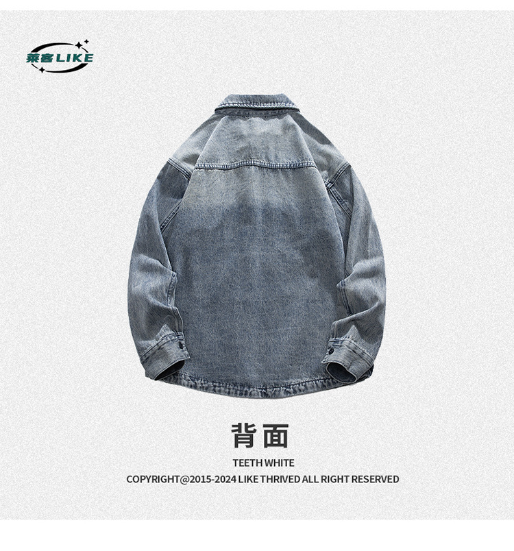 厂家直销男士宽松薄款牛仔外套,复古拼色设计,休闲风格,适合春秋季,耐磨口袋装饰