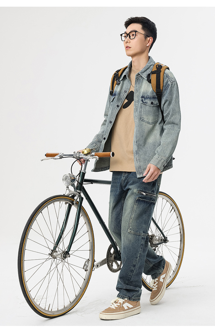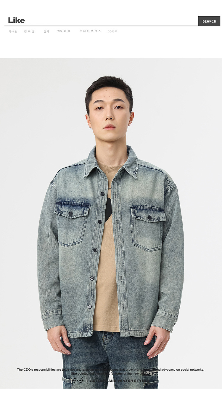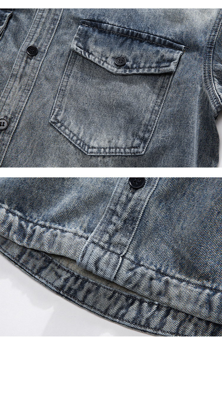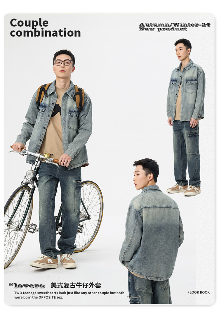 厂家直销男士宽松薄款牛仔外套,复古拼色设计,休闲风格,适合春秋季,耐磨口袋装饰
