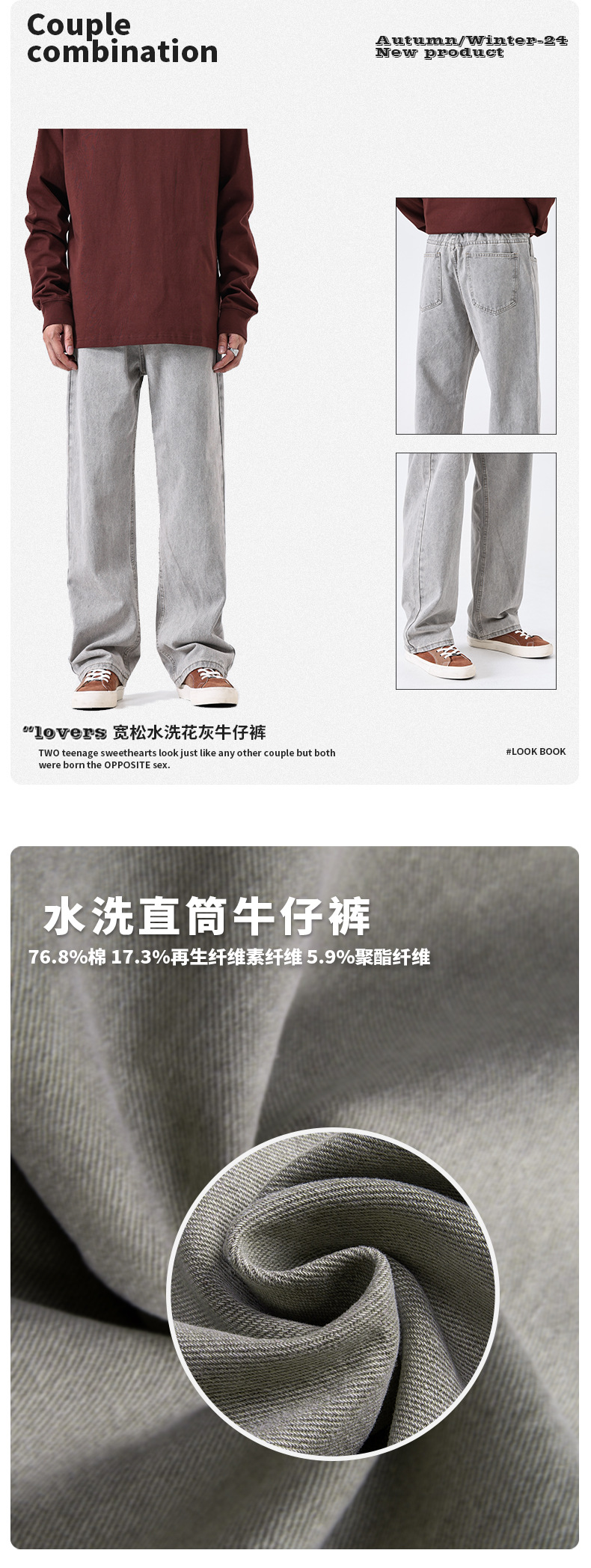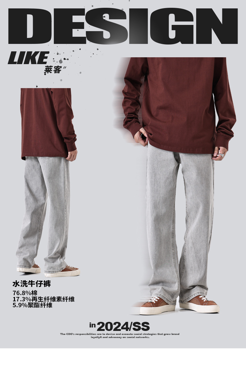 厂家直销男士宽松复古水洗牛仔裤,春秋季高街风格直筒长裤,时尚休闲必备
