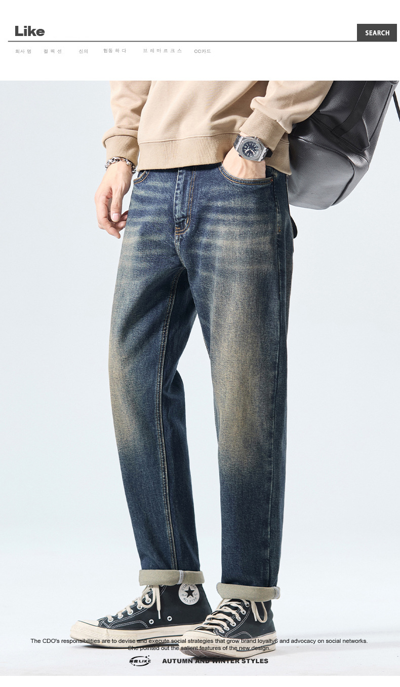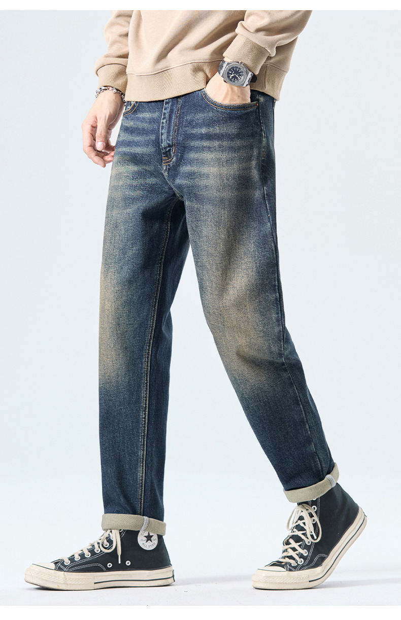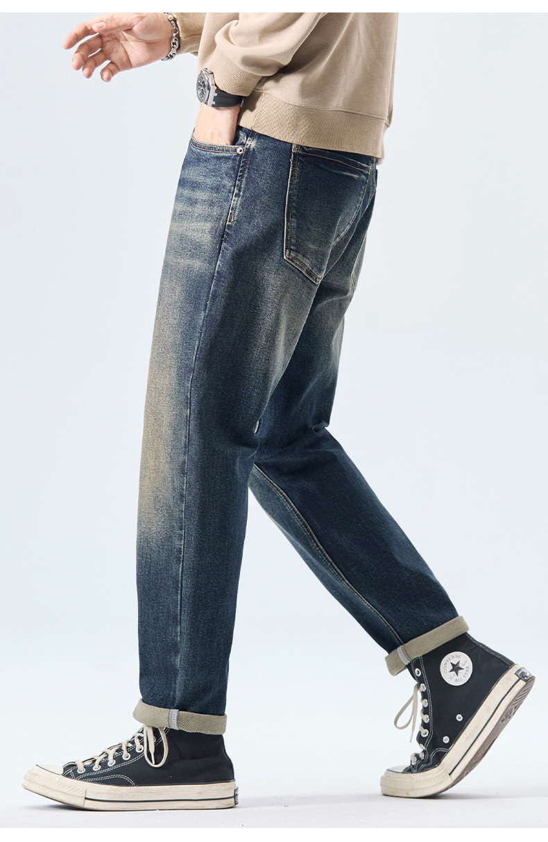 厂家直销男士修身透气弹力哈伦牛仔裤,春秋休闲款式,水洗仿旧设计