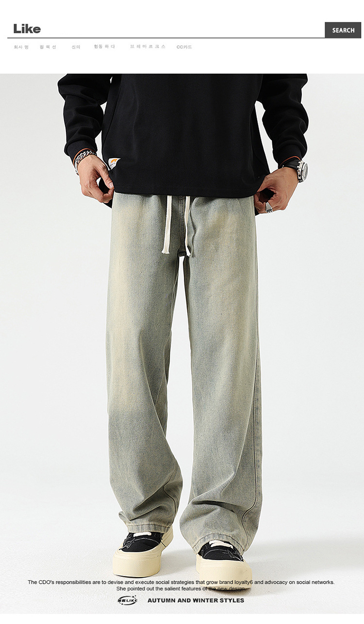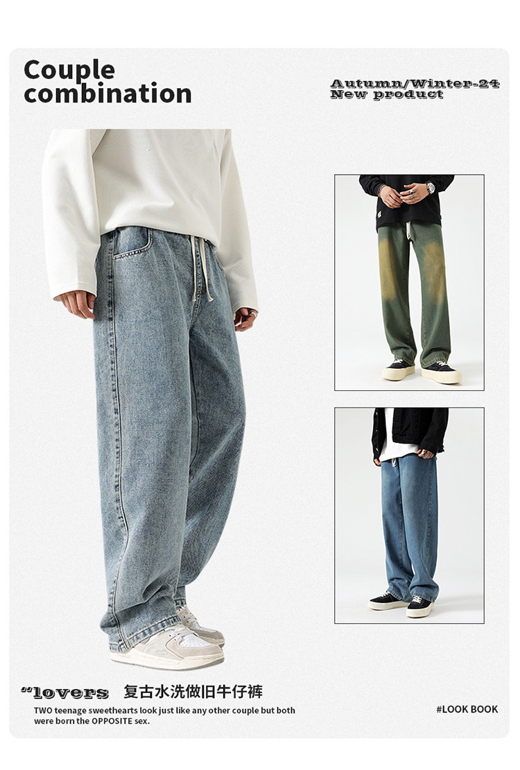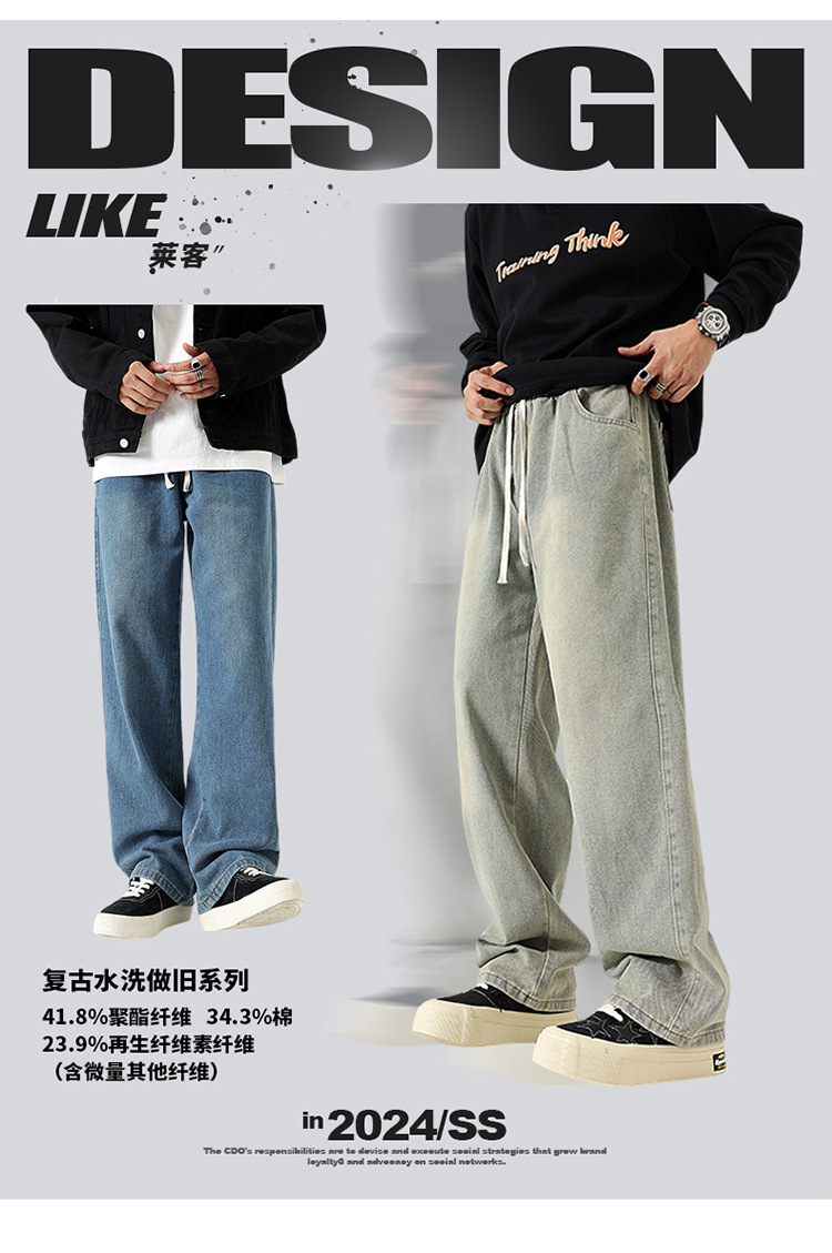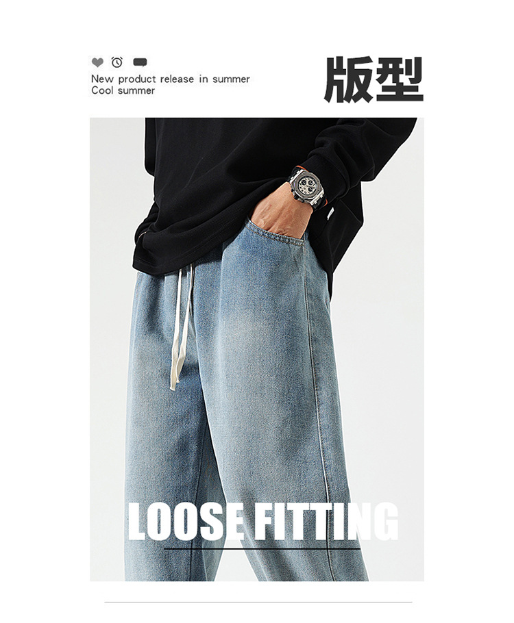 厂家直销男士修身复古牛仔裤,直筒设计,夏季休闲风格,水洗处理,适合日常穿着