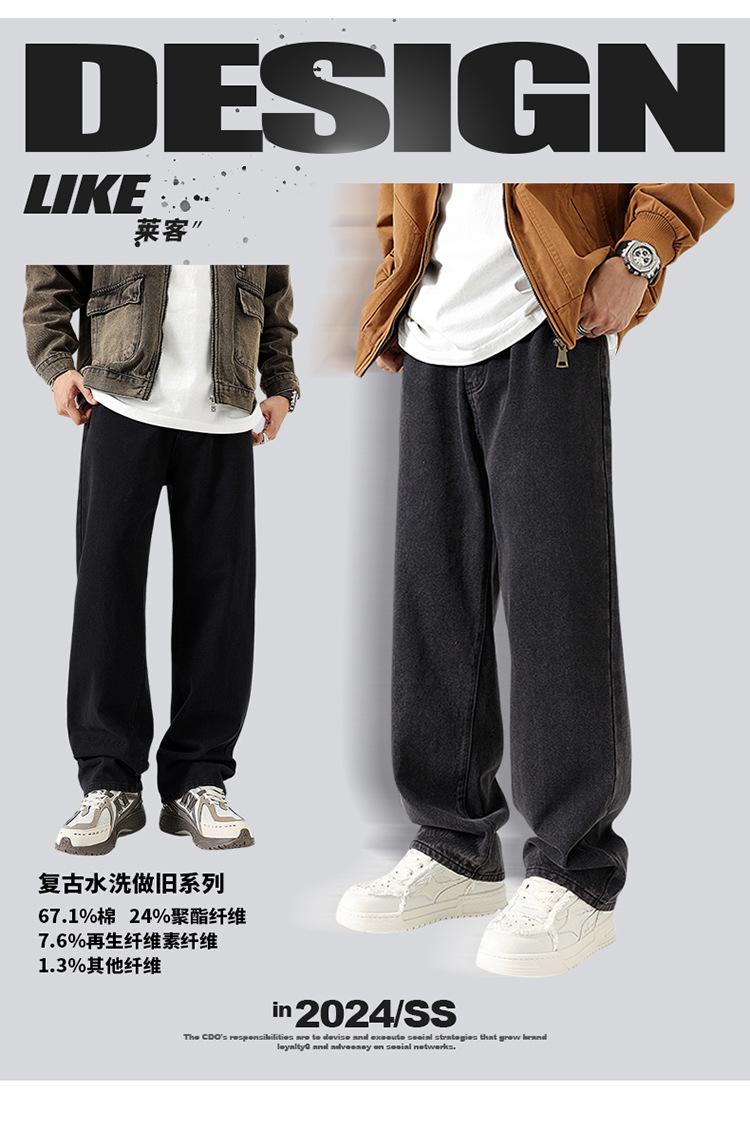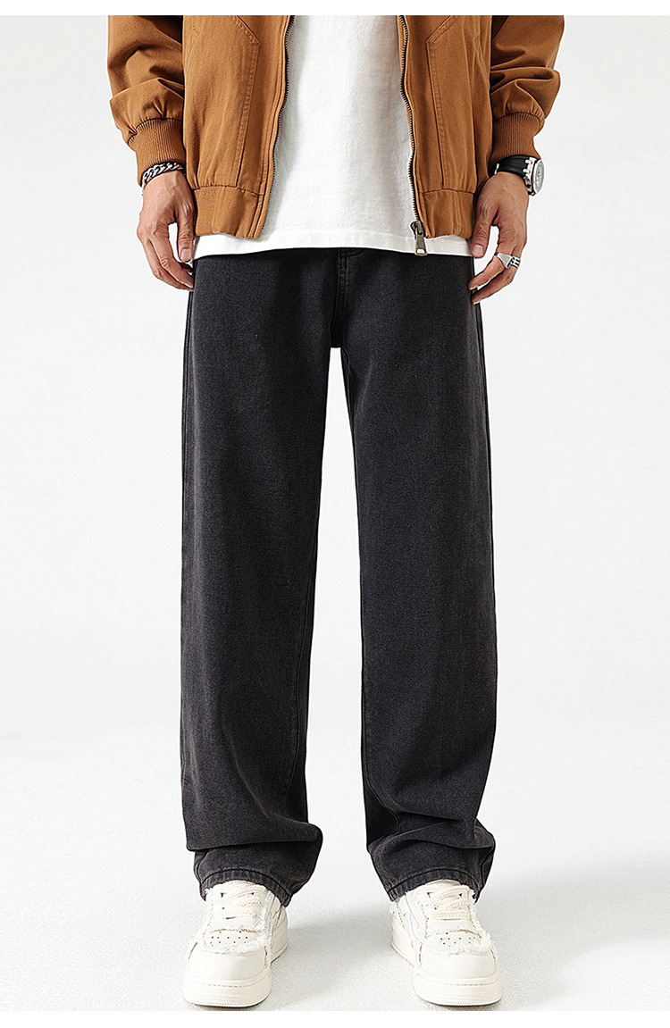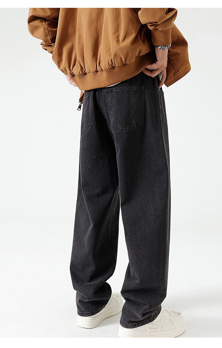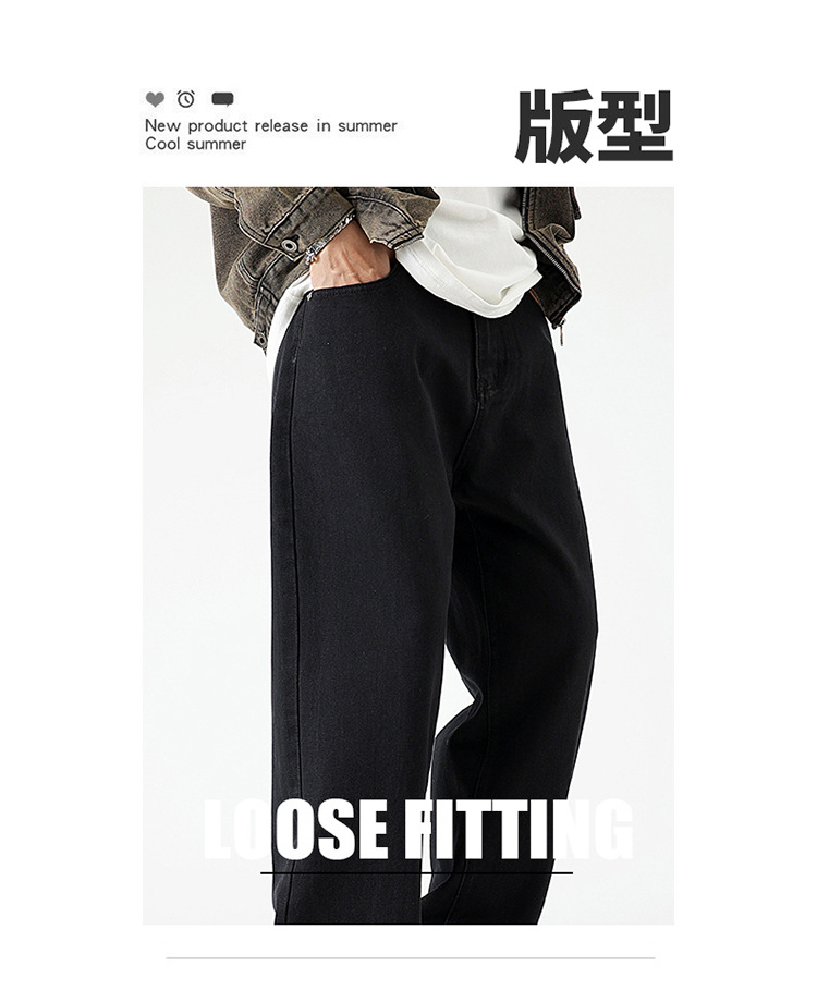 厂家直销男士宽松黑色牛仔裤,水洗直筒版型,春秋日常穿搭必备,青春潮流风格