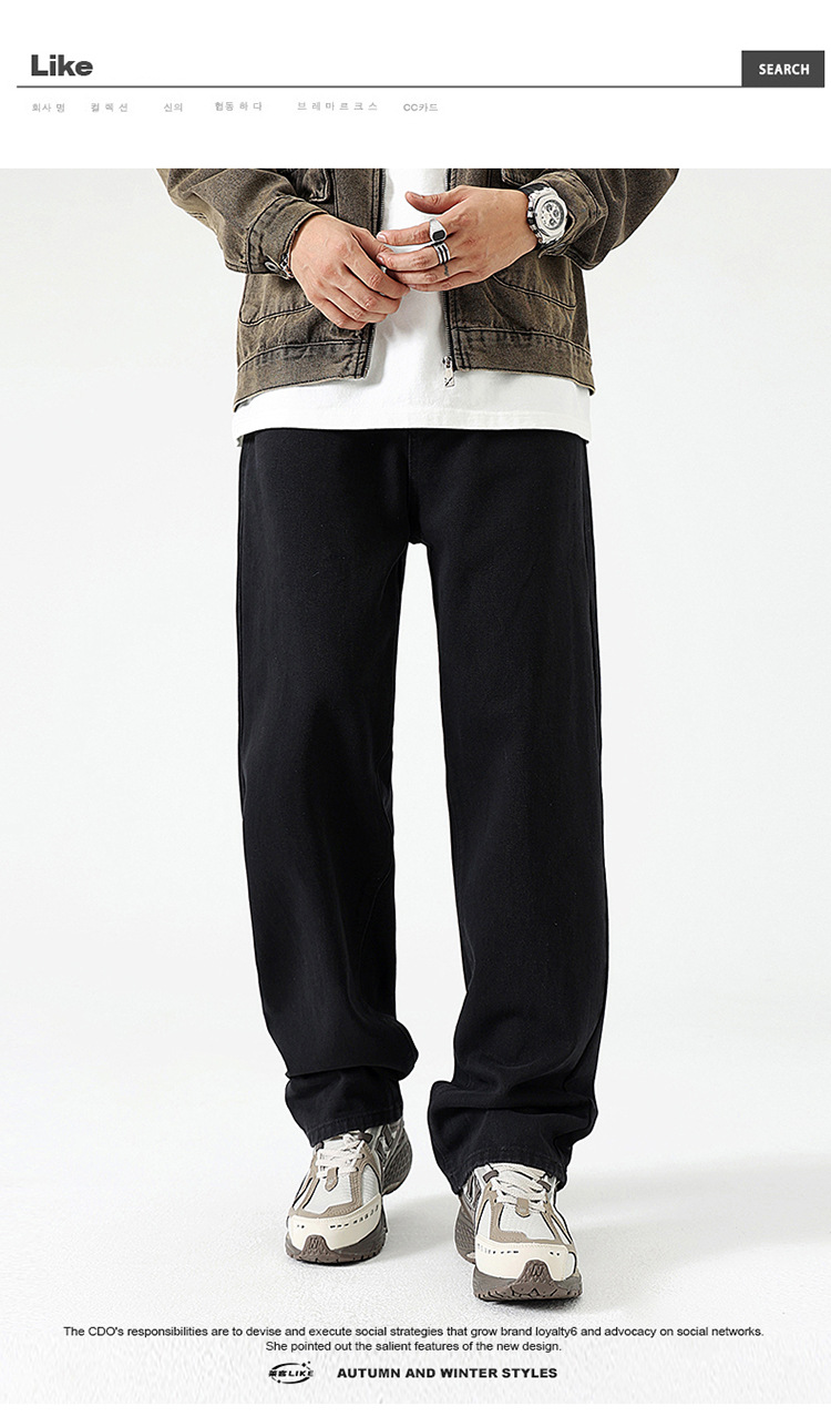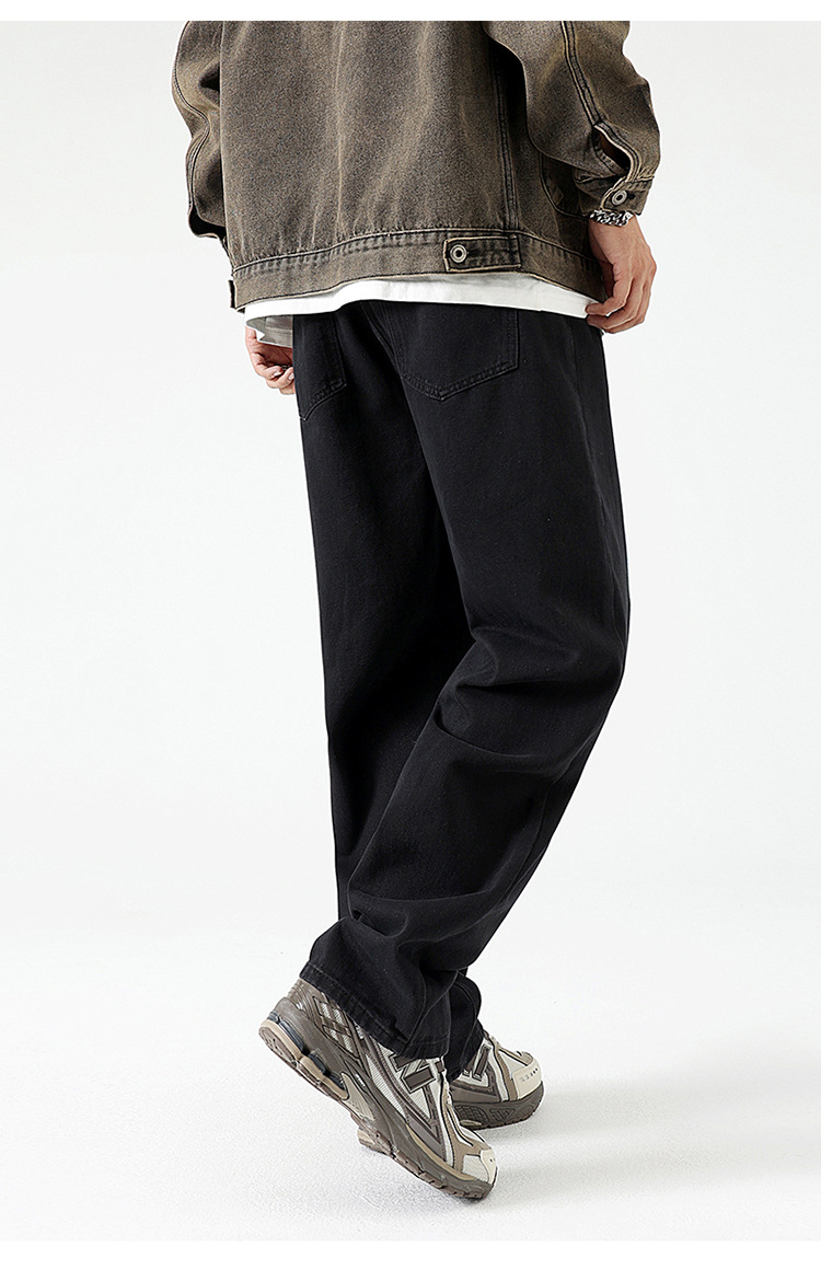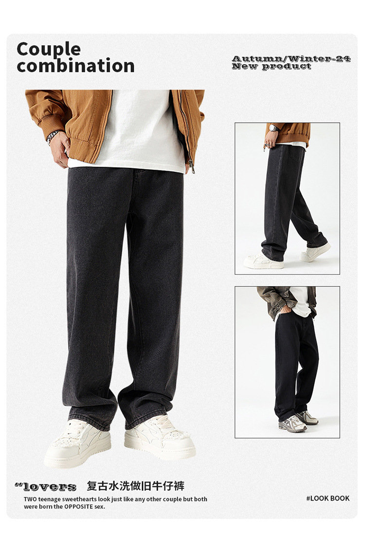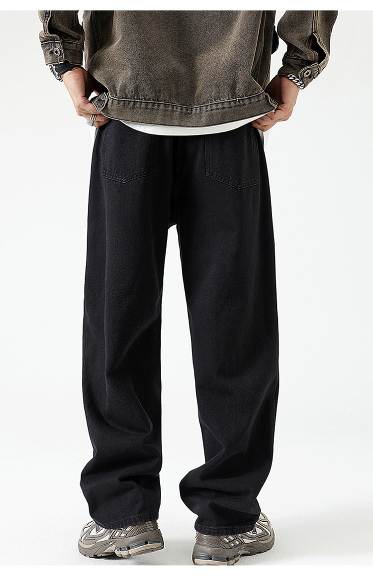 厂家直销男士宽松黑色牛仔裤,水洗直筒版型,春秋日常穿搭必备,青春潮流风格
