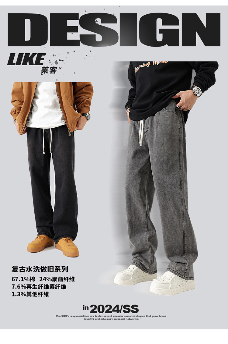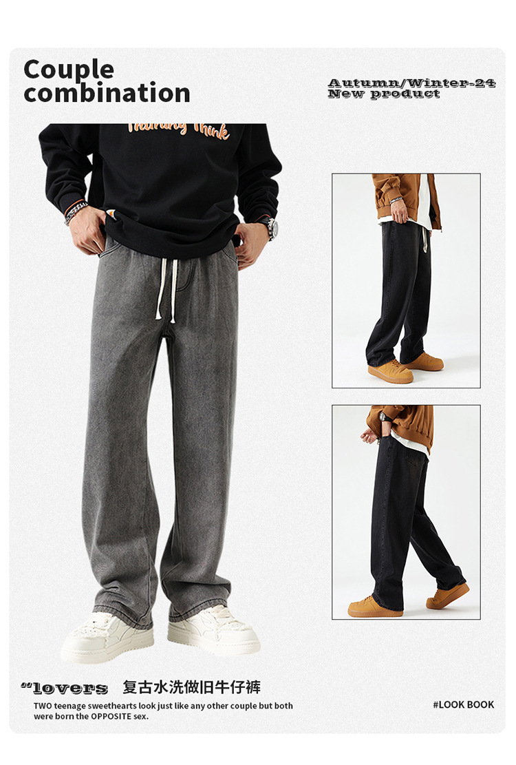 厂家直销男士复古水洗直筒牛仔裤,秋季休闲风格,适合青年潮流穿搭
