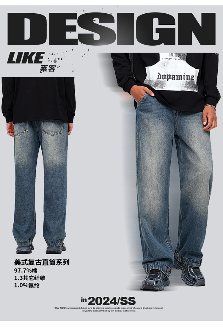 厂家直销男士水洗宽松牛仔裤,修身直筒设计,适合四季日常穿搭,青春潮流风格