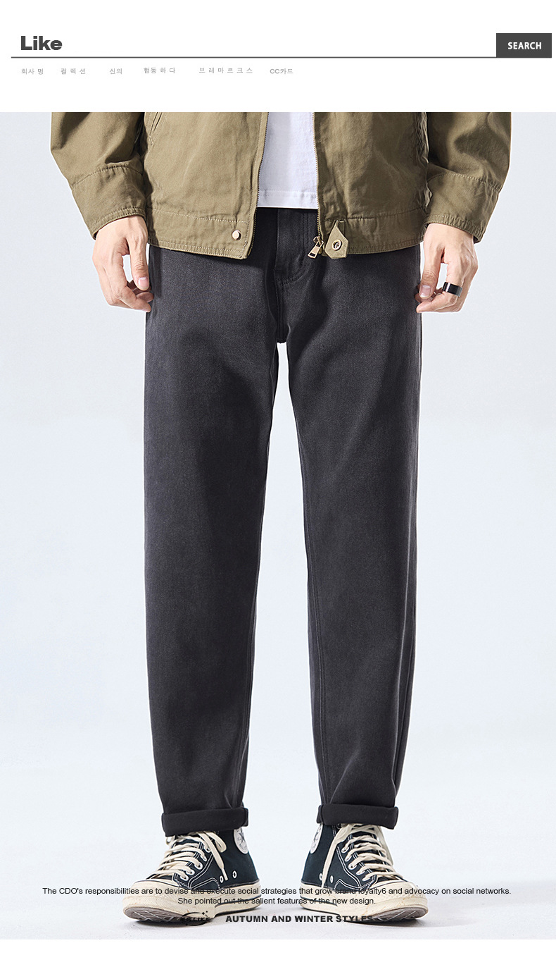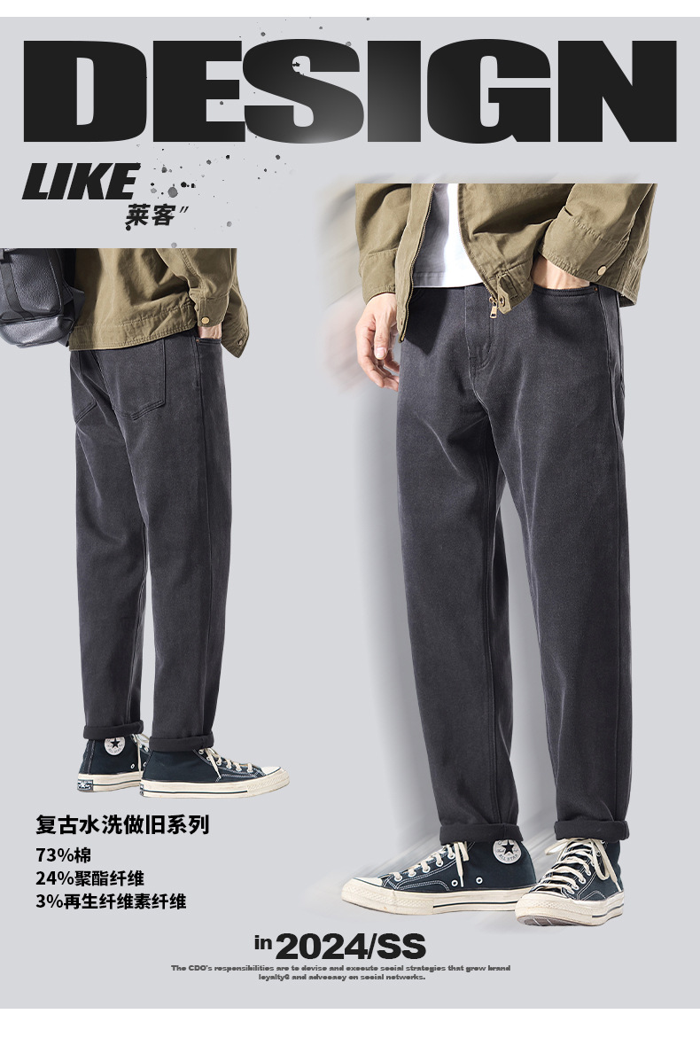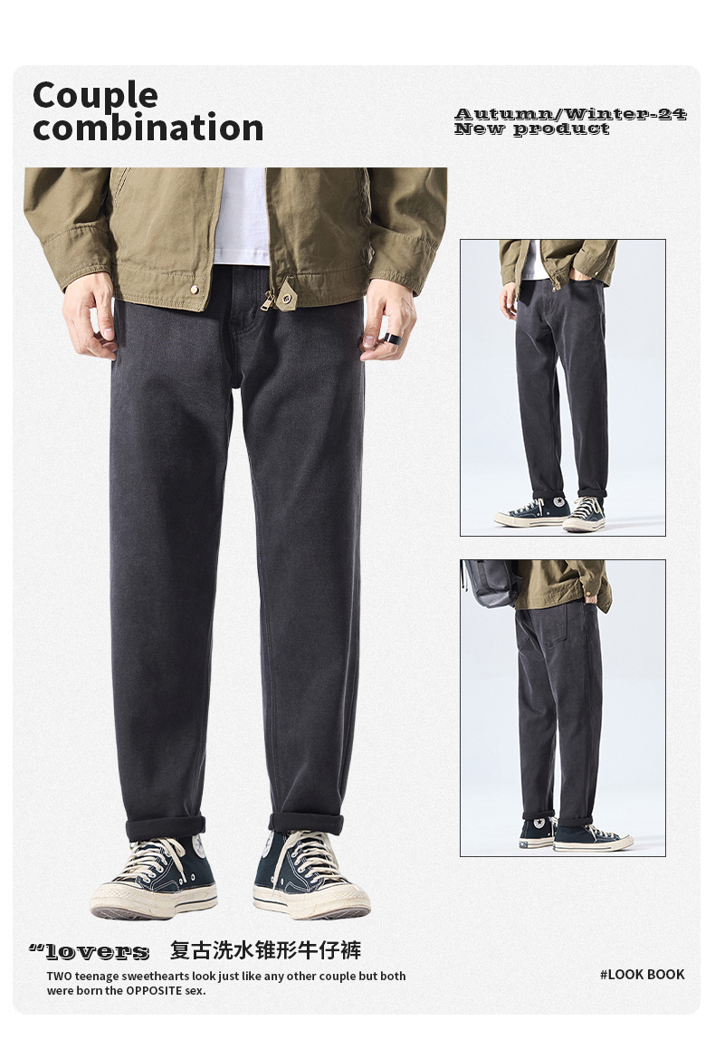 厂家直销男士锥形牛仔裤,显高修身设计,复古水洗风格,秋季休闲,多口袋长裤