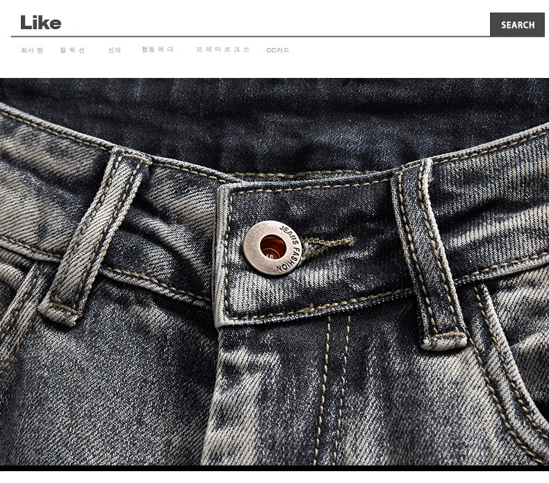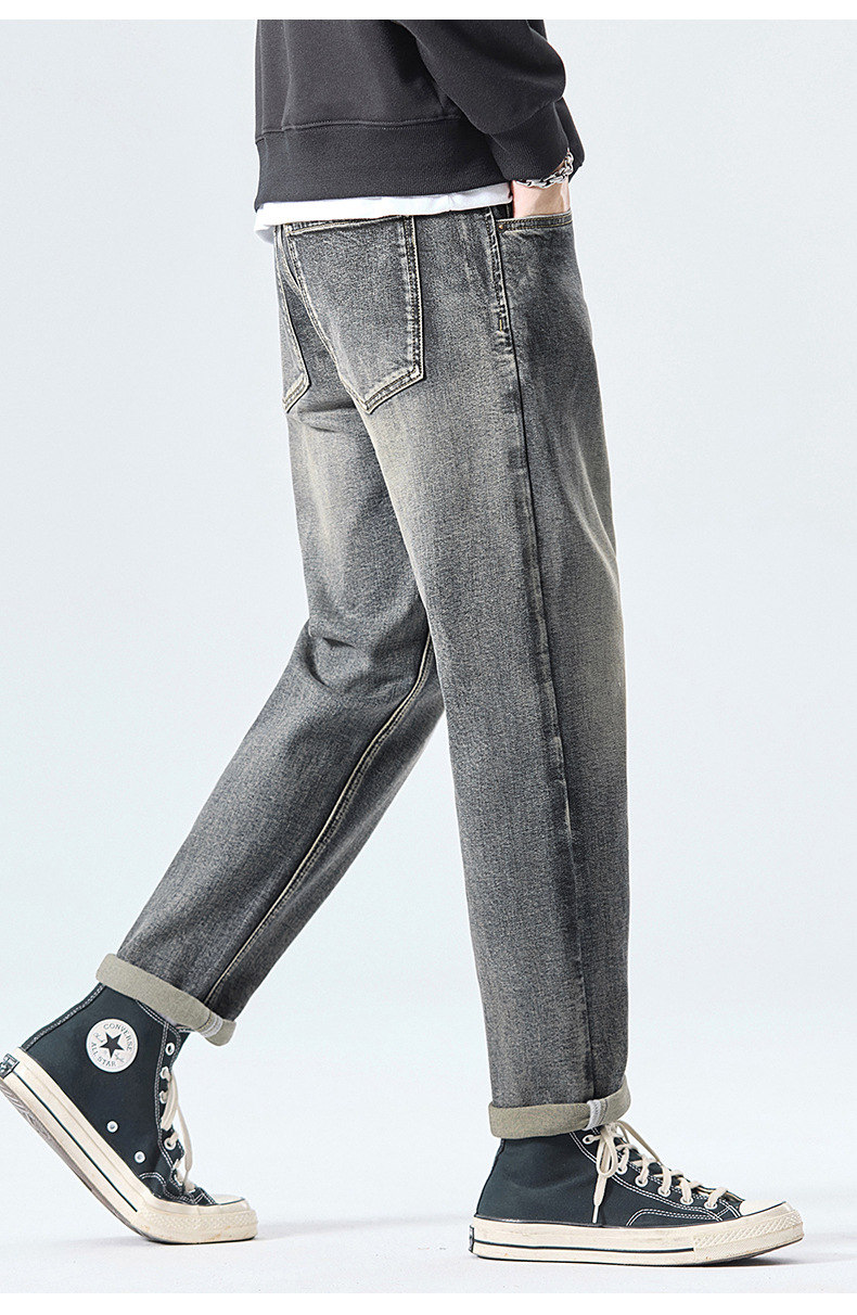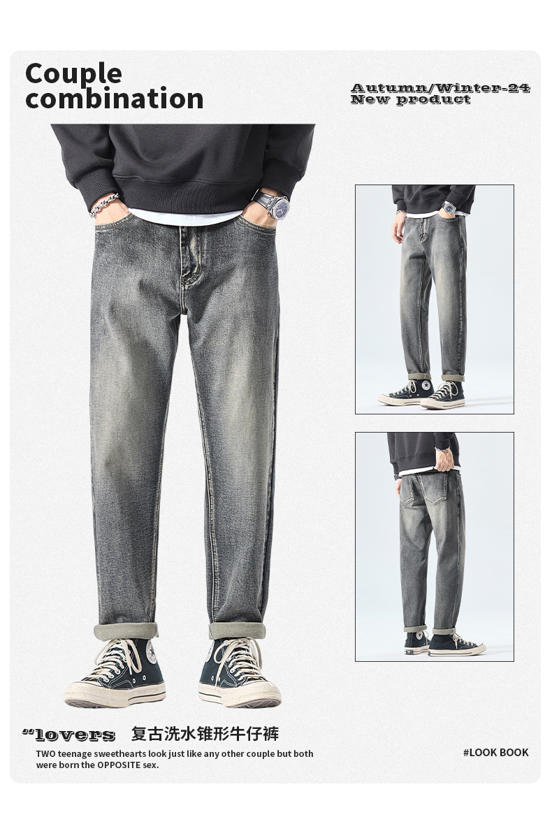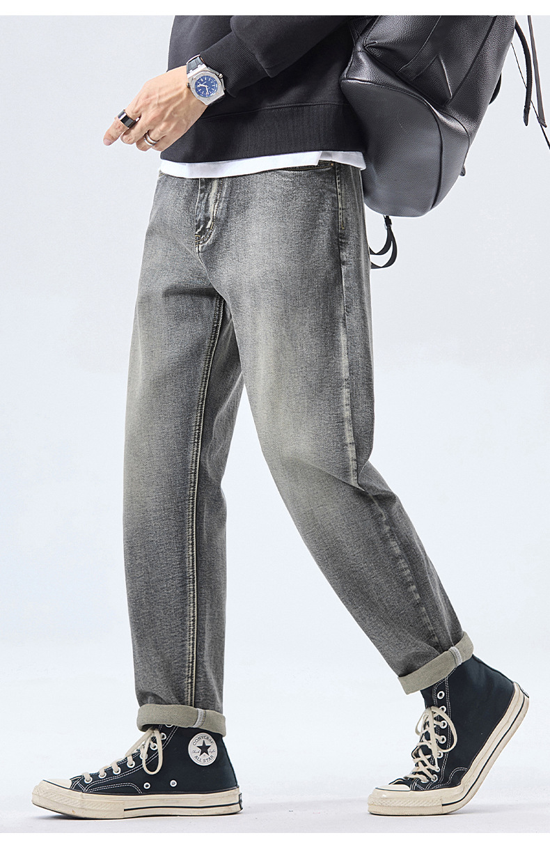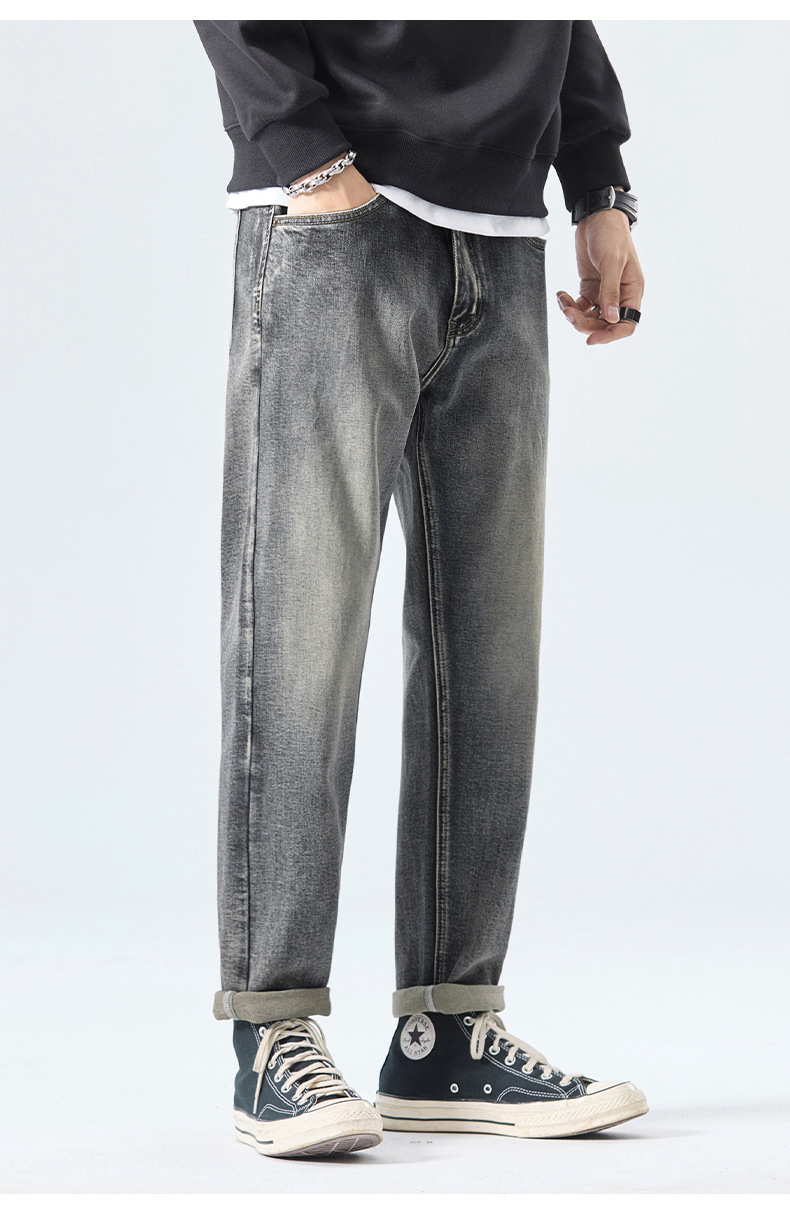 厂家直销男士修身水洗做旧铅笔牛仔裤,春秋休闲风,微弹九分裤设计