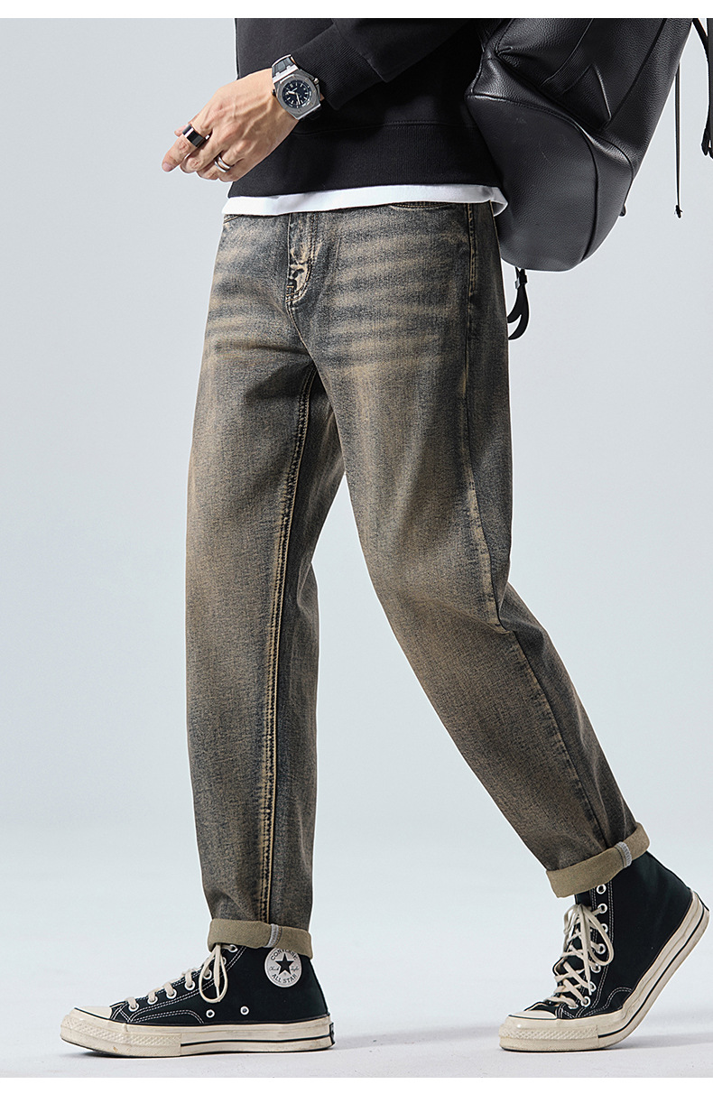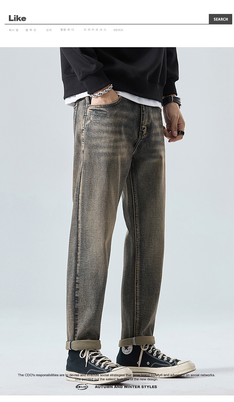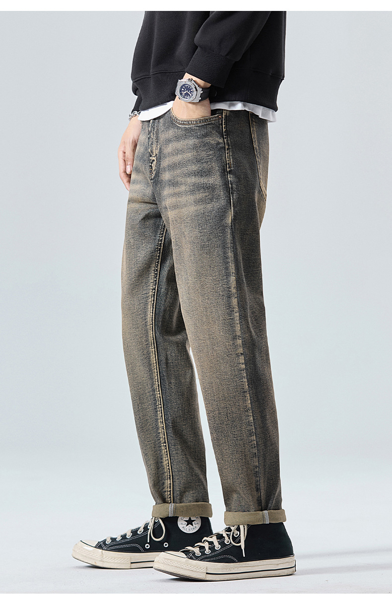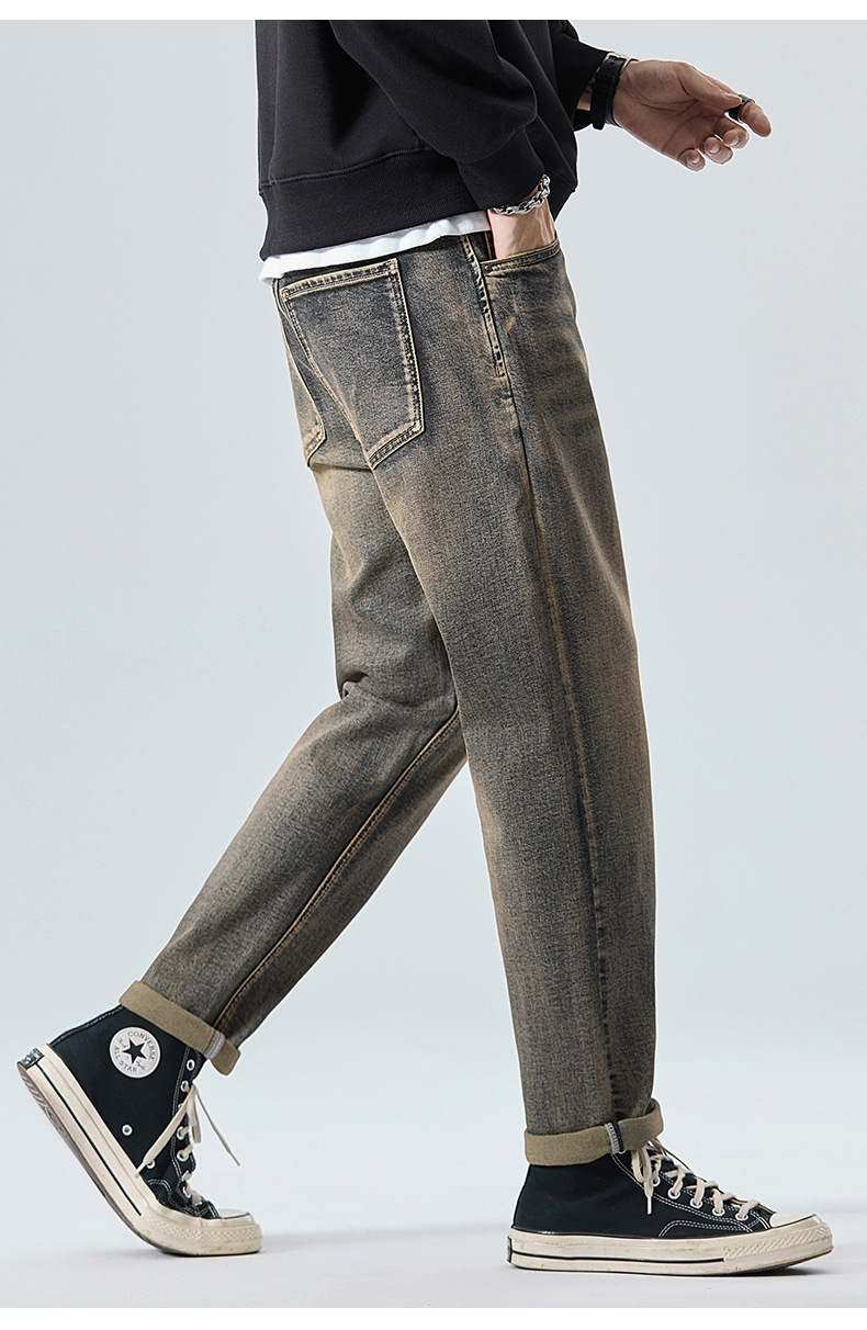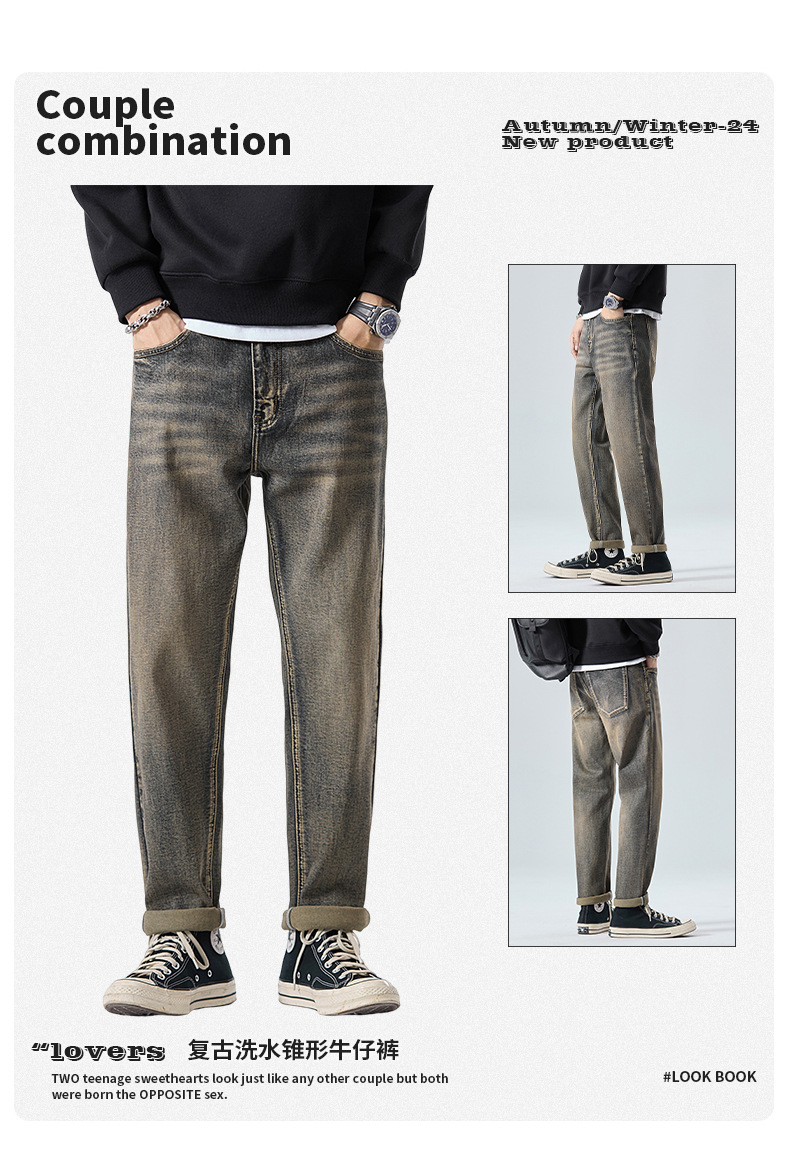 厂家直销男士修身水洗牛仔裤宽松锥型长裤,春秋休闲,多口袋设计