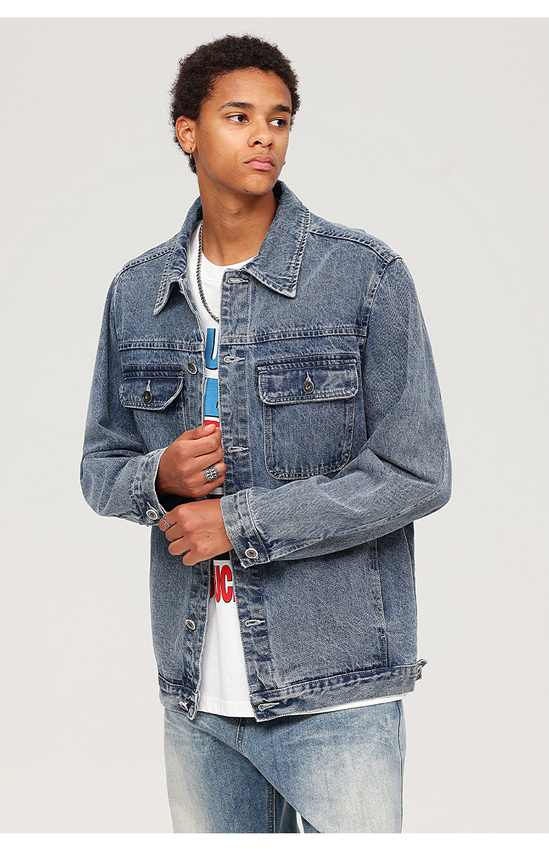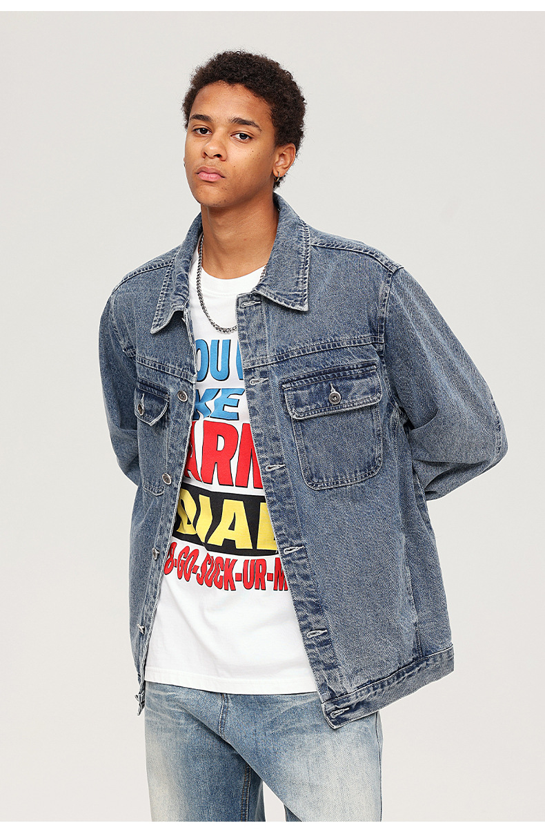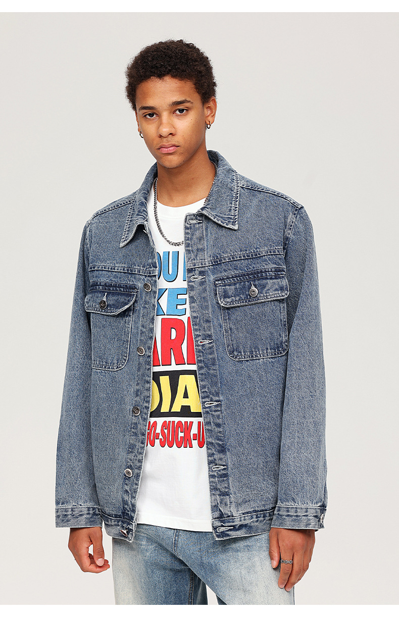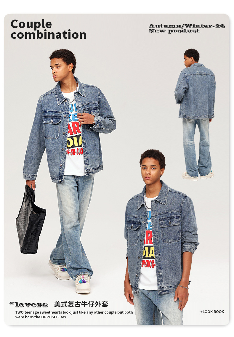 厂家直销男士宽松拼色牛仔外套,简约休闲风,适合春秋日常穿搭