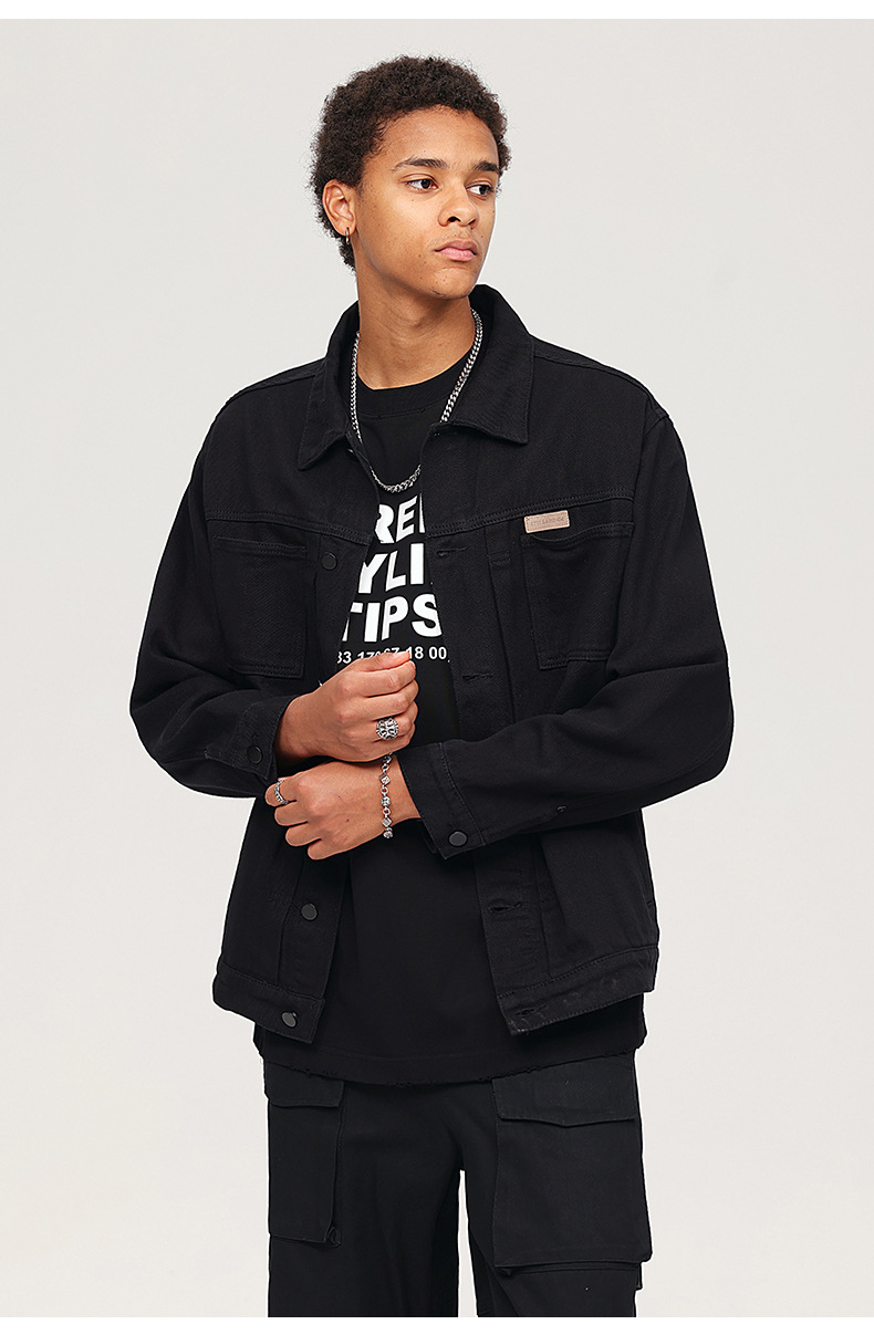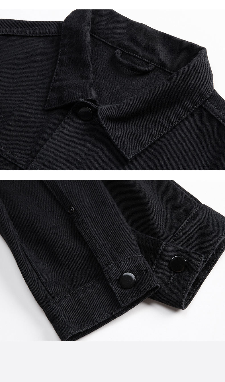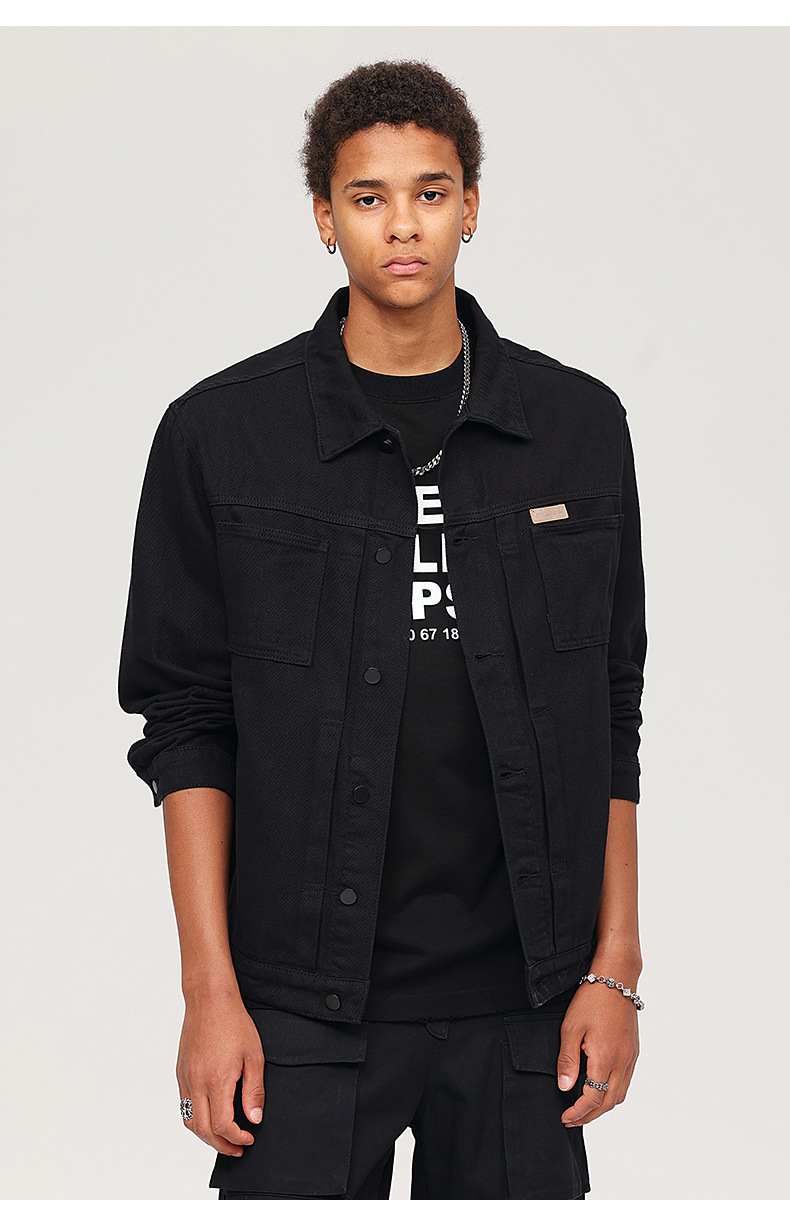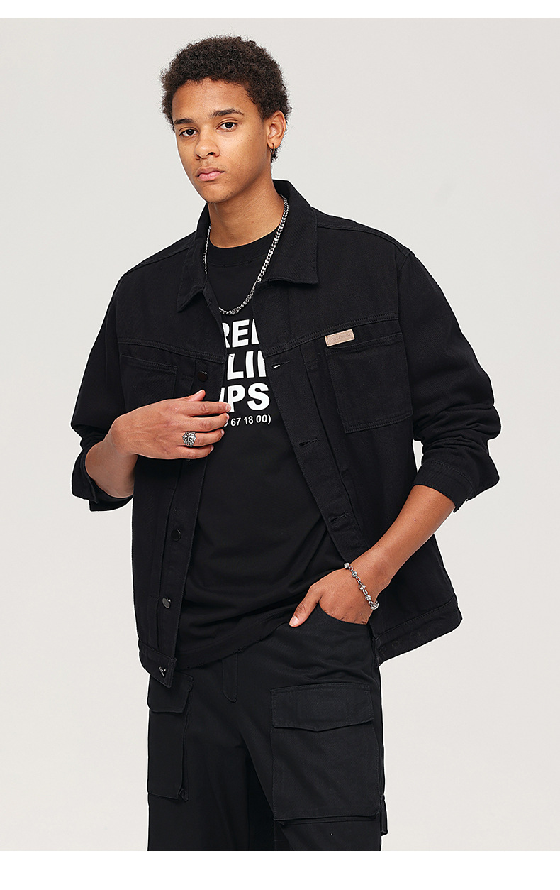 厂家直销男士复古黑色牛仔外套,宽松简约设计,适合春秋季日常穿着,耐磨面料,免烫处理