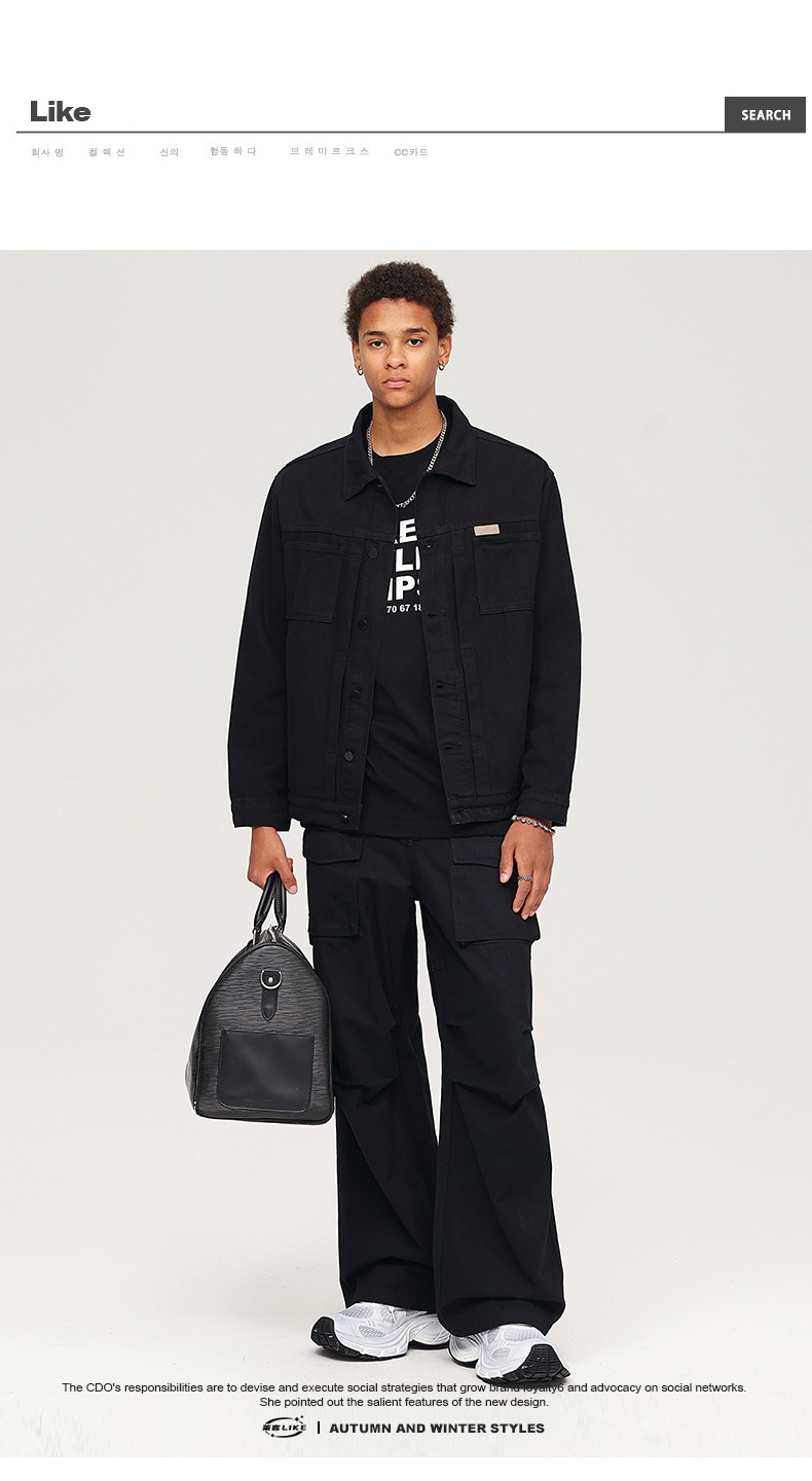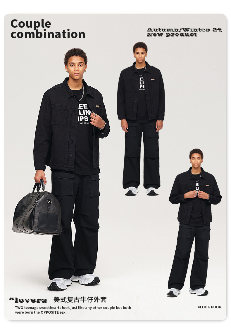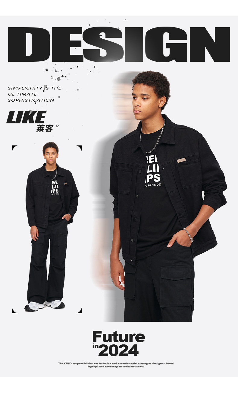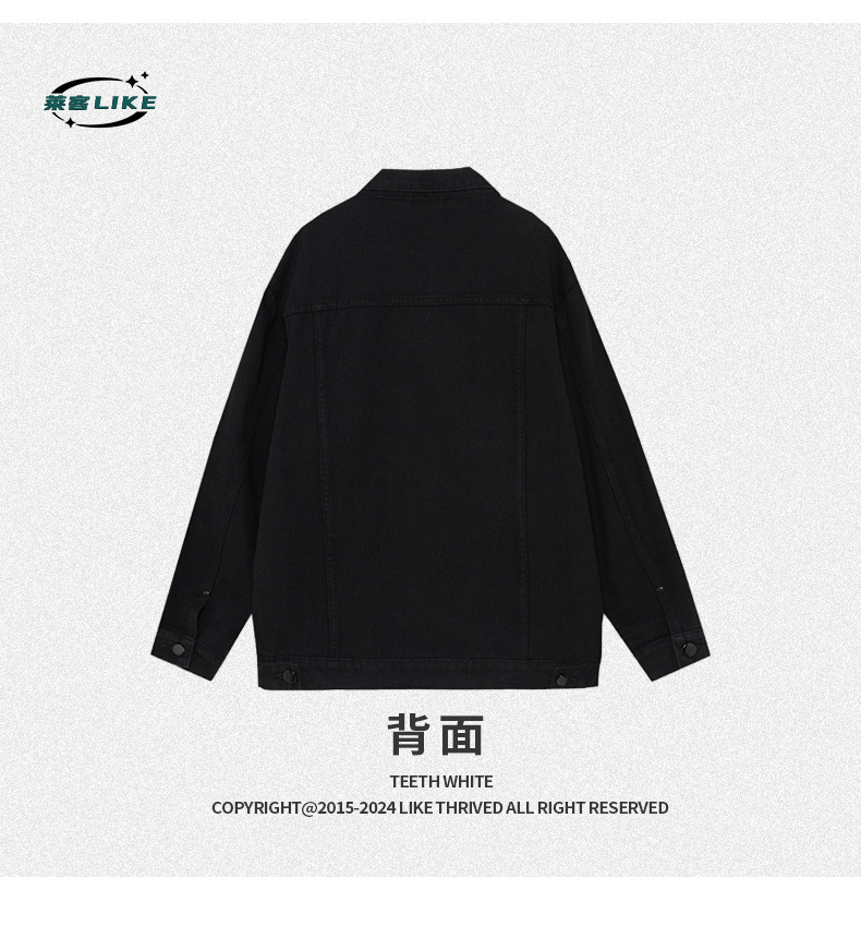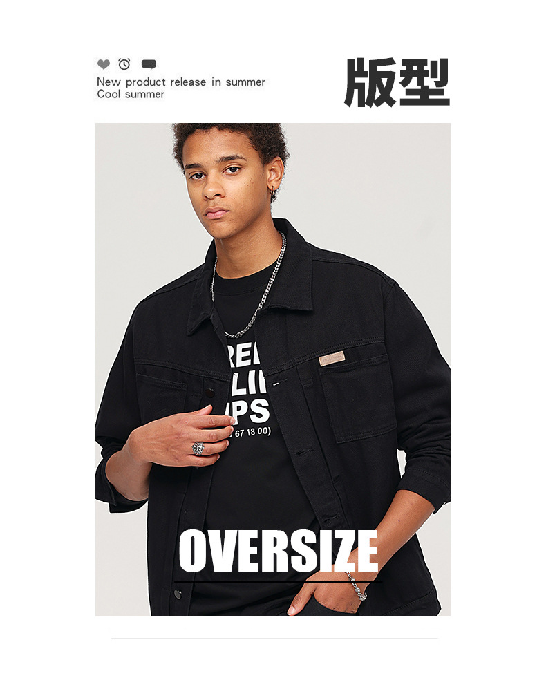 厂家直销男士复古黑色牛仔外套,宽松简约设计,适合春秋季日常穿着,耐磨面料,免烫处理