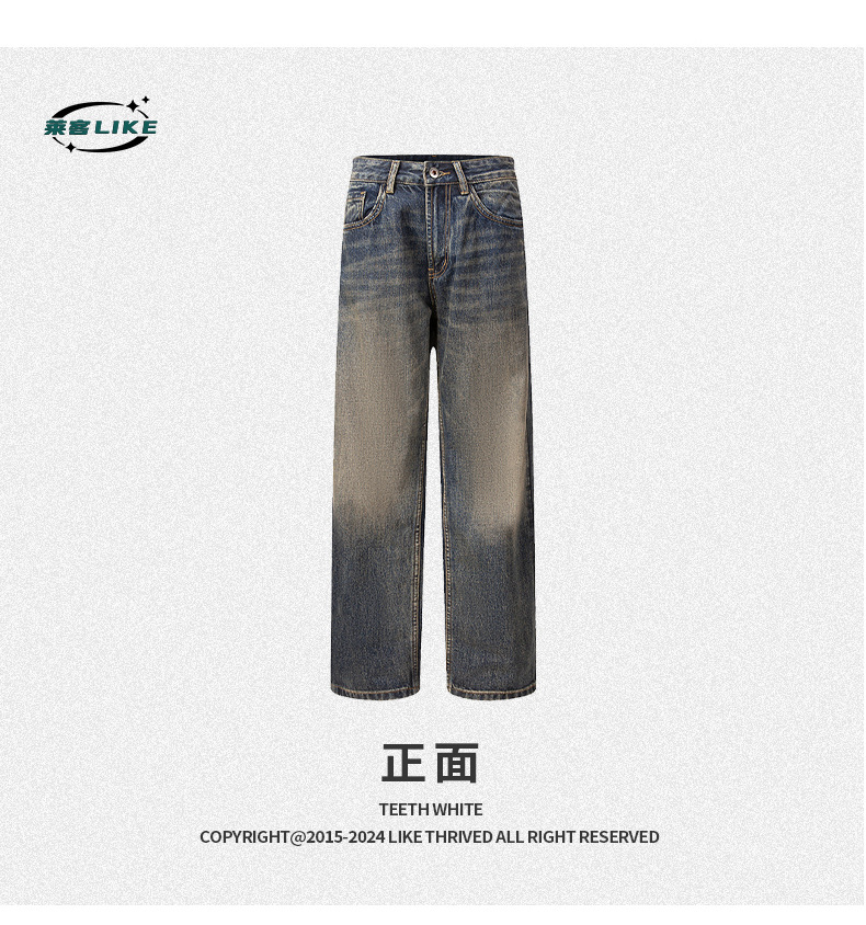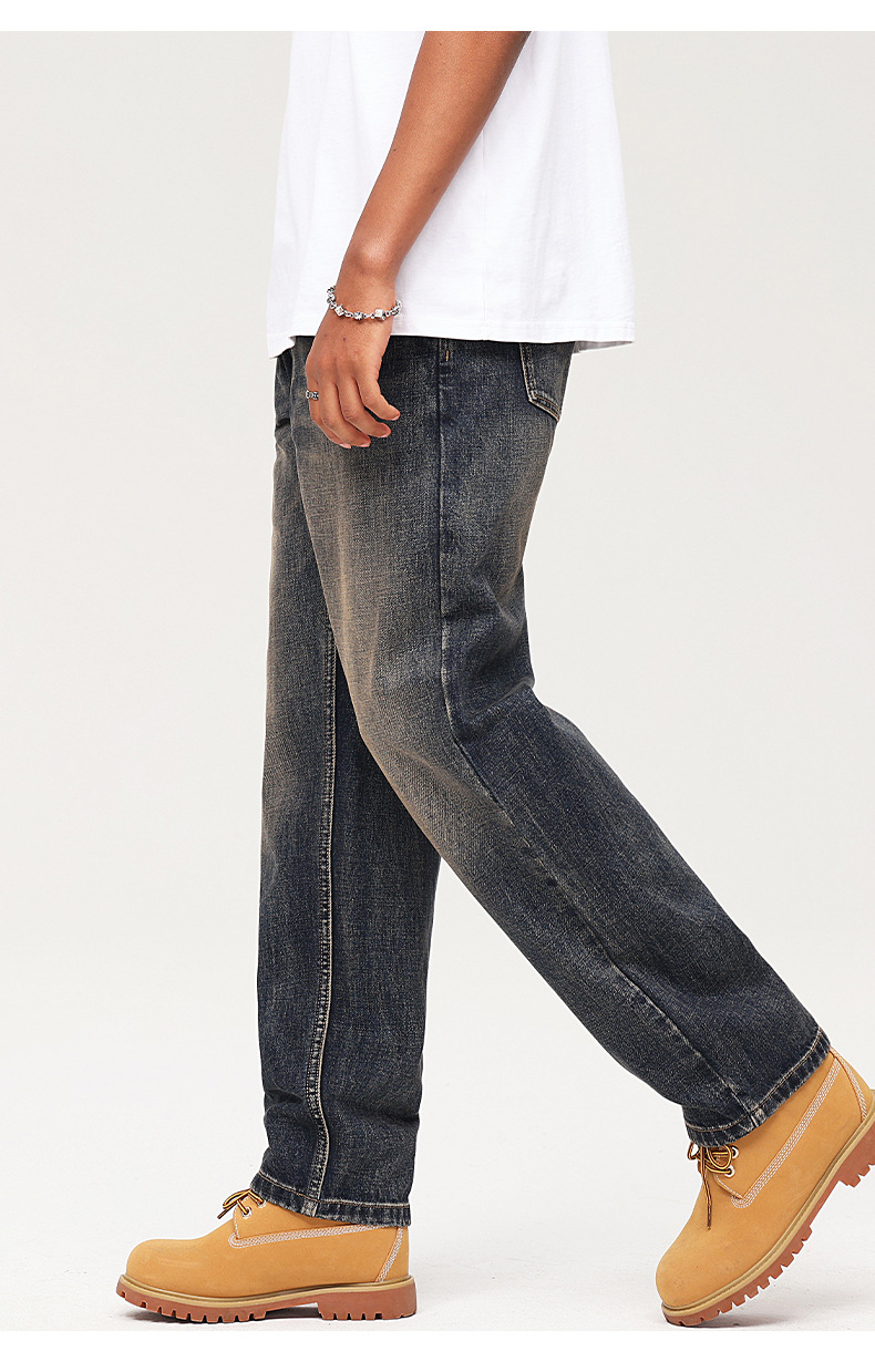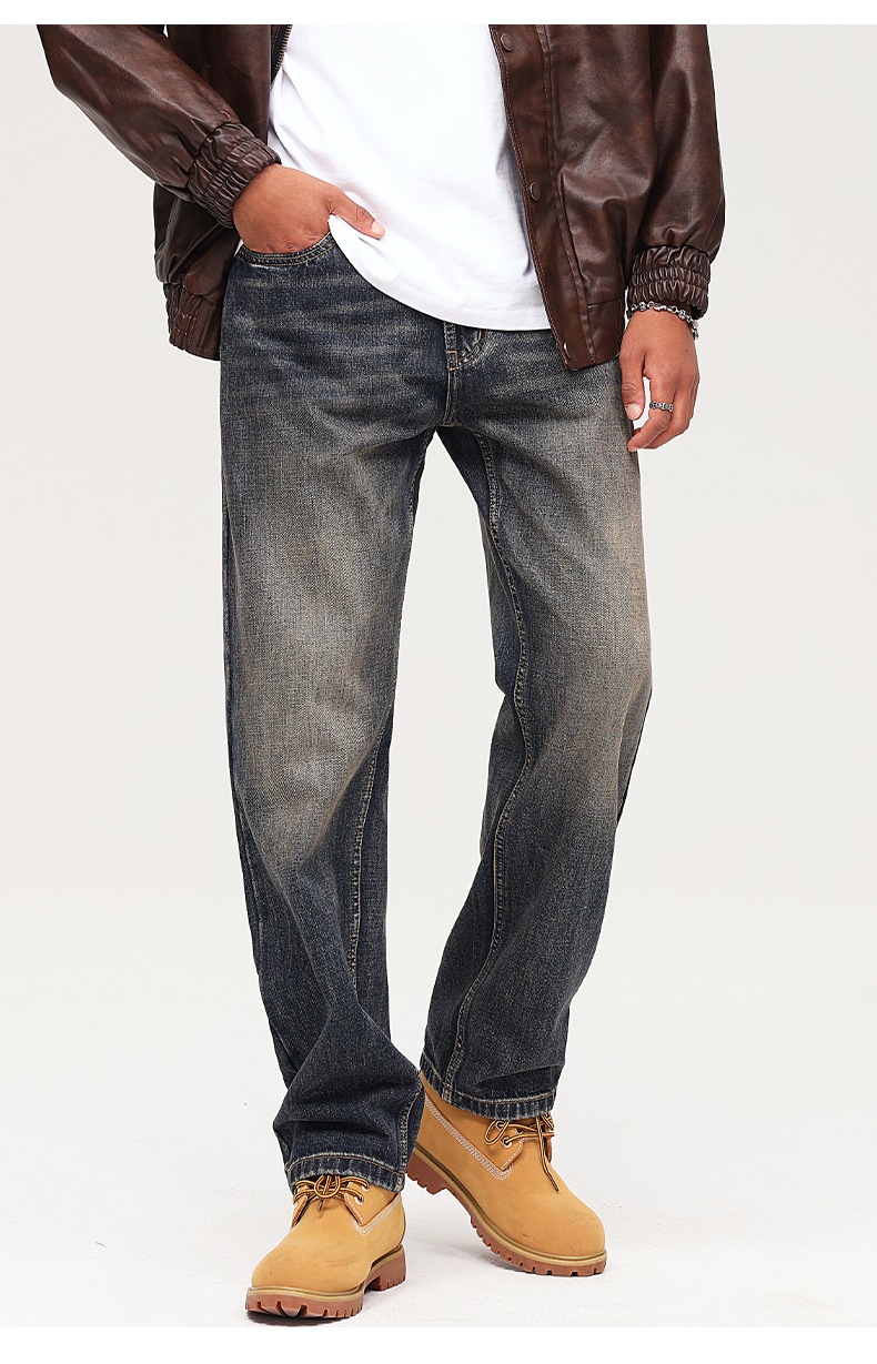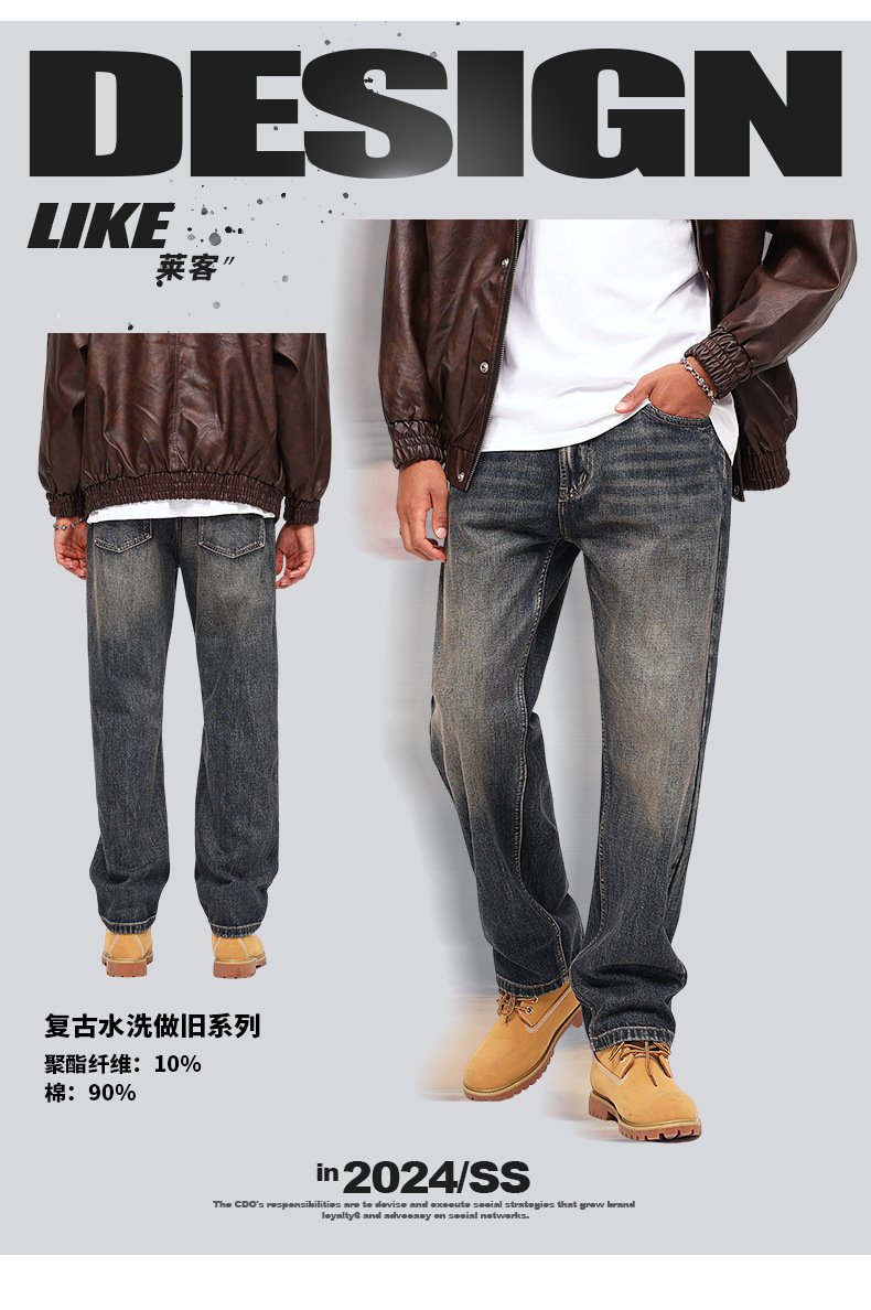 厂家直销男士宽松水洗做旧牛仔裤,复古风格直筒版型,秋季日常休闲穿搭必备