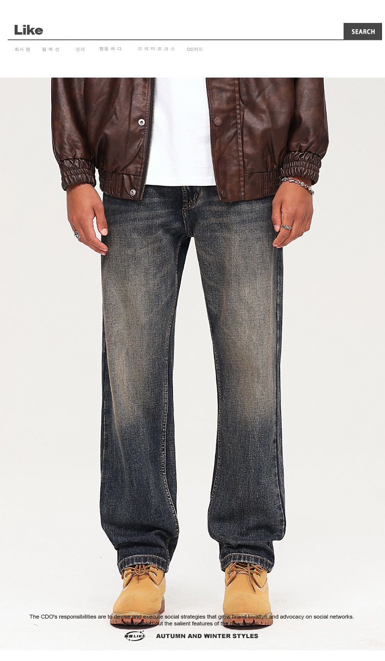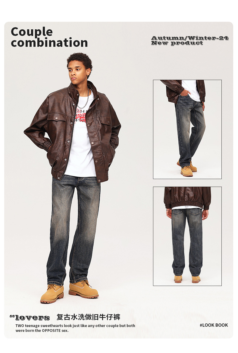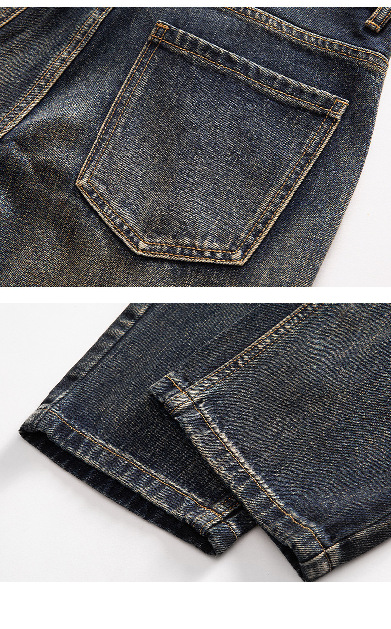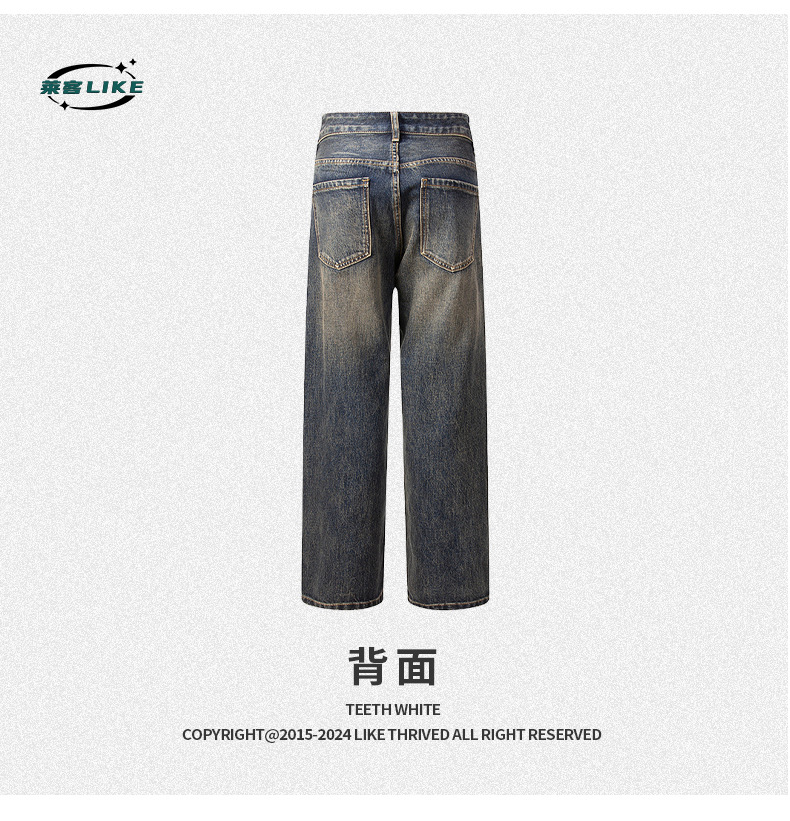 厂家直销男士宽松水洗做旧牛仔裤,复古风格直筒版型,秋季日常休闲穿搭必备