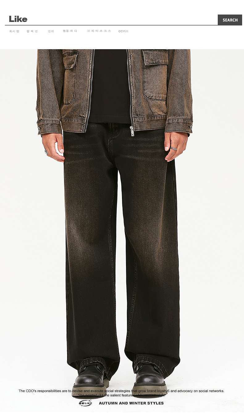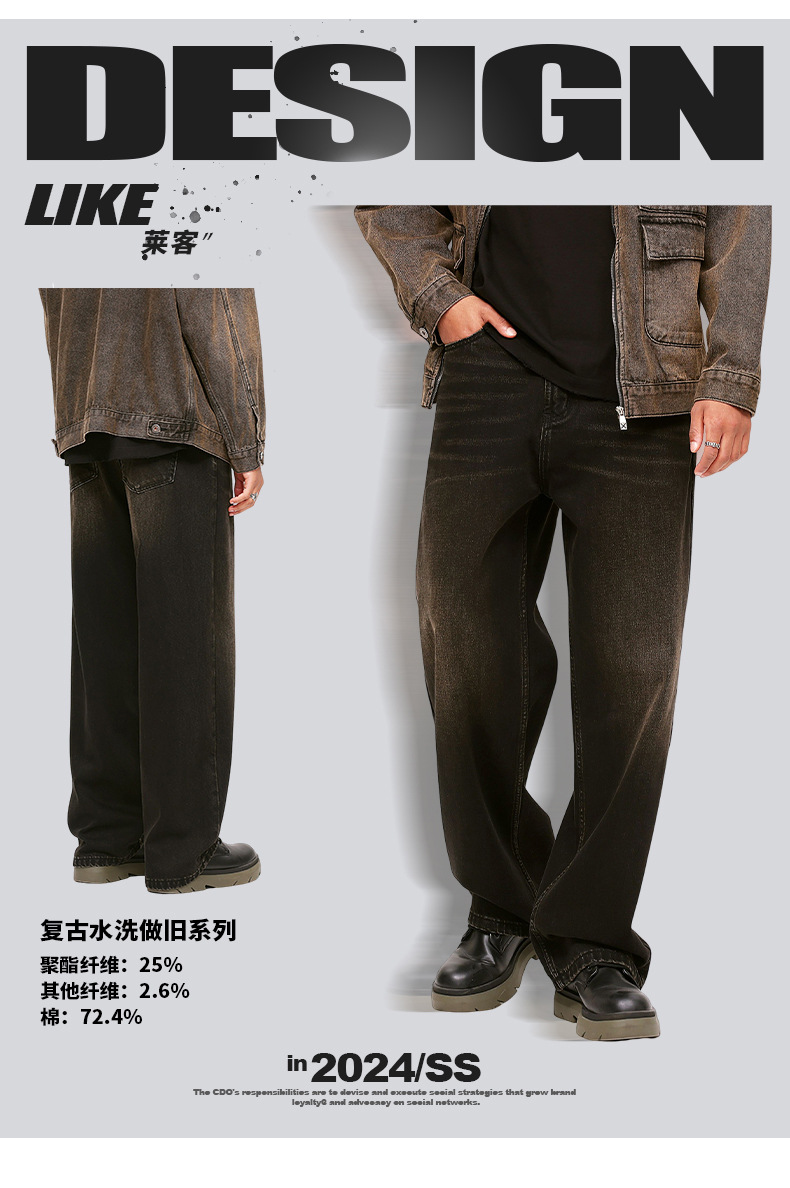 厂家直销男士复古水洗牛仔裤,宽松直筒设计,四季适用,日常潮流款式