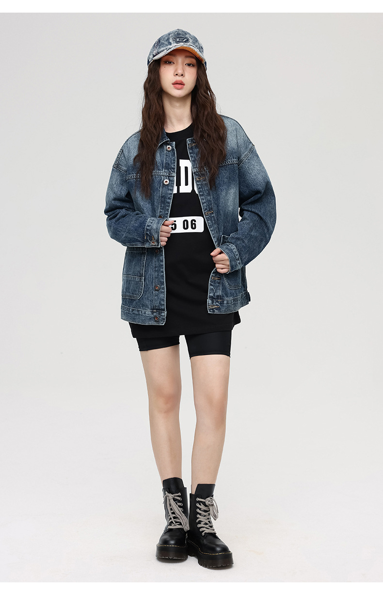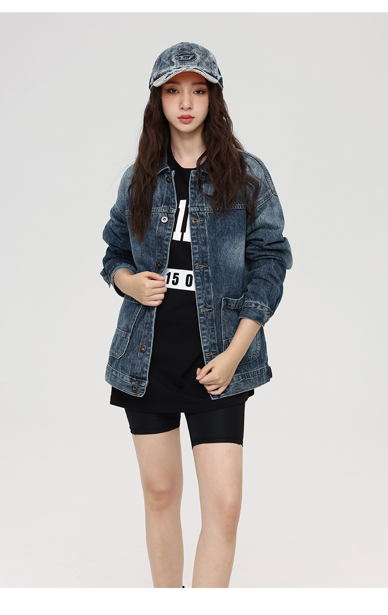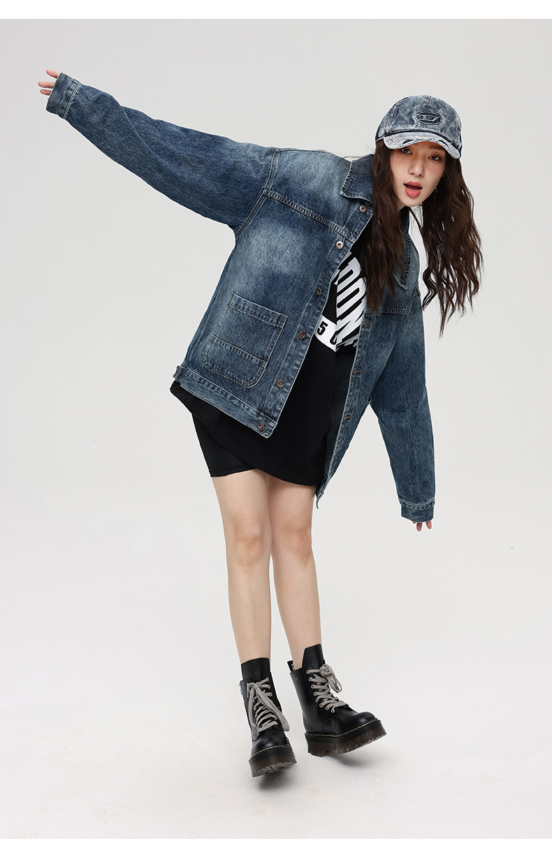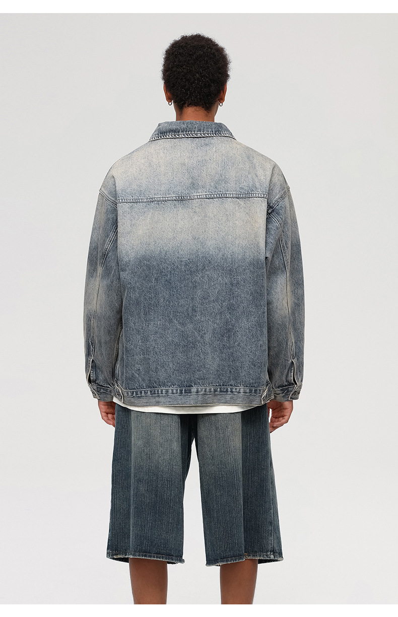 厂家直销青年宽松水洗做旧牛仔外套,春秋休闲风格,多口袋设计