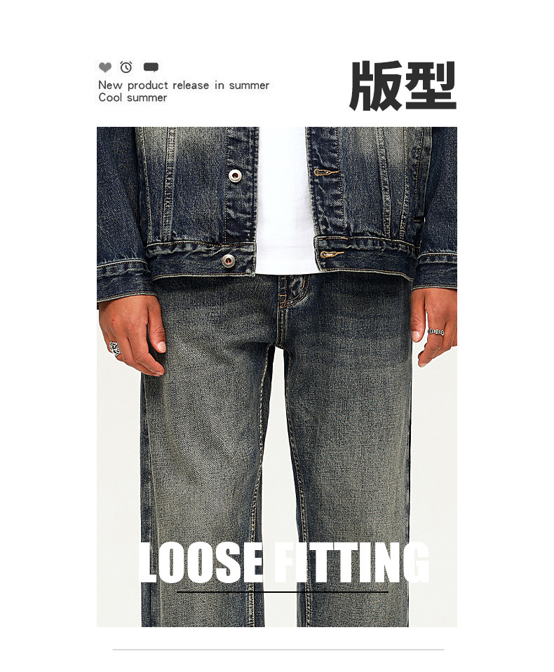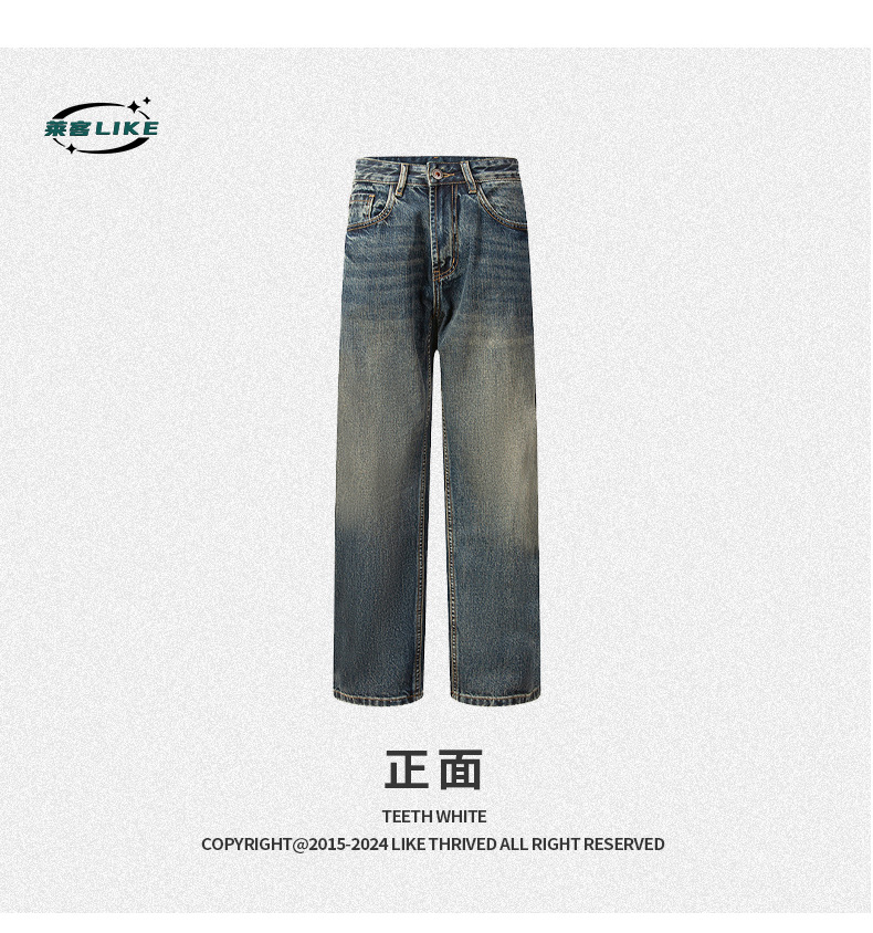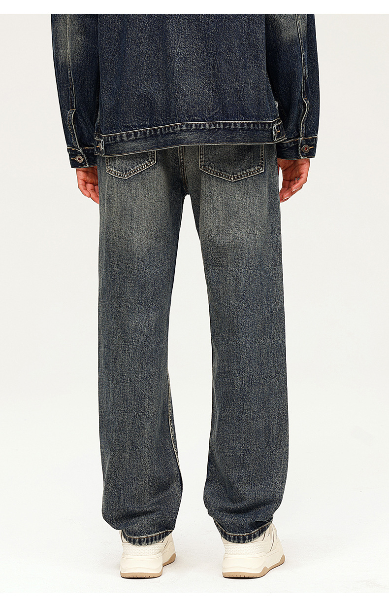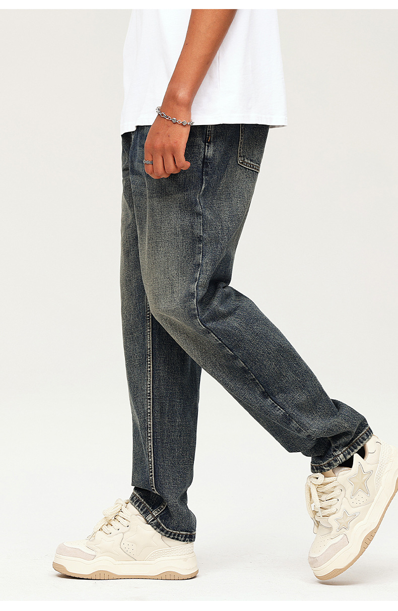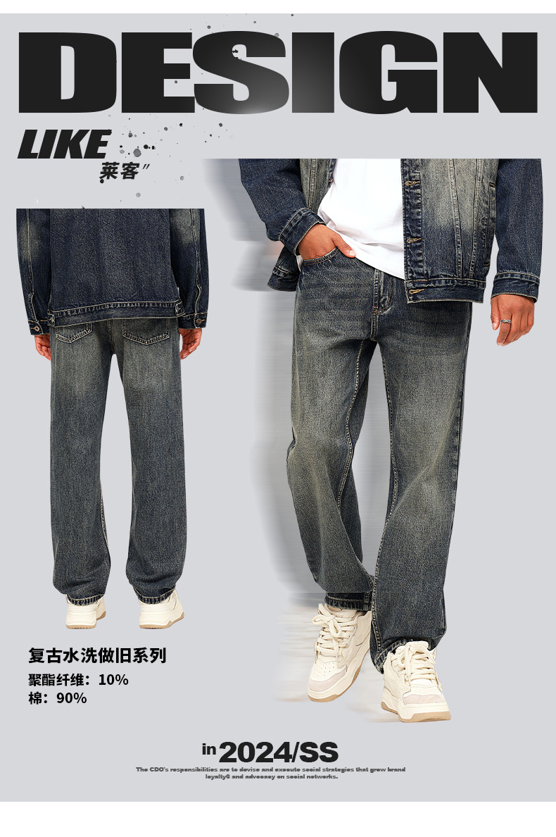 厂家直销男士复古水洗牛仔裤,宽松直筒款,四季休闲,适合青年日常穿搭