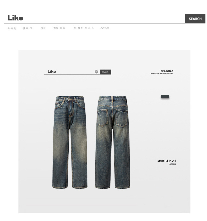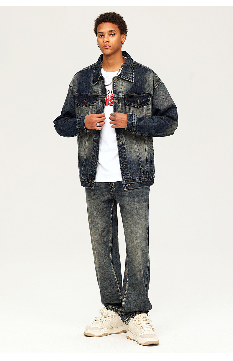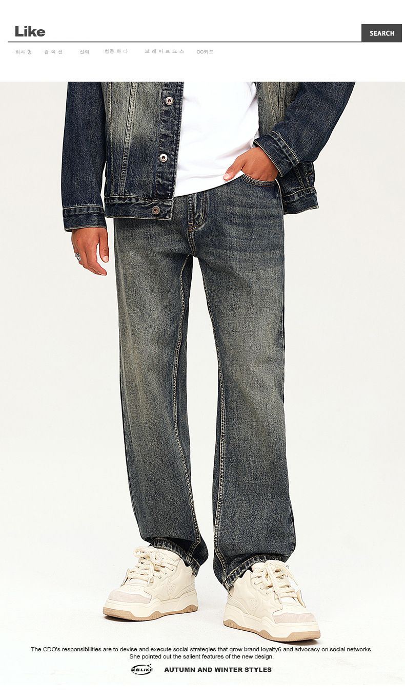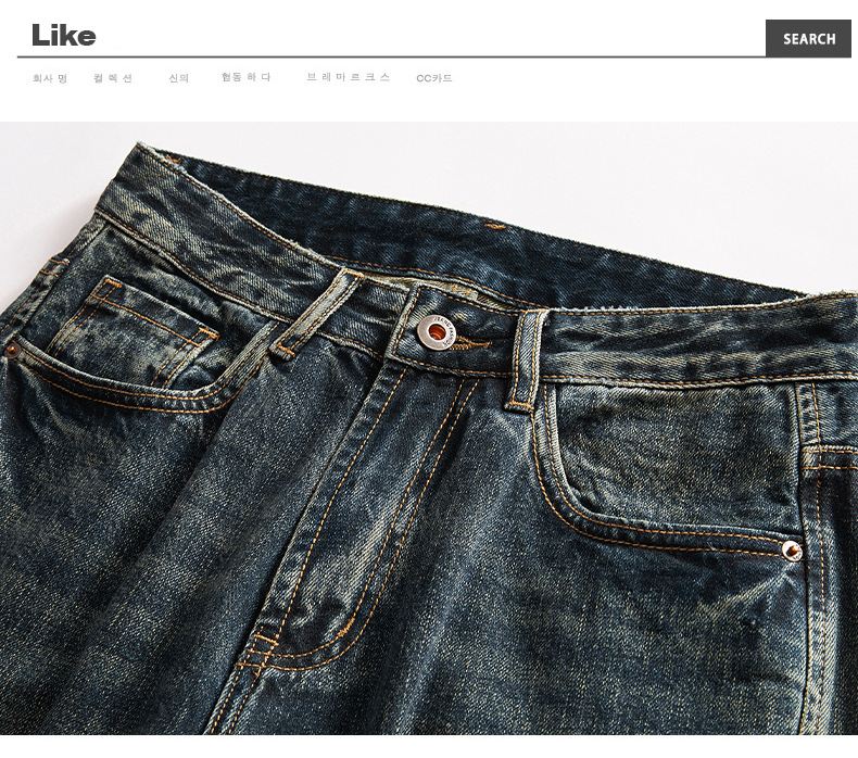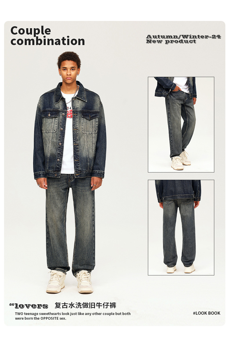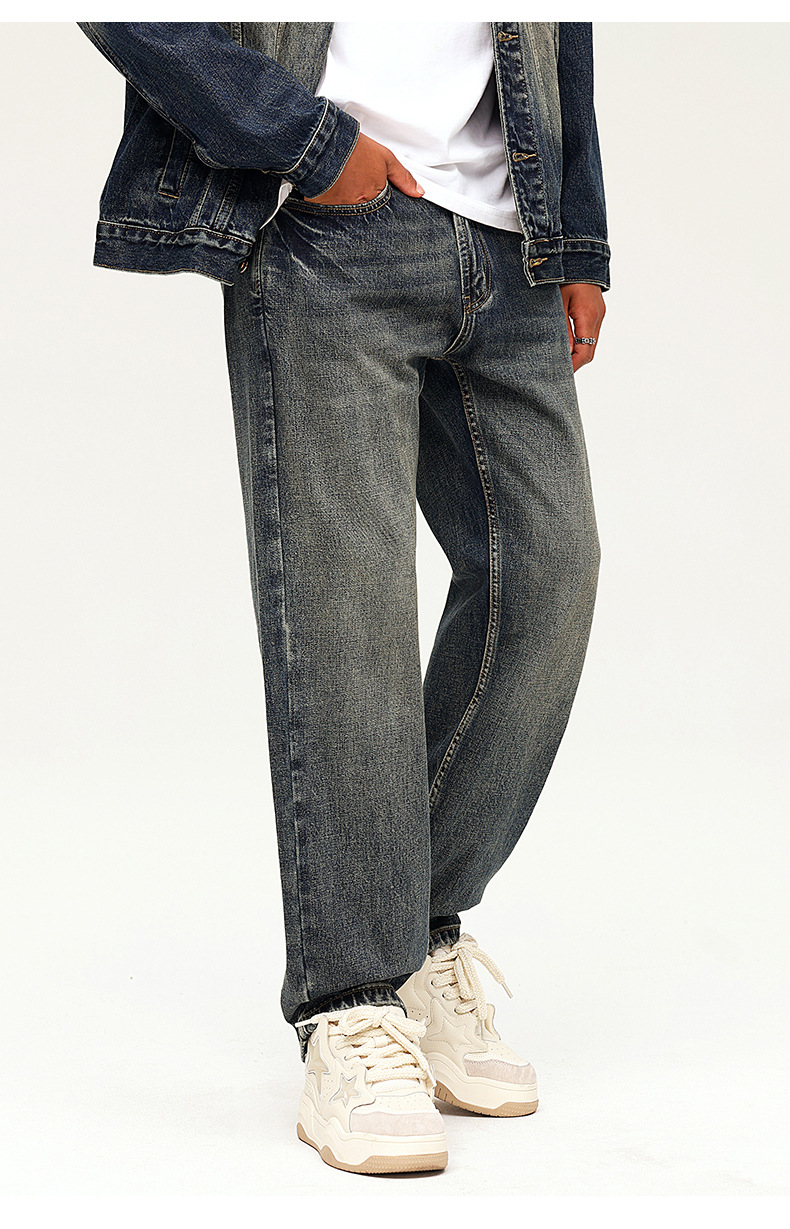 厂家直销男士复古水洗牛仔裤,宽松直筒款,四季休闲,适合青年日常穿搭