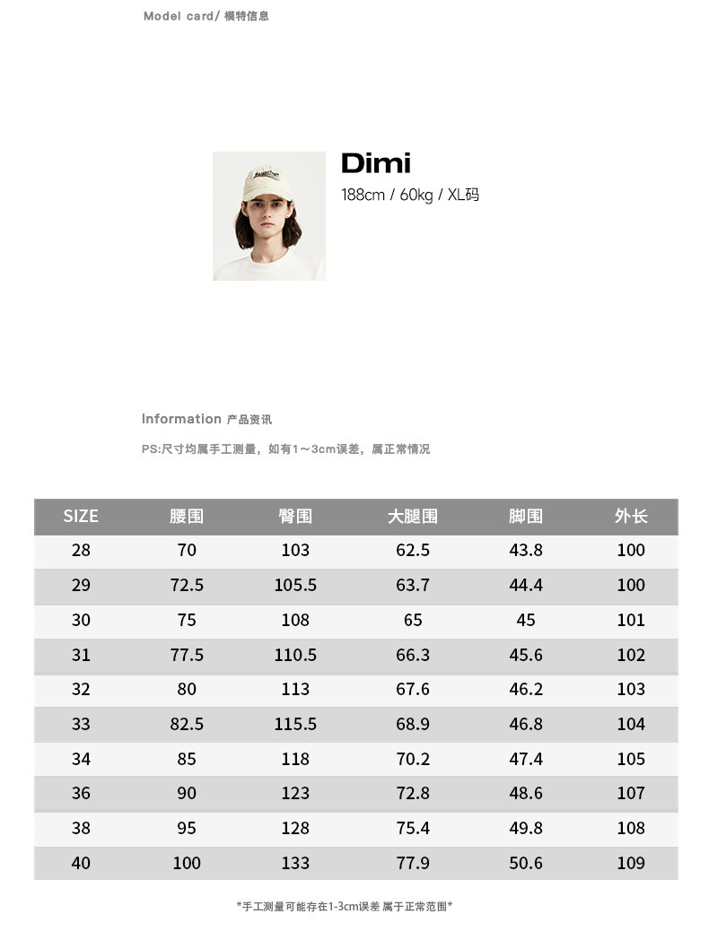 | 尺码 | 28(90-105斤),29(105-120斤),30(120-135斤),31(135-150斤),32(150-165斤),33(165-180斤),34(180-195斤),36(195-210斤),38(210-225斤),40(225-240斤) |