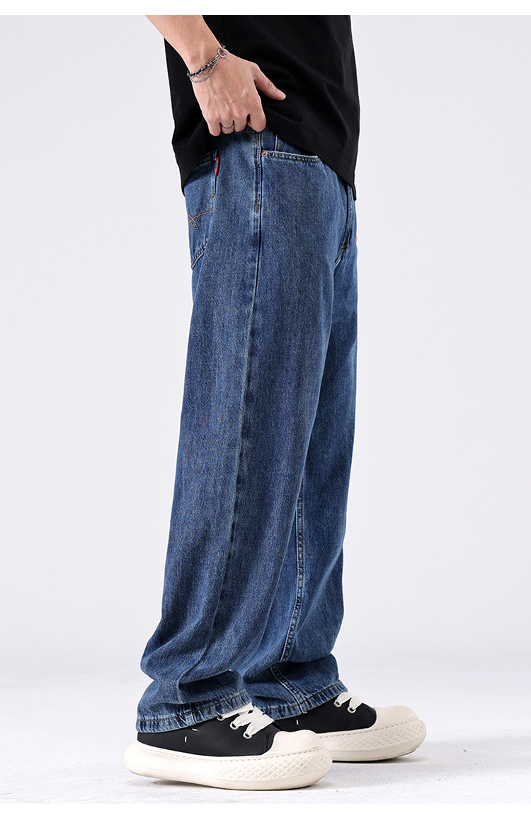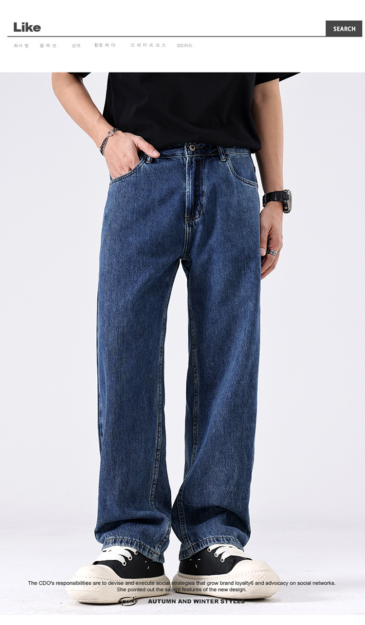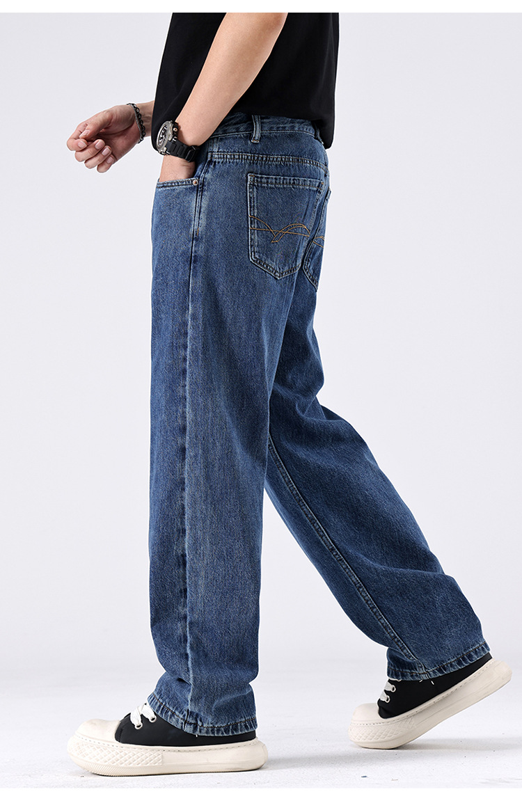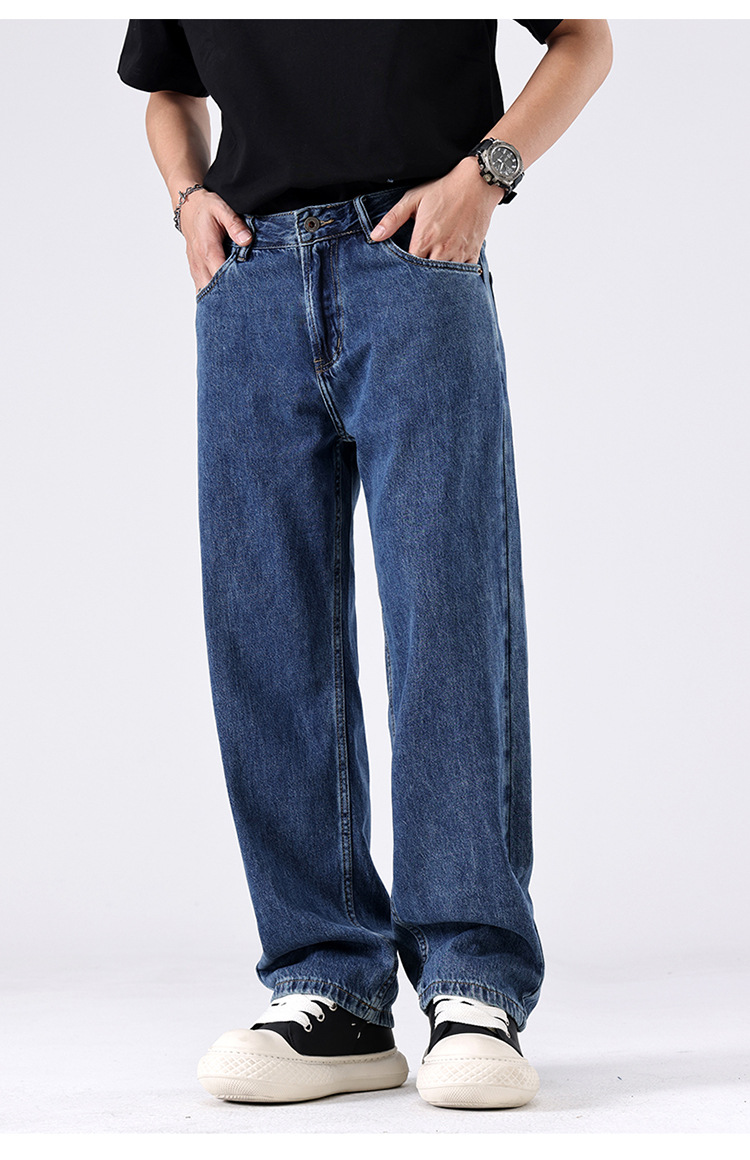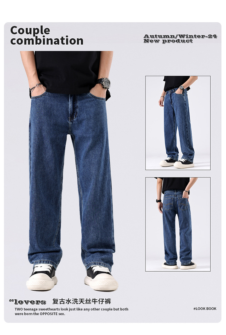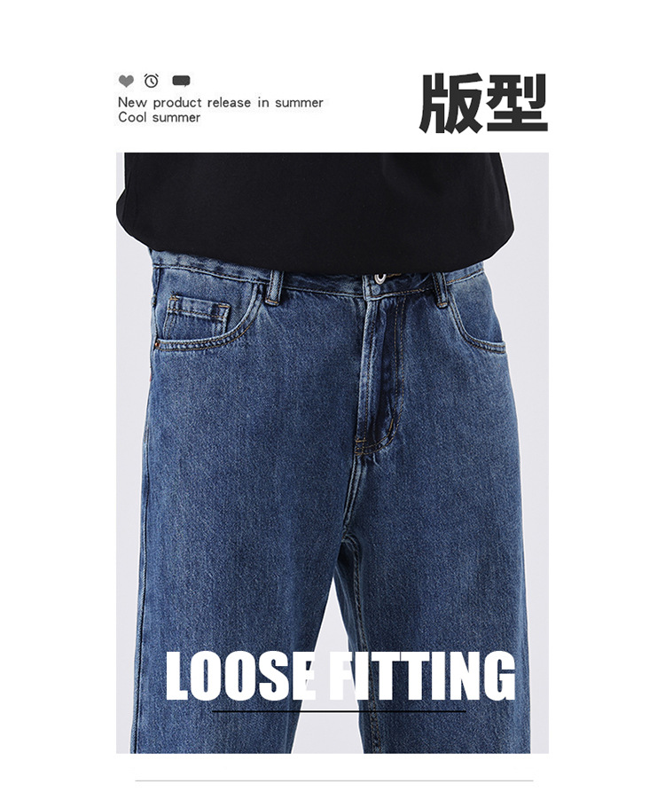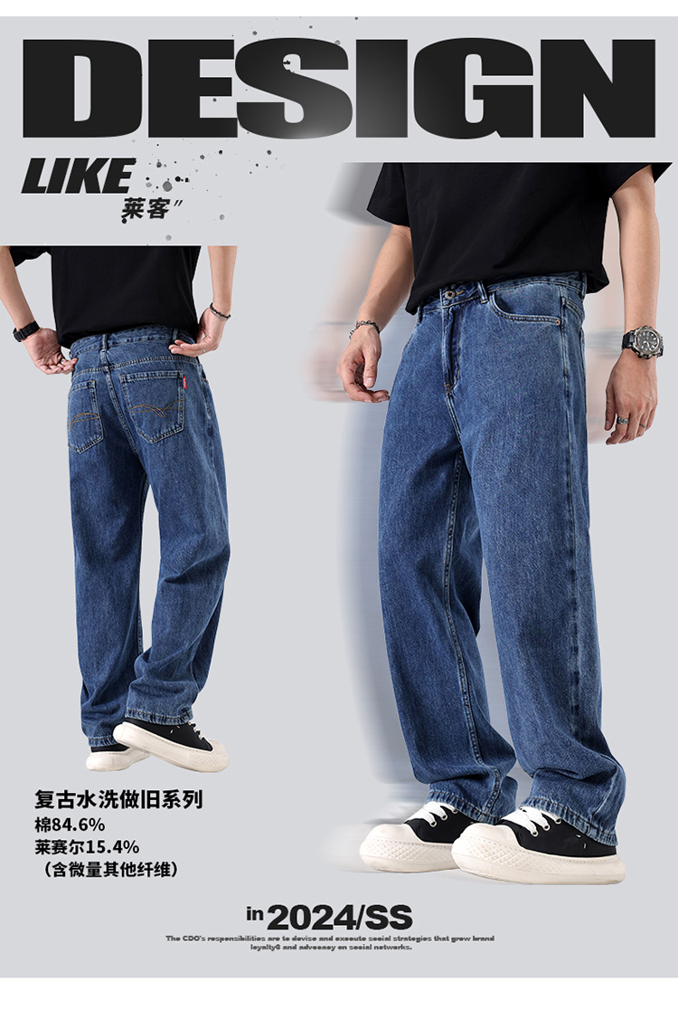 厂家直销男士牛仔裤,修身透气水洗直筒款,夏季休闲,日系复古风格
