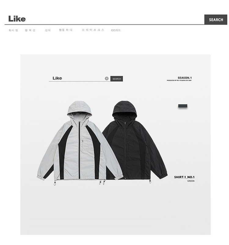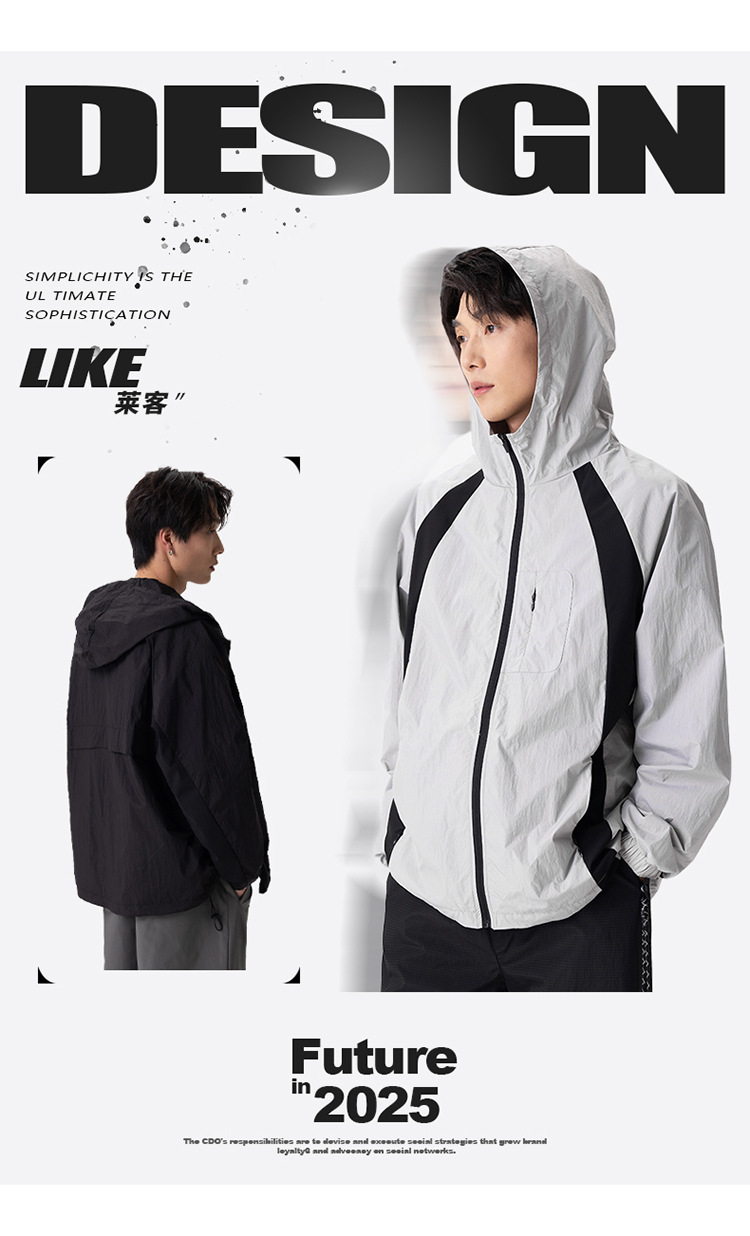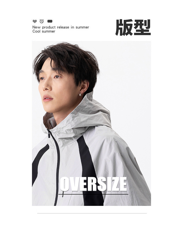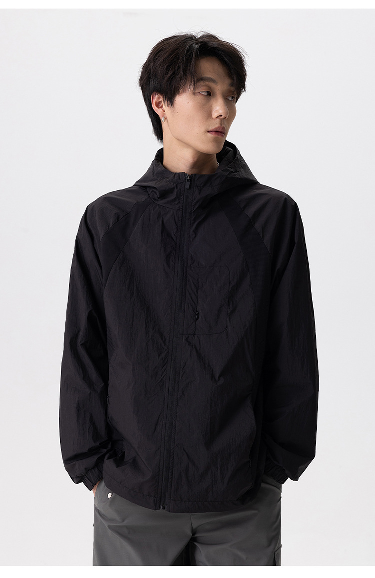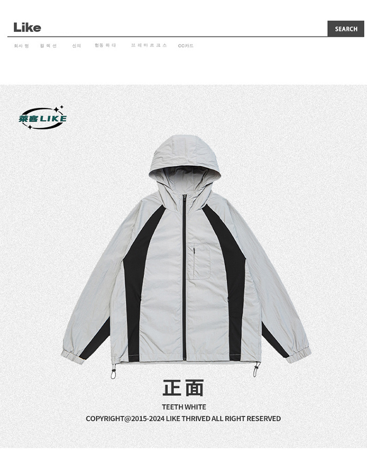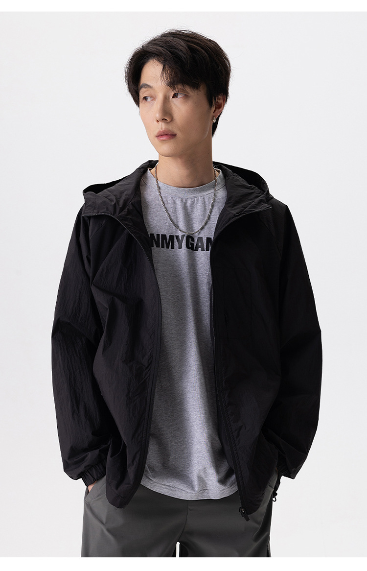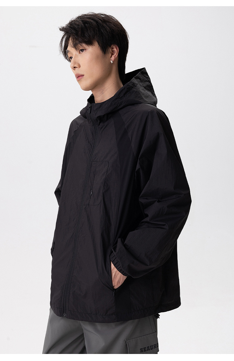 厂家直销男士高街风格薄款连帽夹克,宽松版型,休闲春秋,拼色设计,耐磨功能