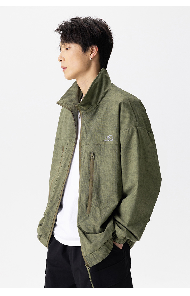 厂家直销男士宽松防风休闲牛仔外套,春秋季,多口袋刺绣设计,轻薄时尚潮牌