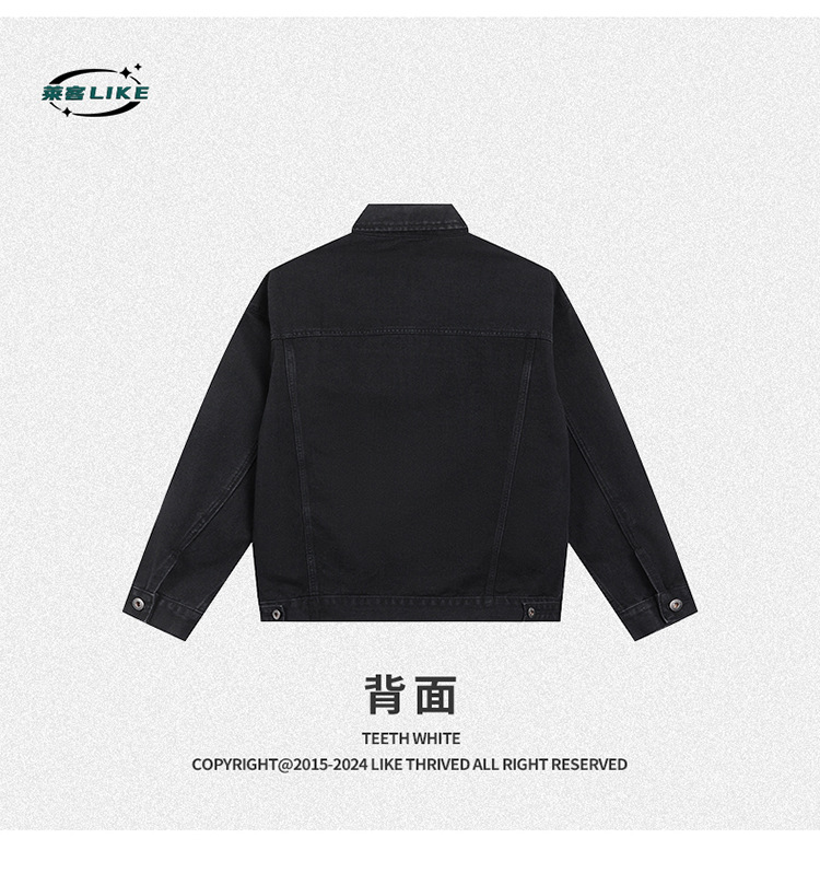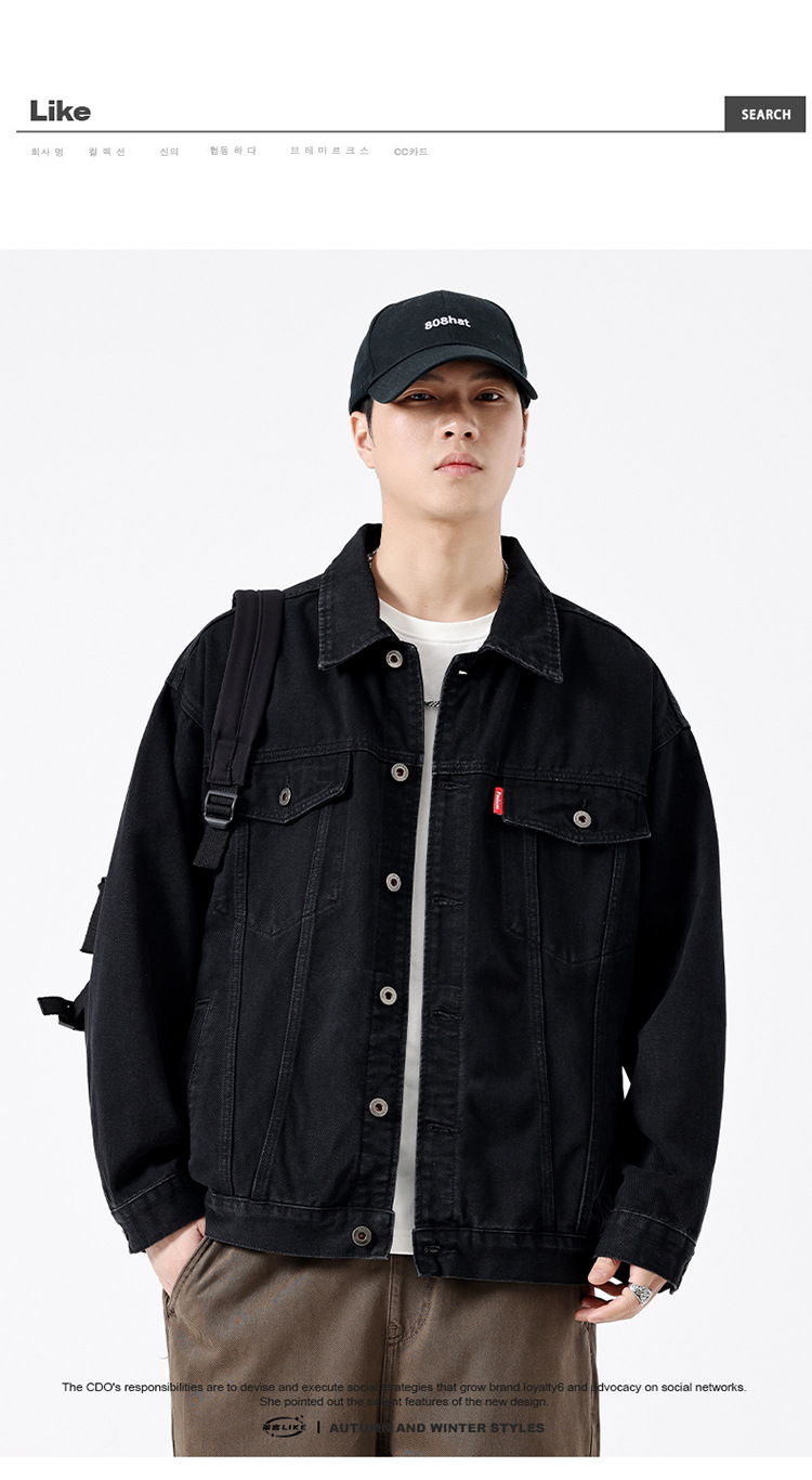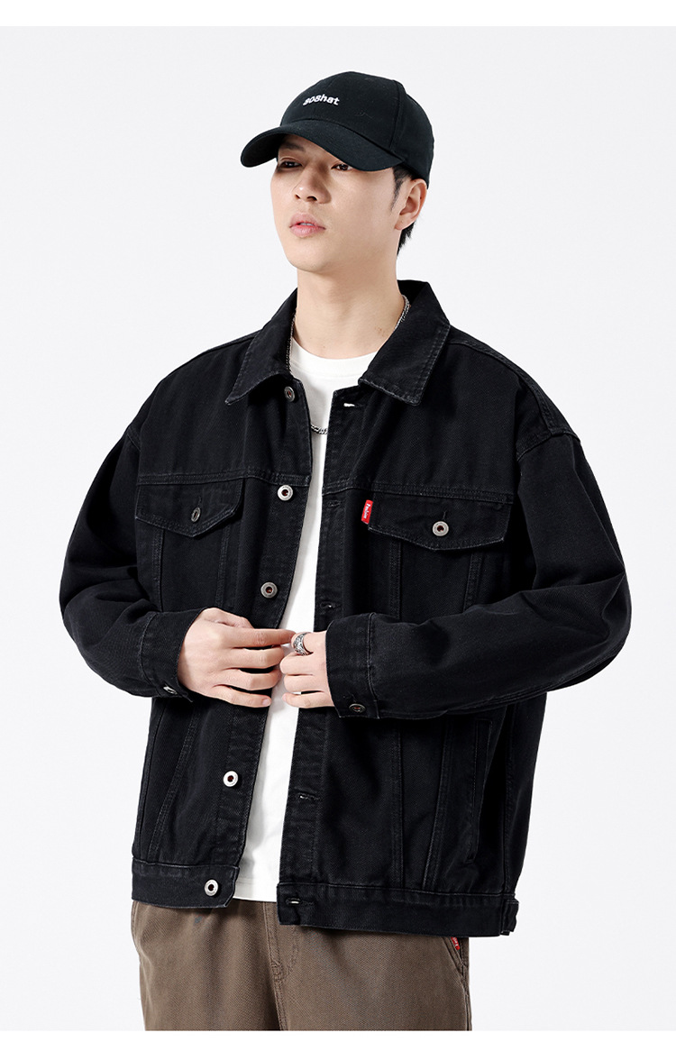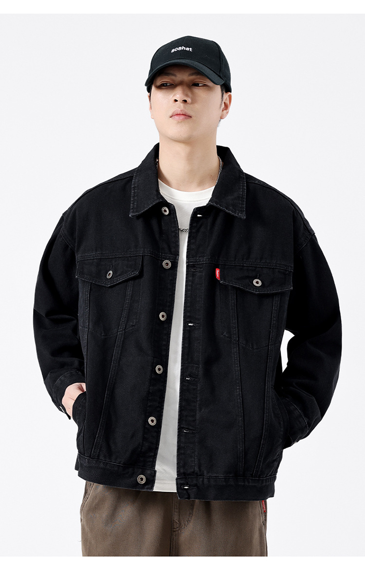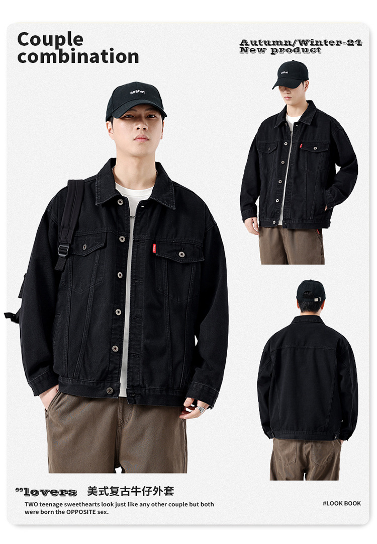 厂家直销男士宽松黑色牛仔外套,耐磨复古风格休闲夹克,多口袋设计,春季适用