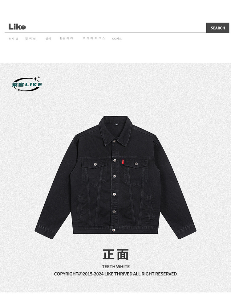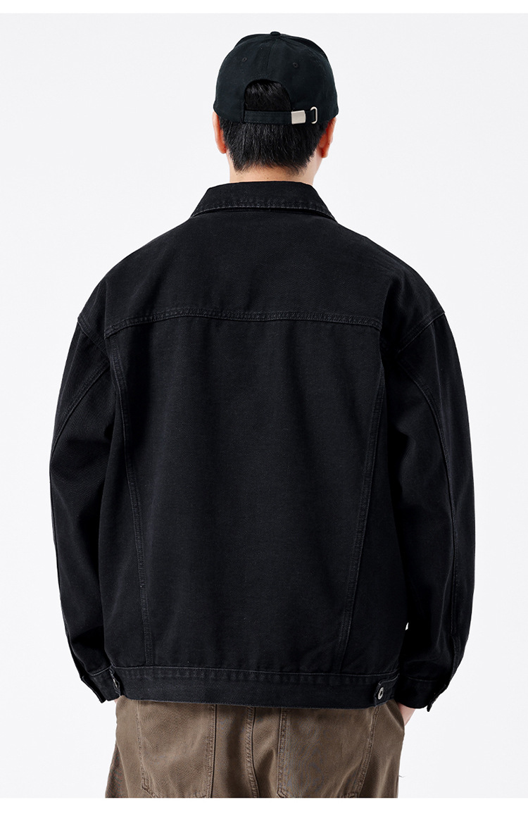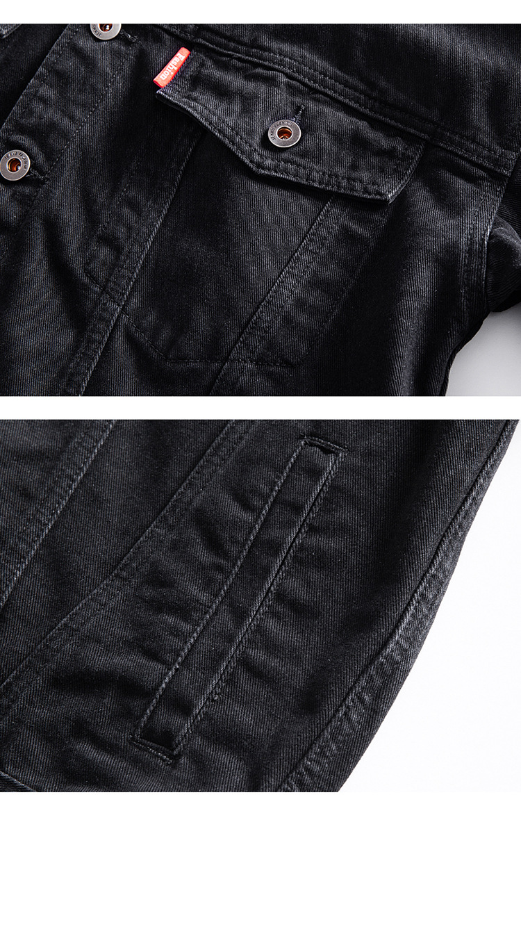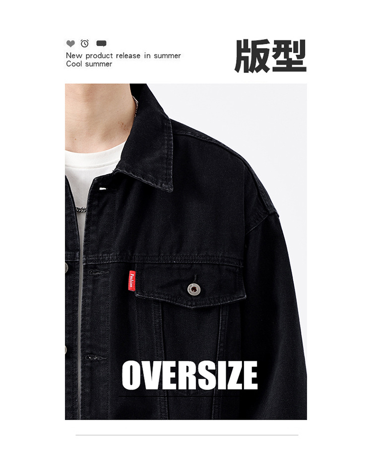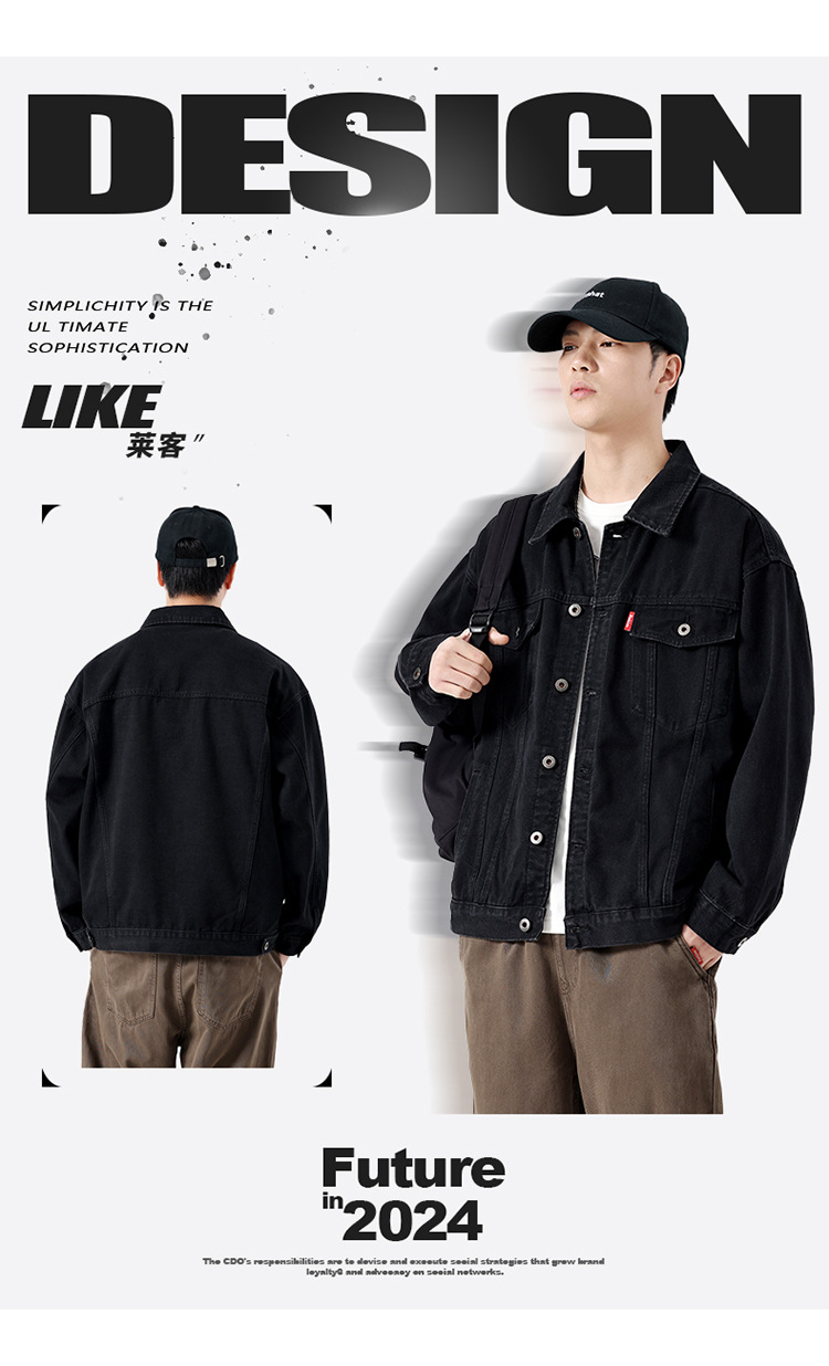 厂家直销男士宽松黑色牛仔外套,耐磨复古风格休闲夹克,多口袋设计,春季适用