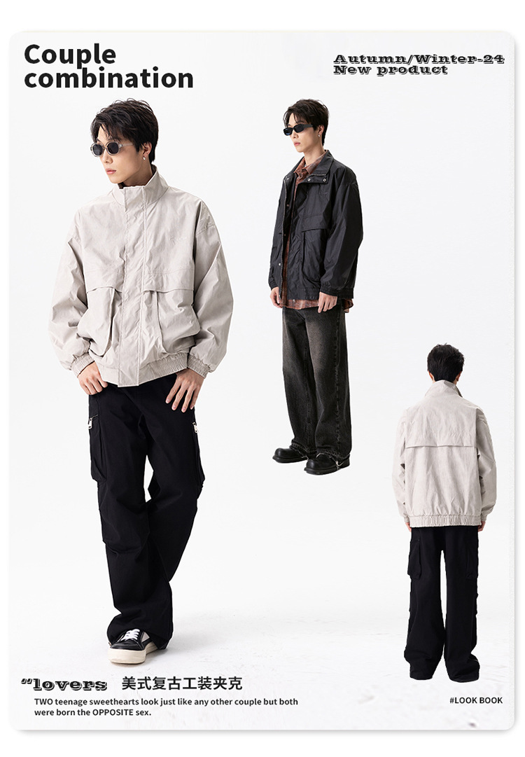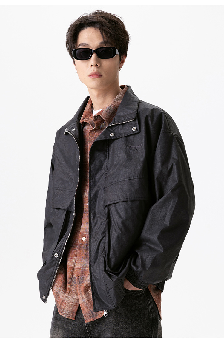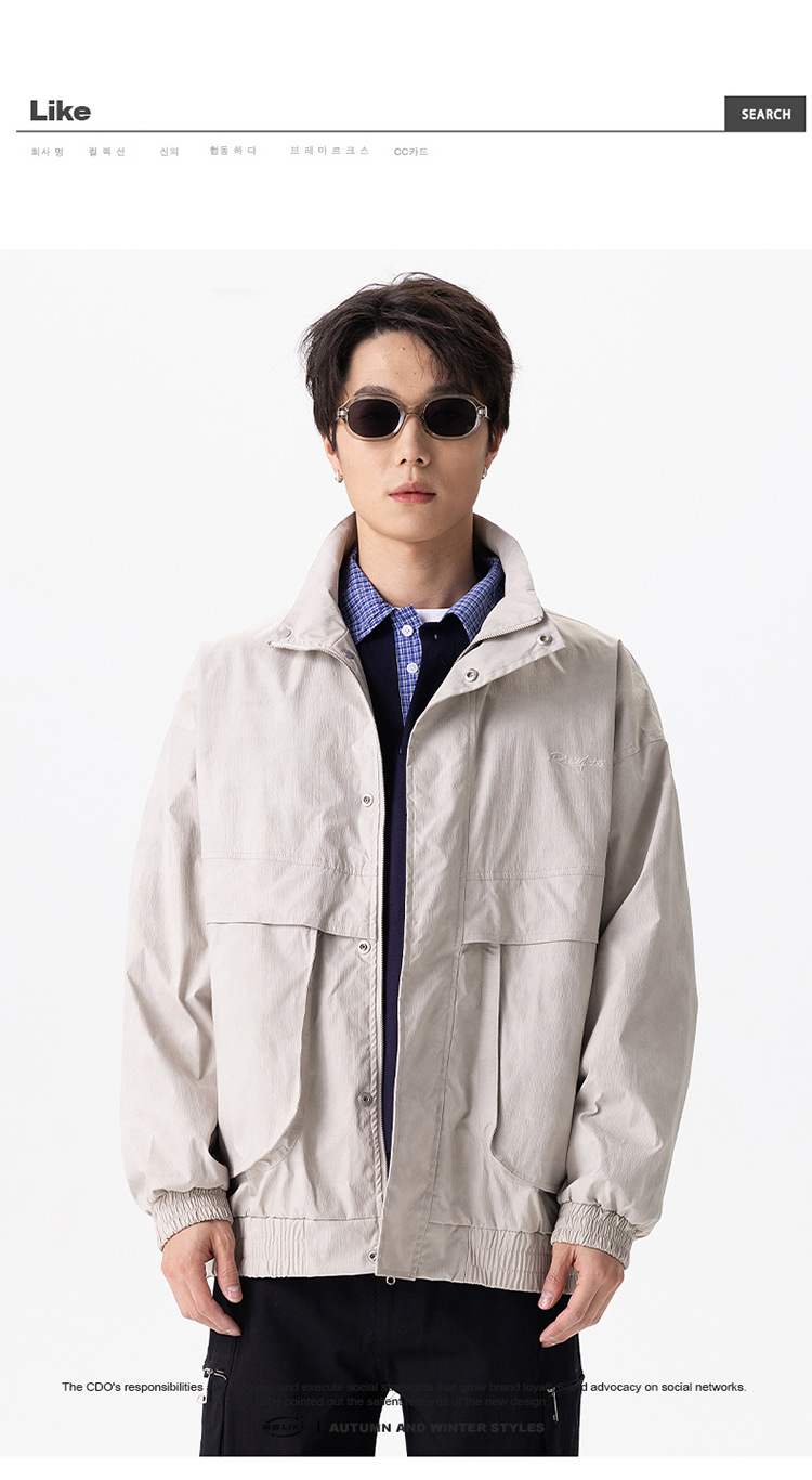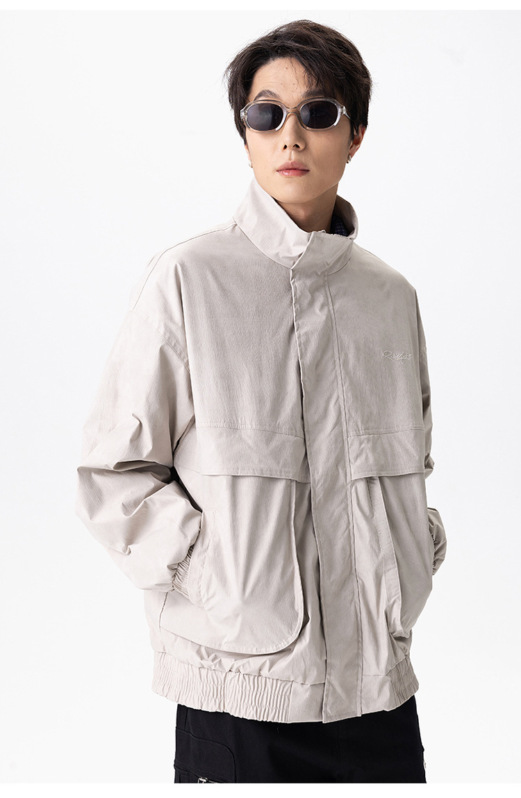 厂家直销男士宽松飞行夹克,透气耐磨高街休闲外套,春秋季节,多口袋刺绣设计