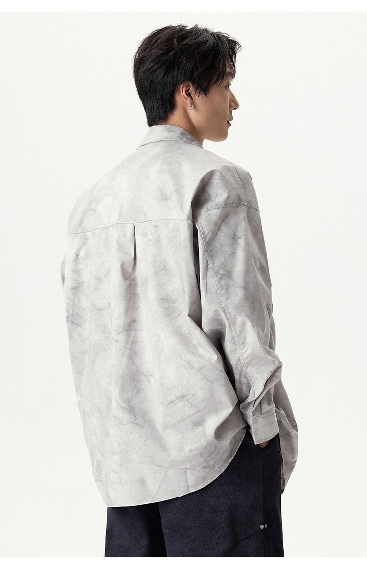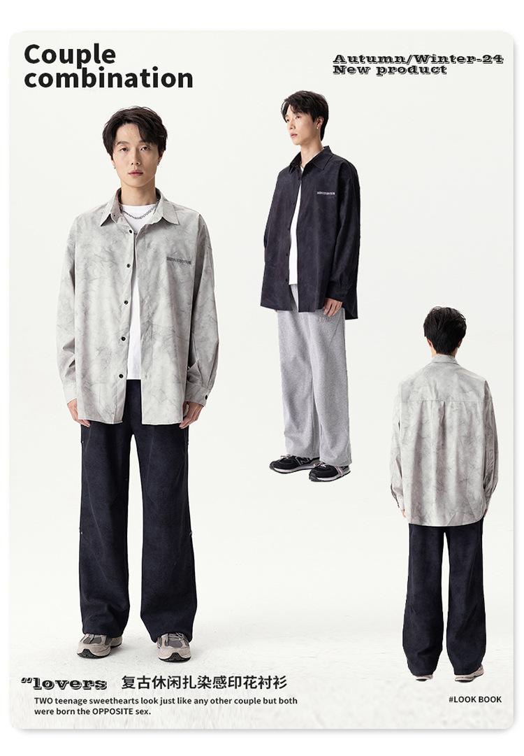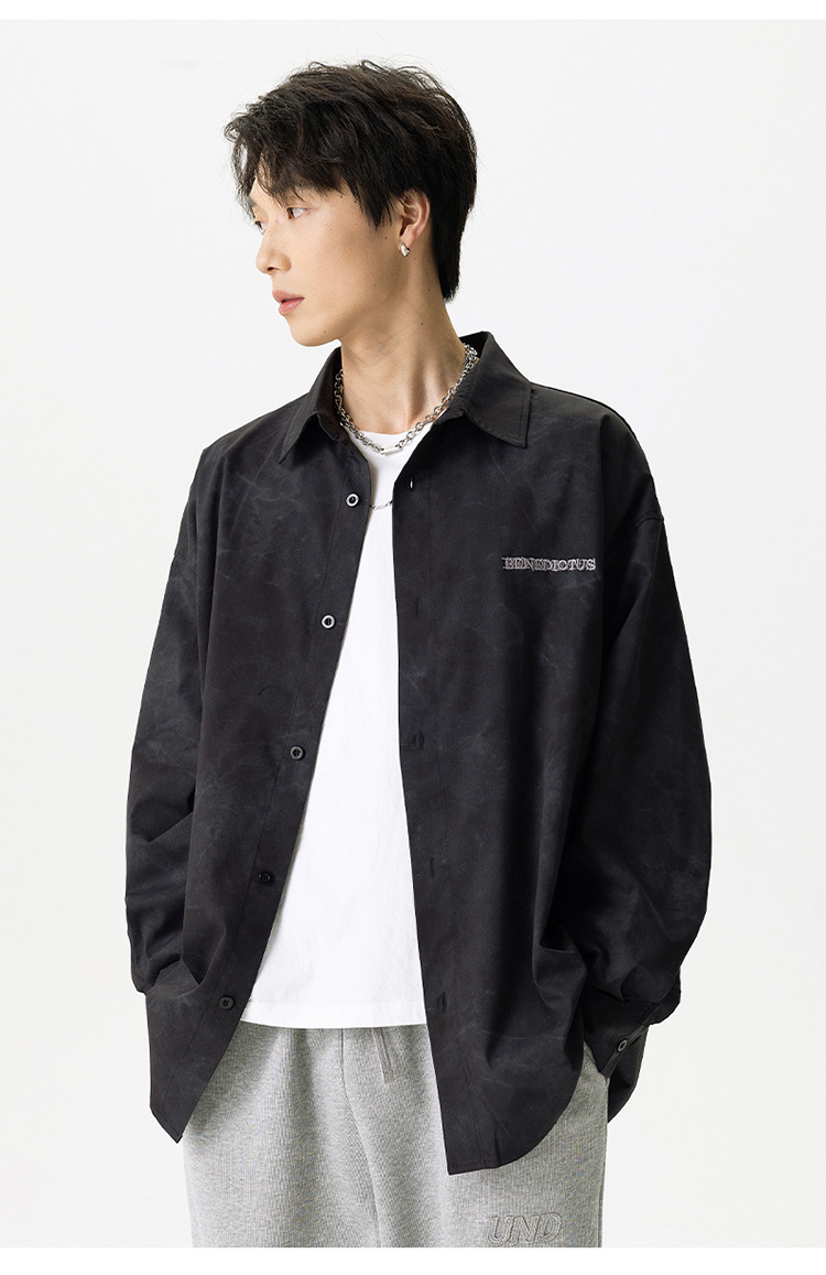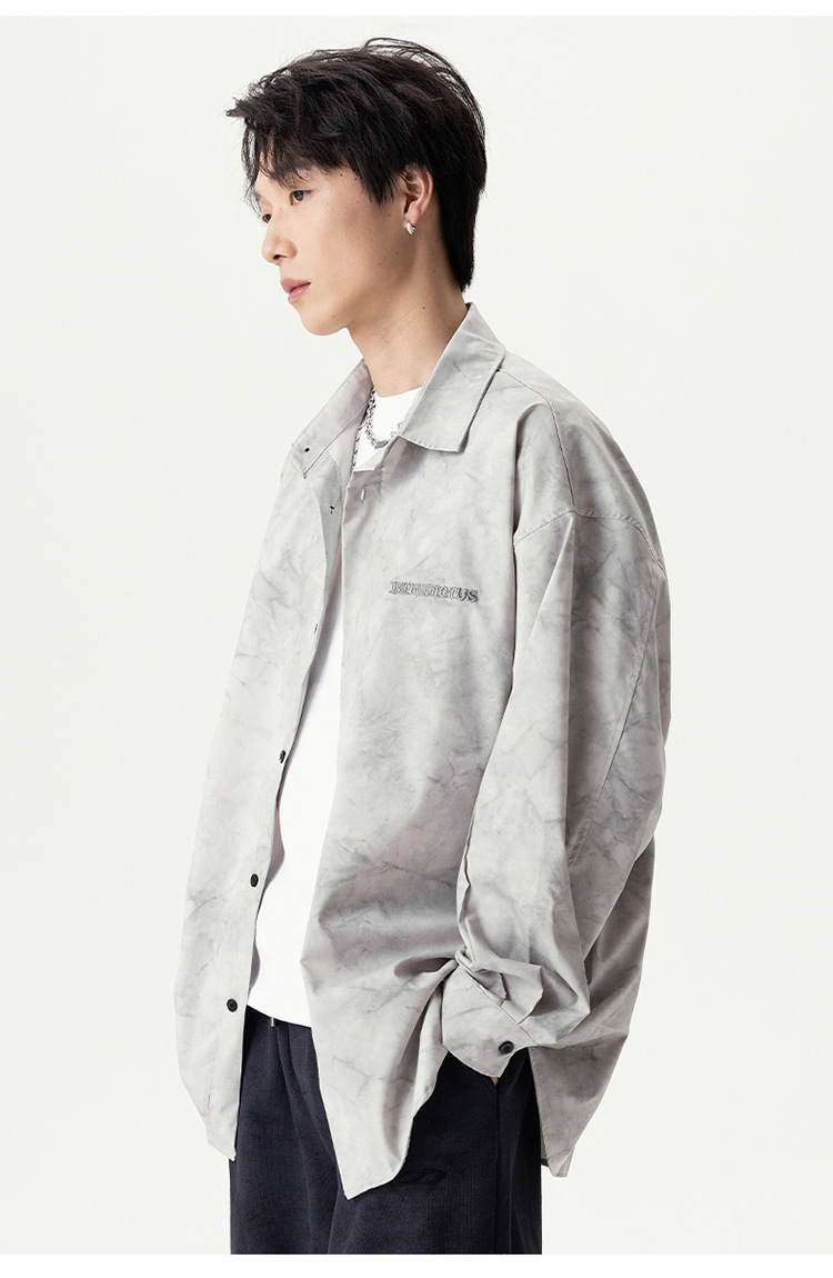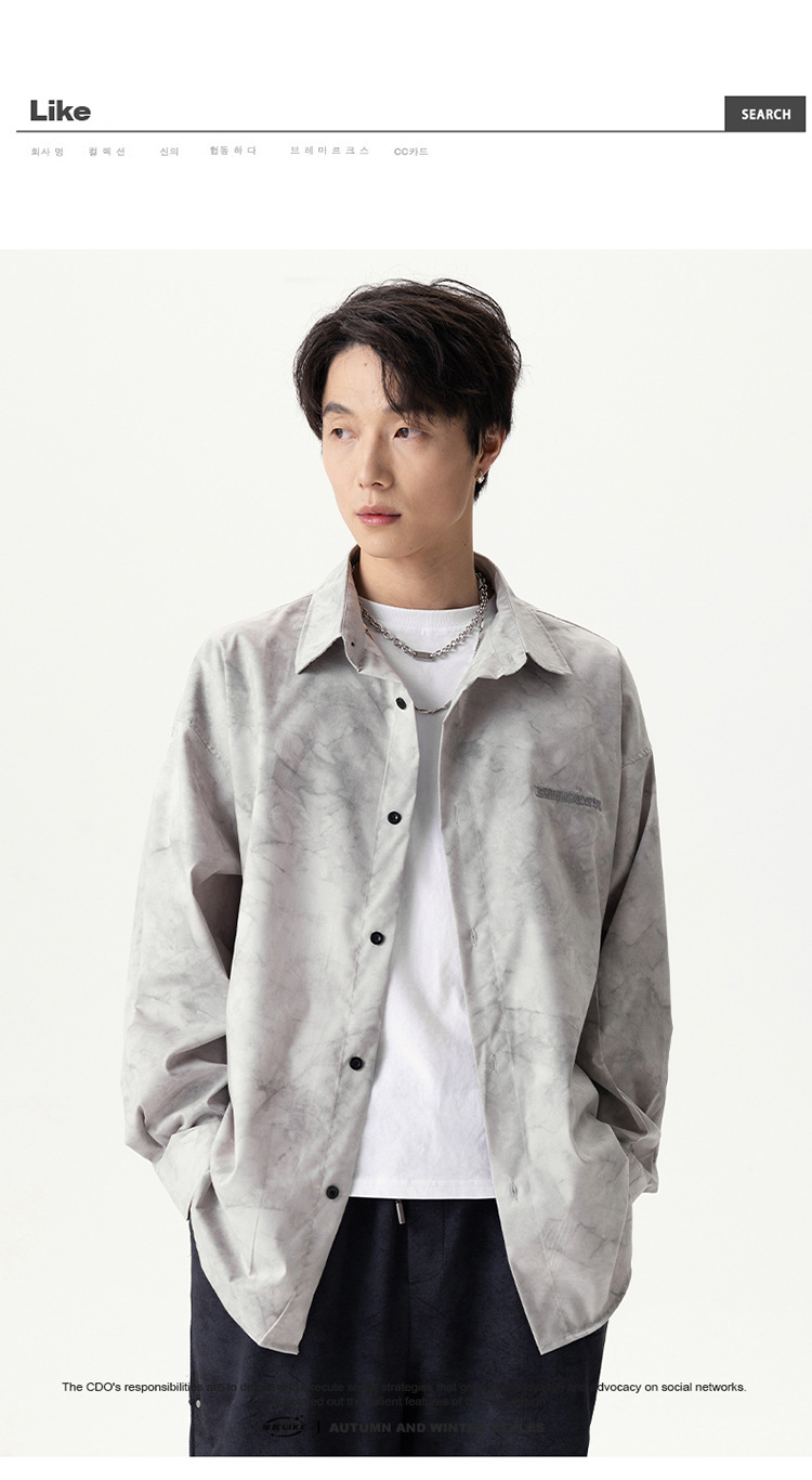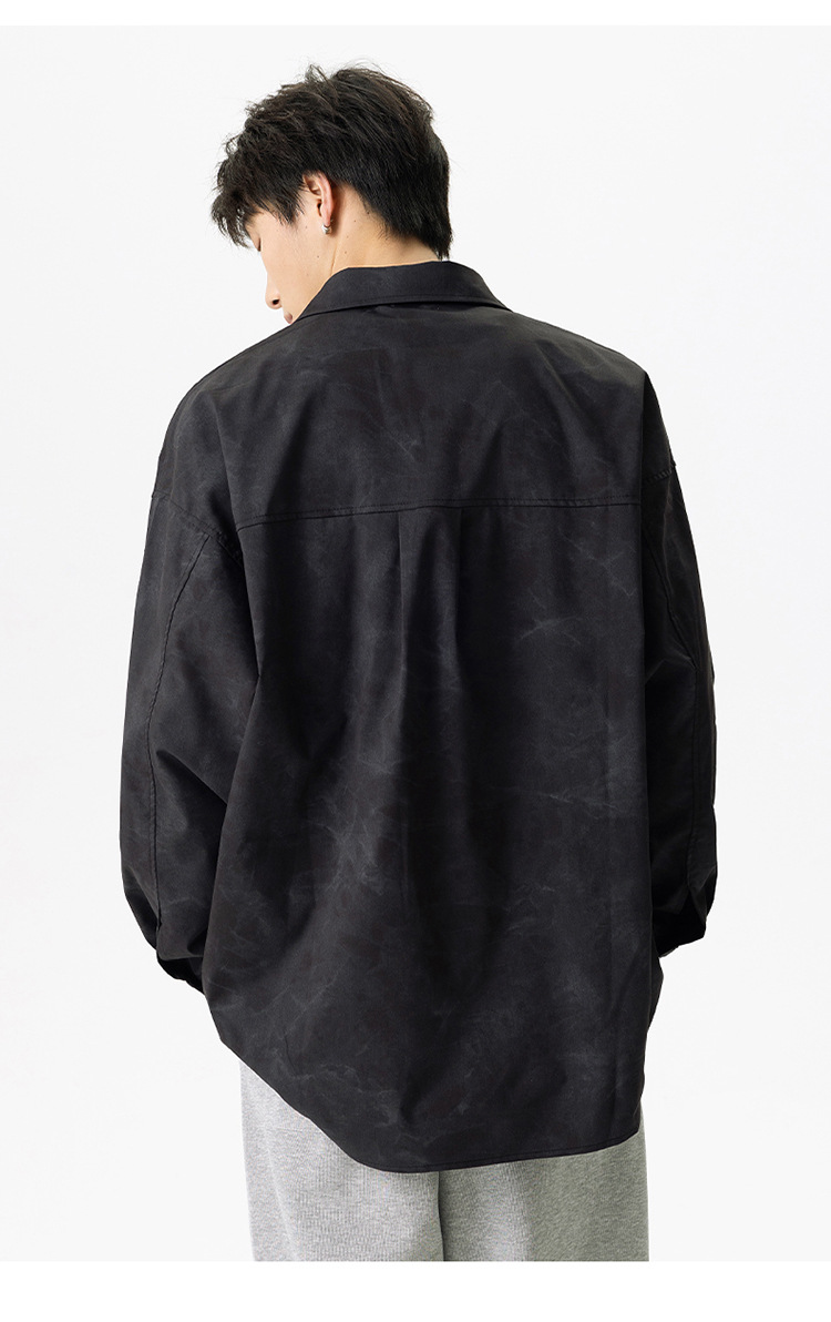 厂家直销男士休闲宽松牛仔外套,仿旧扎染风格,春秋款,多口袋设计