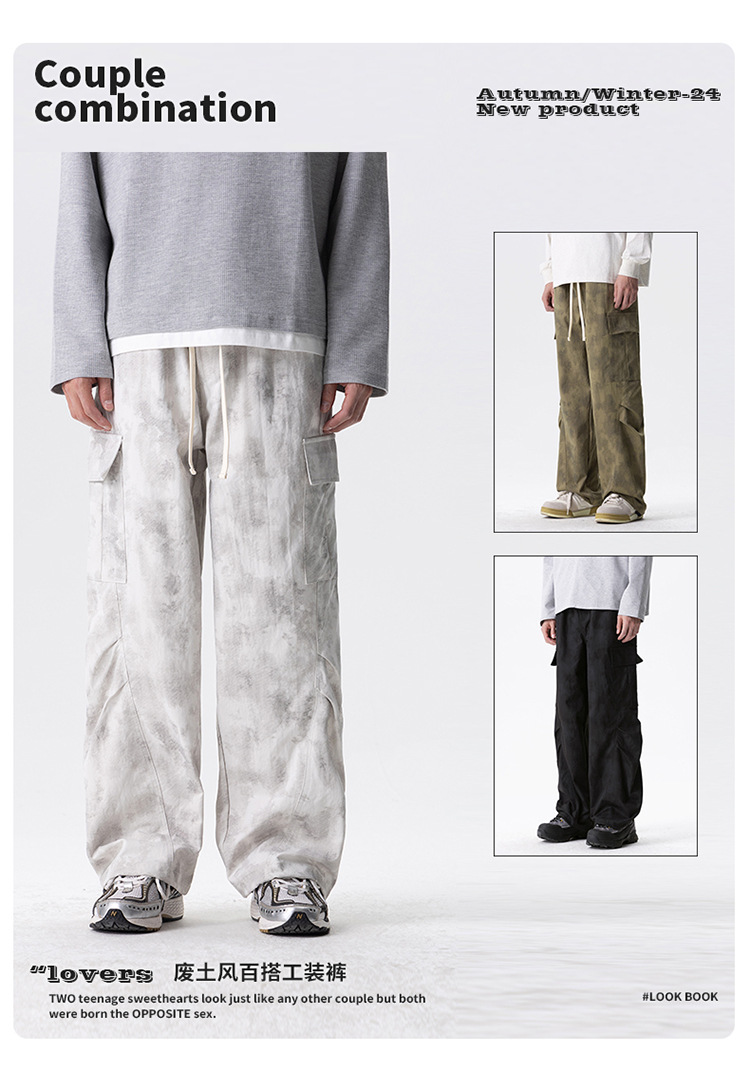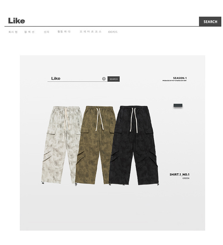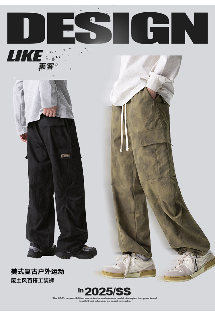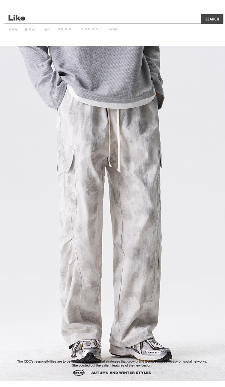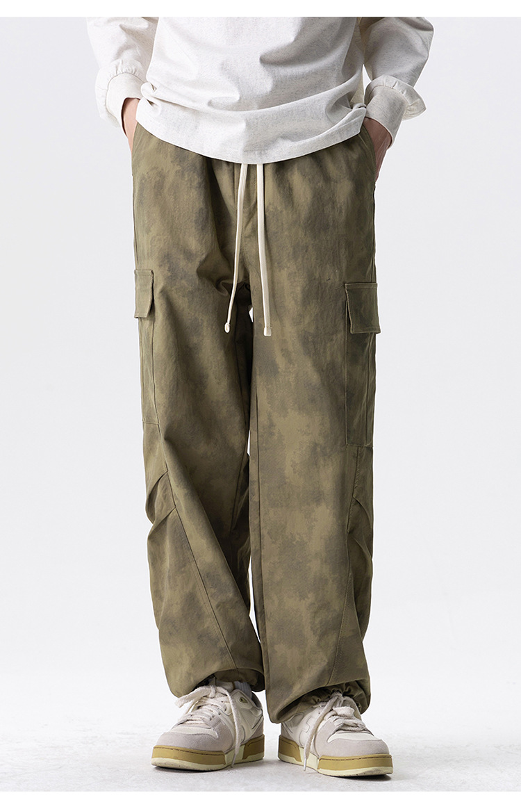 厂家直销男士修身迷彩工装裤,春季休闲款,褶皱装饰多口袋长裤
