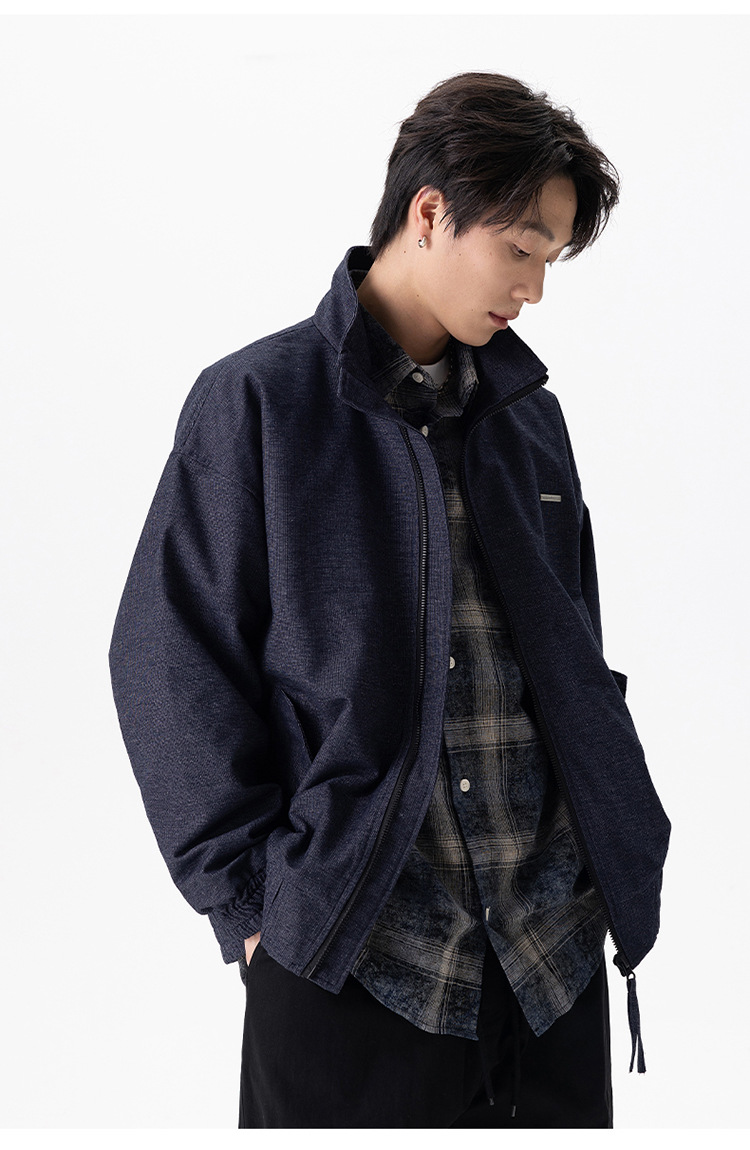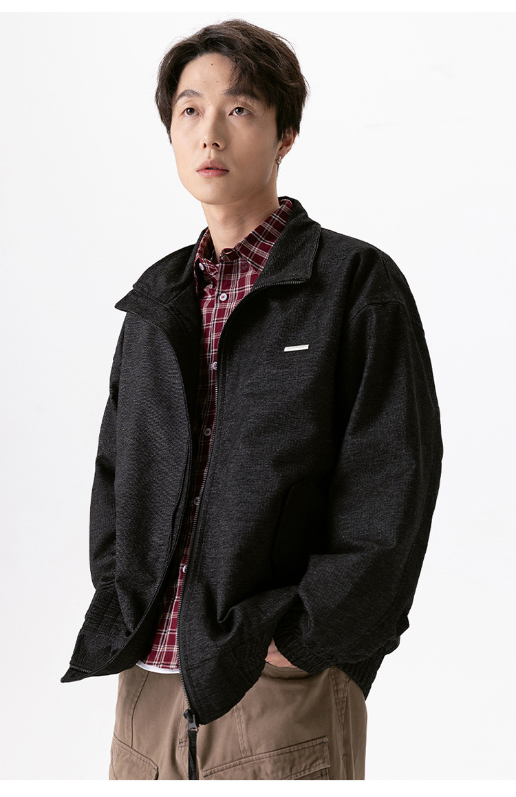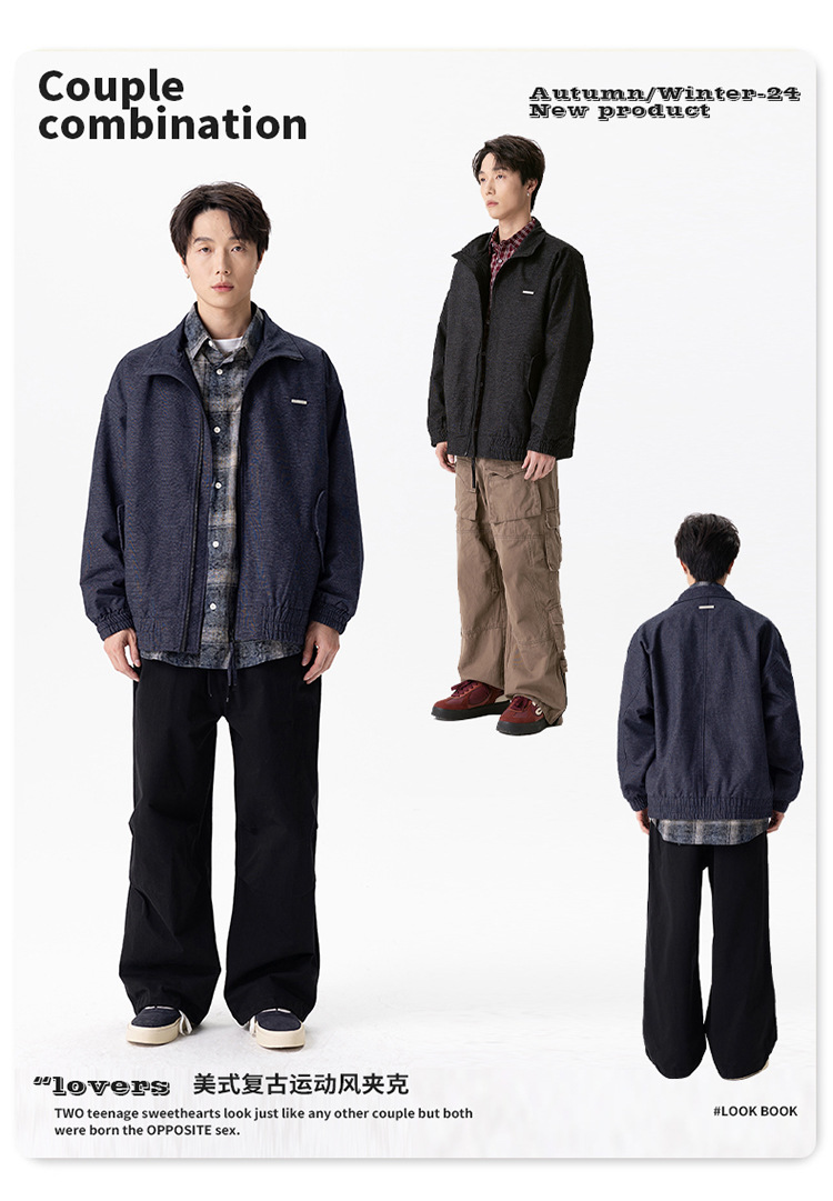 厂家直销男士宽松黑色复古牛仔外套,春秋休闲通勤款,耐磨刺绣设计