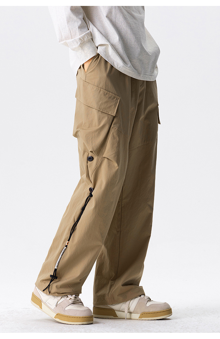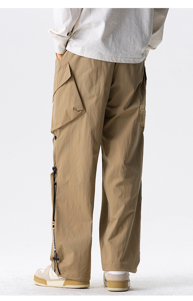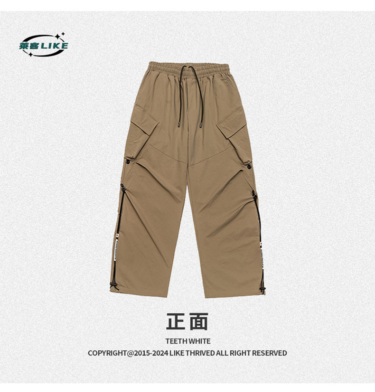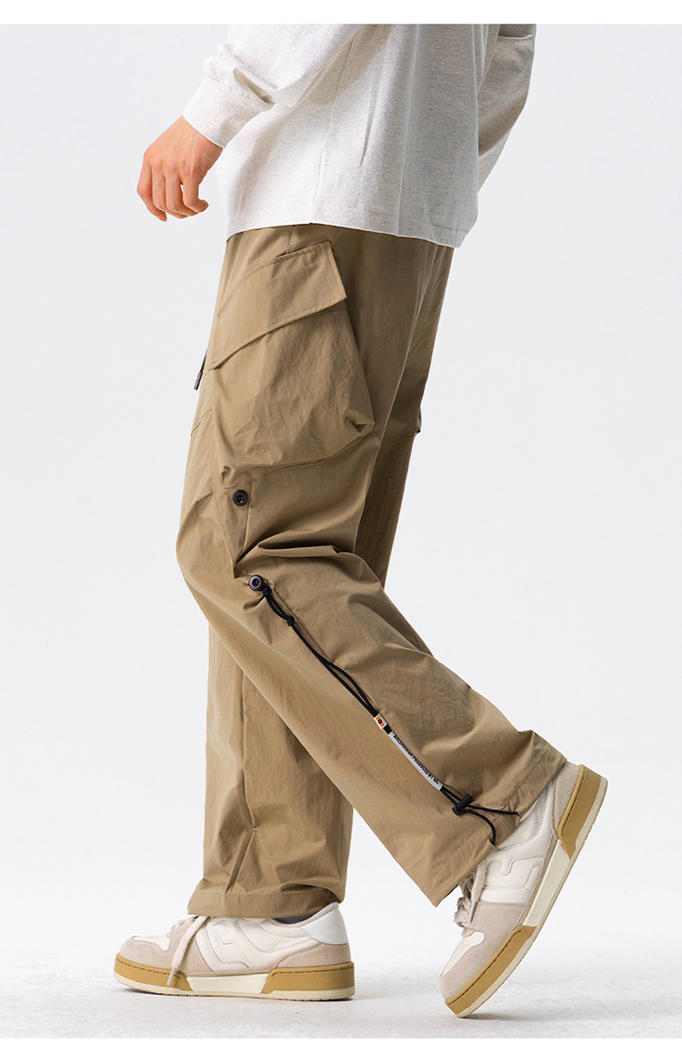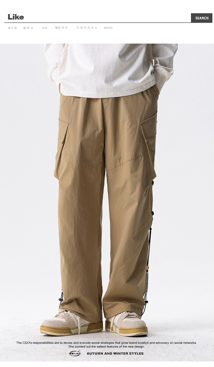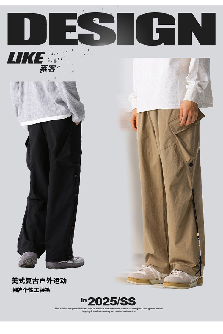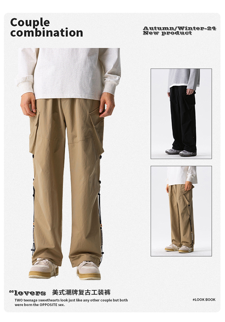 厂家直销男士宽松工装裤,秋季高街潮流直筒设计,休闲风格,多口袋印花长裤
