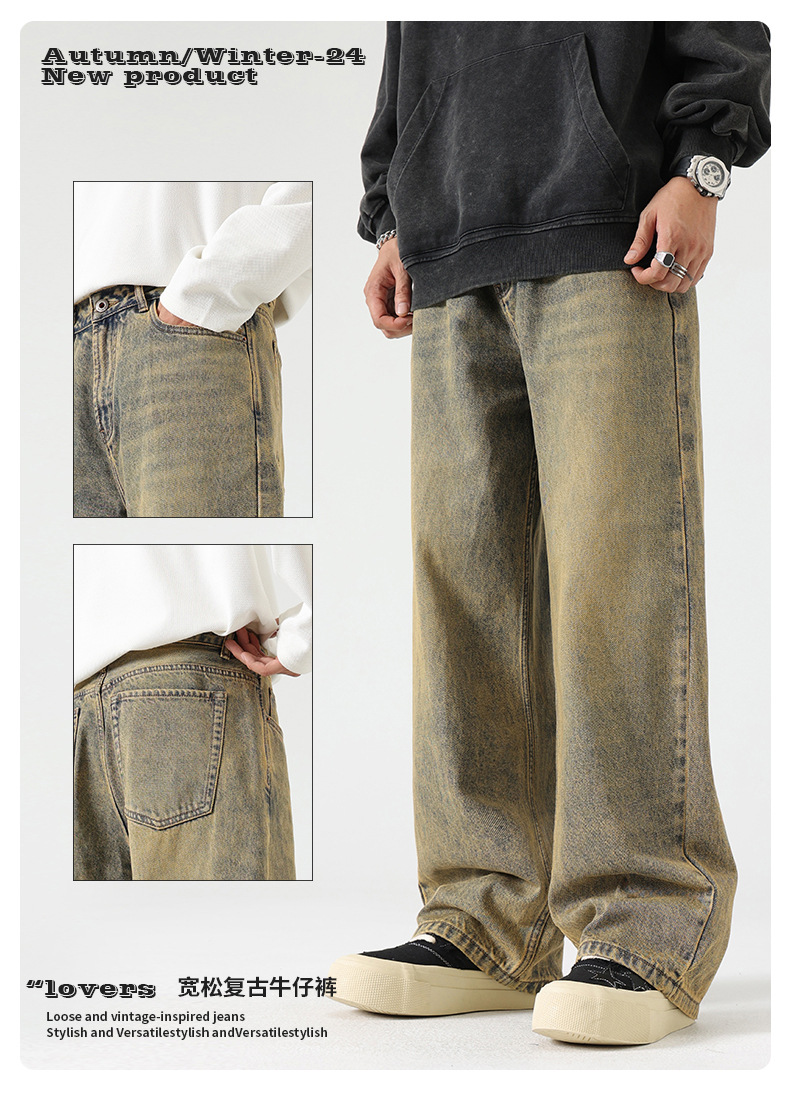 厂家直销男士修身水洗牛仔裤,宽松直筒款,适合四季休闲,青春流行风格