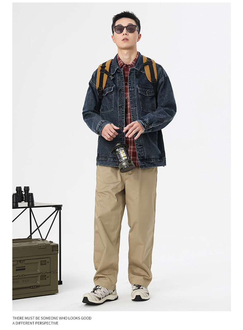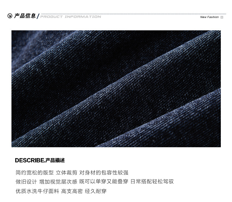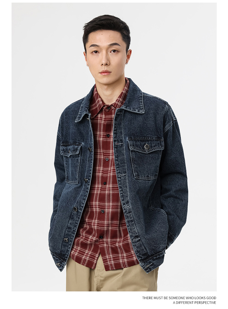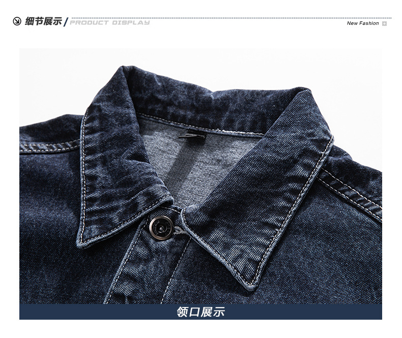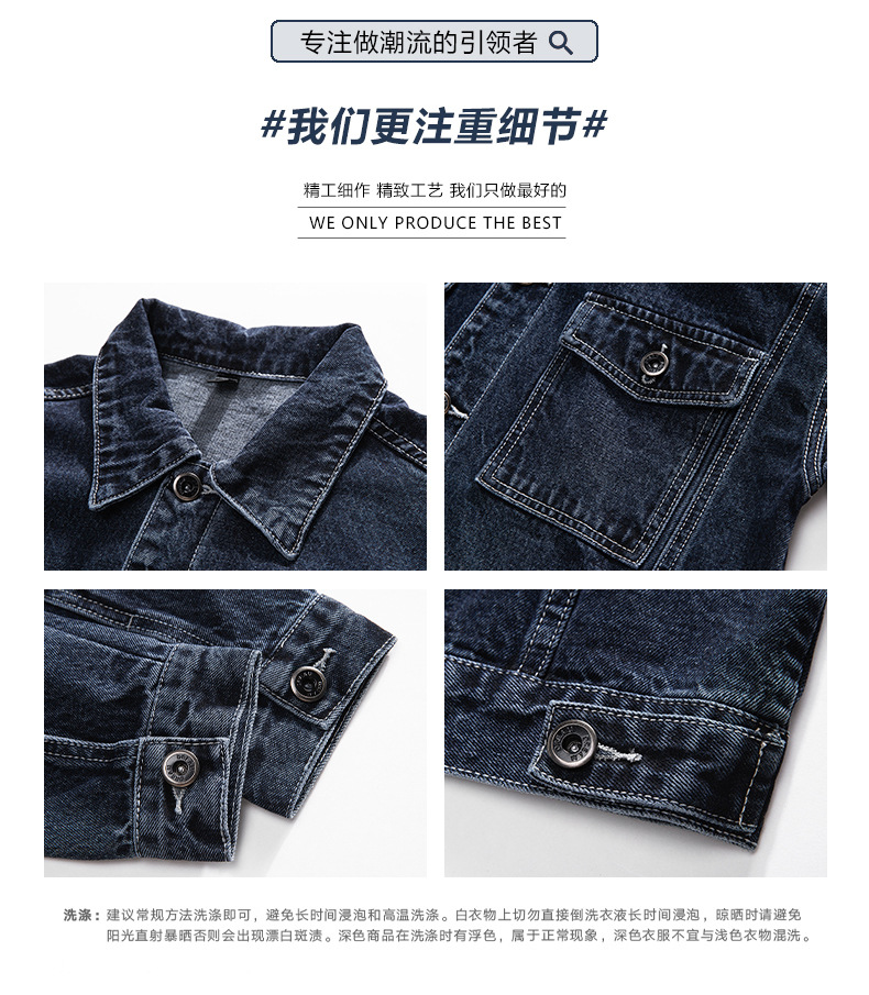 厂家直销男士牛仔外套,复古蓝色宽松版型,时尚都市风格,适合春秋季,耐磨防撕裂设计