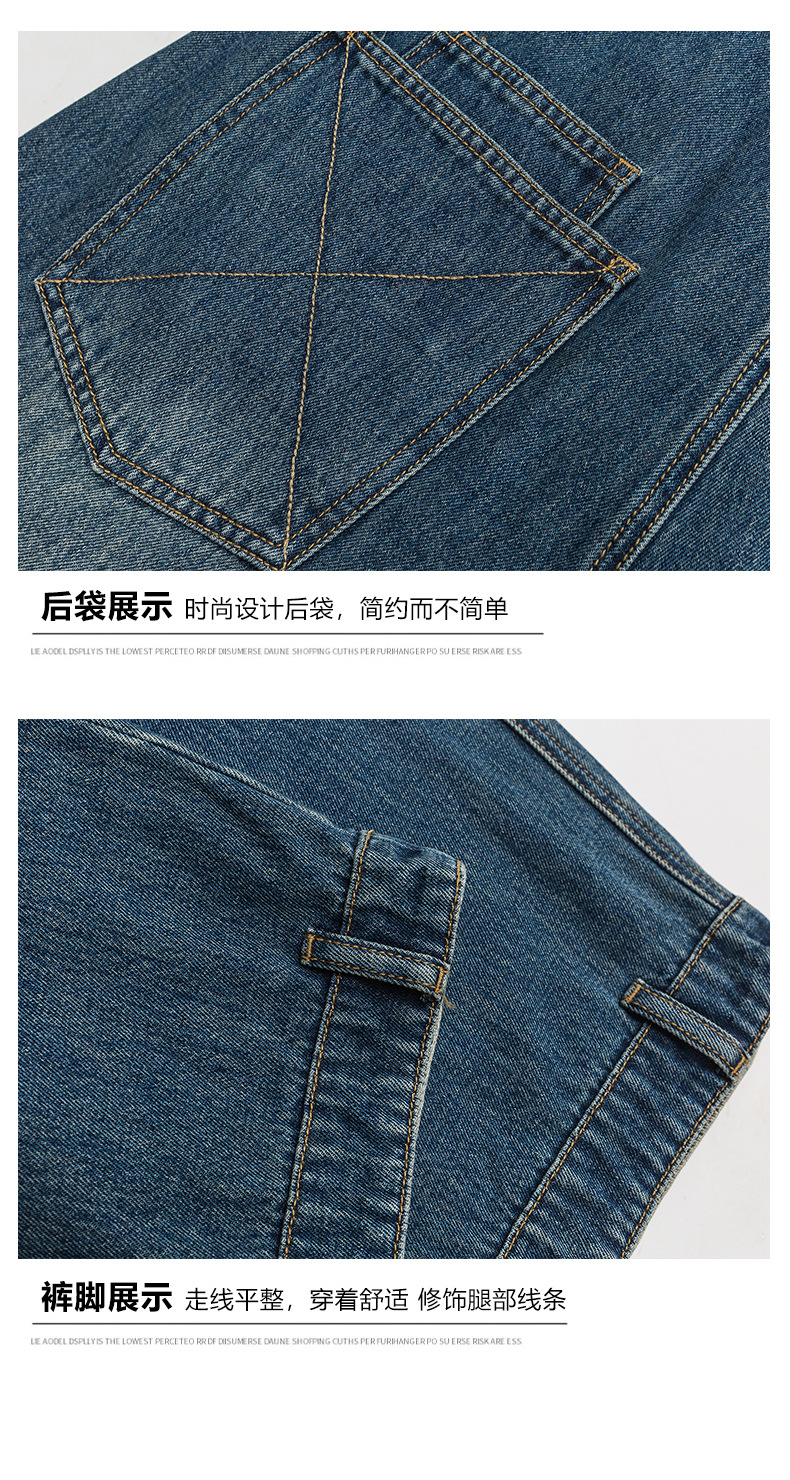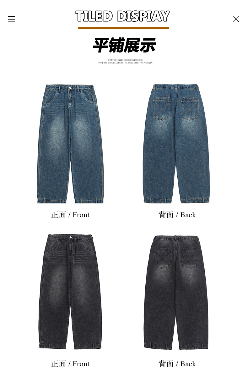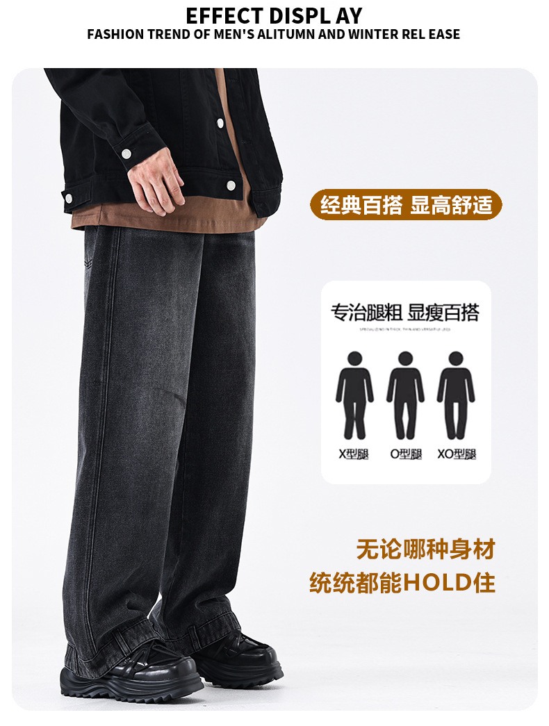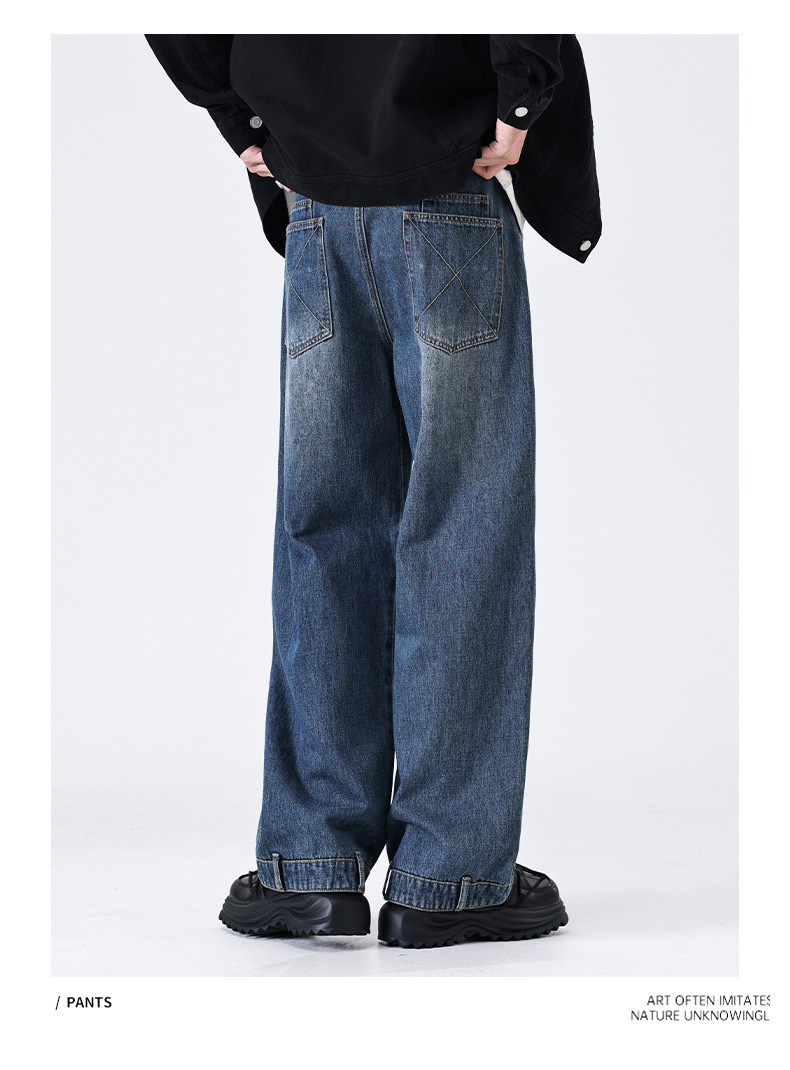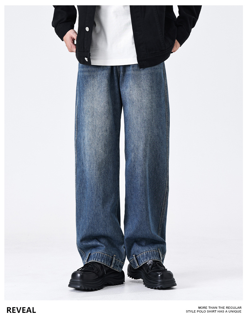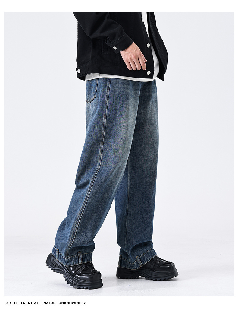 厂家直销男士宽松水洗牛仔裤,复古蓝色直筒设计,秋季高街休闲风格,适合青年穿着