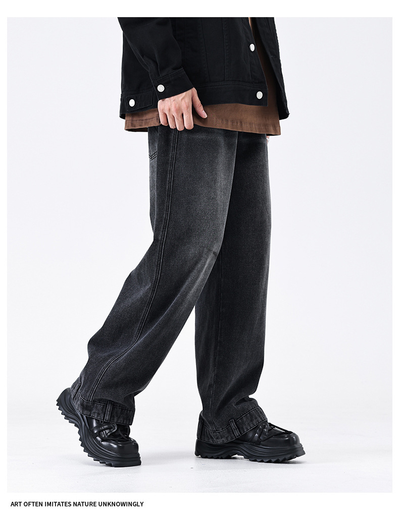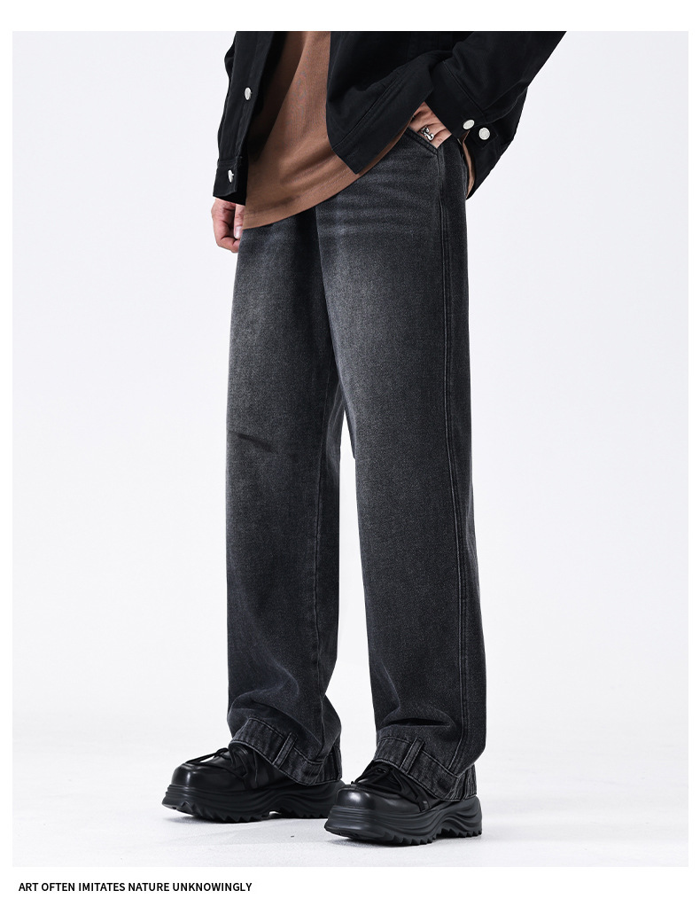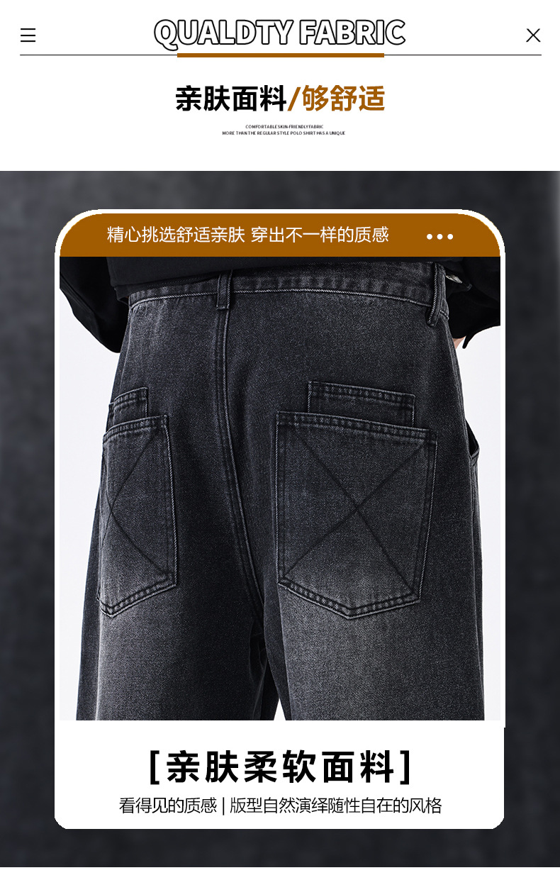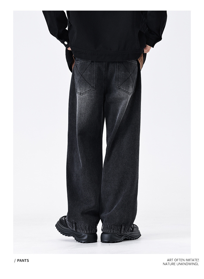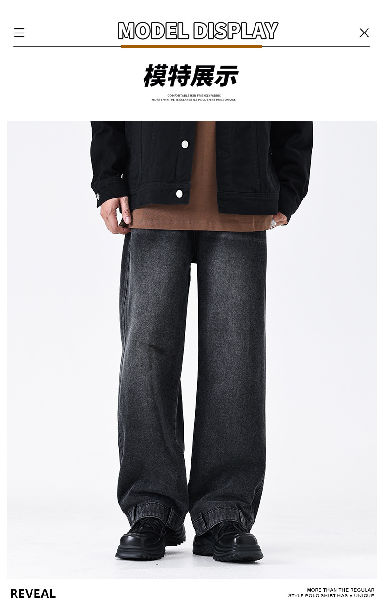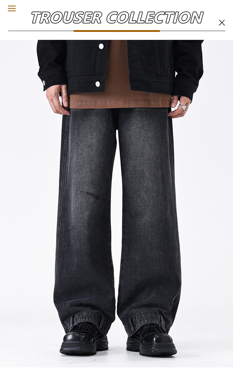 厂家直销男士宽松水洗牛仔裤,复古蓝色直筒设计,秋季高街休闲风格,适合青年穿着