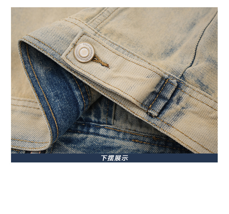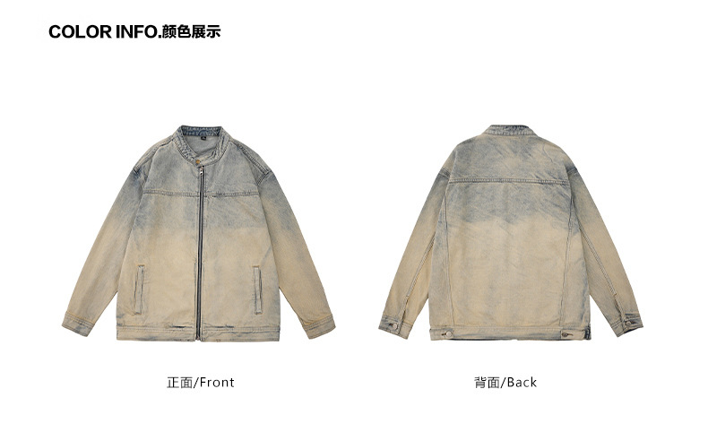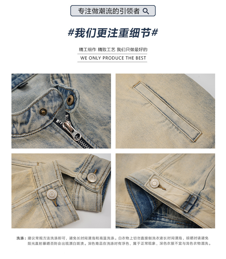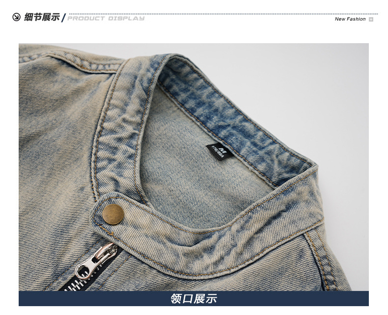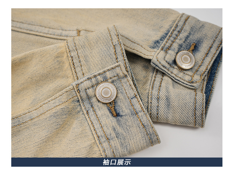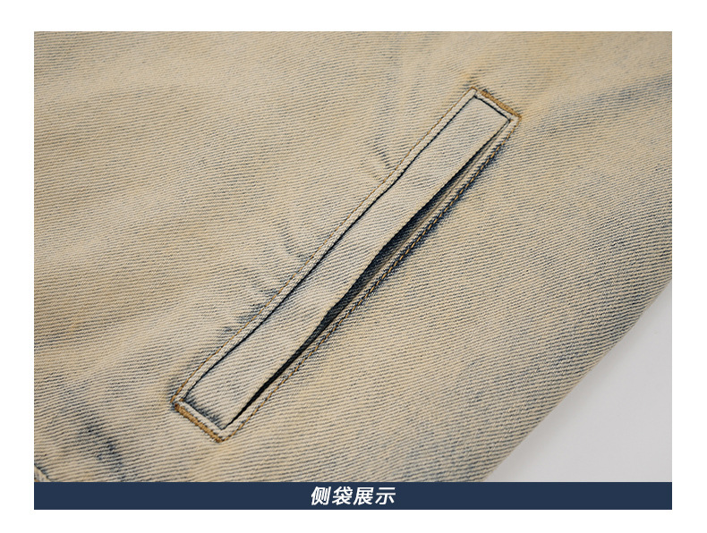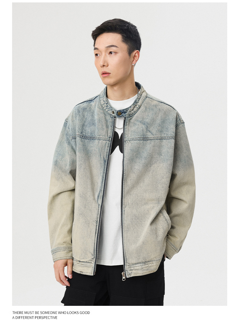 厂家直销男士美式复古宽松牛仔外套,春秋休闲款,耐磨防风设计,拉链开合多口袋