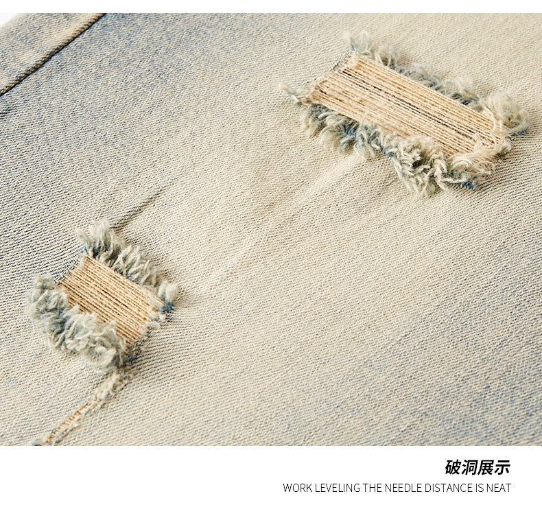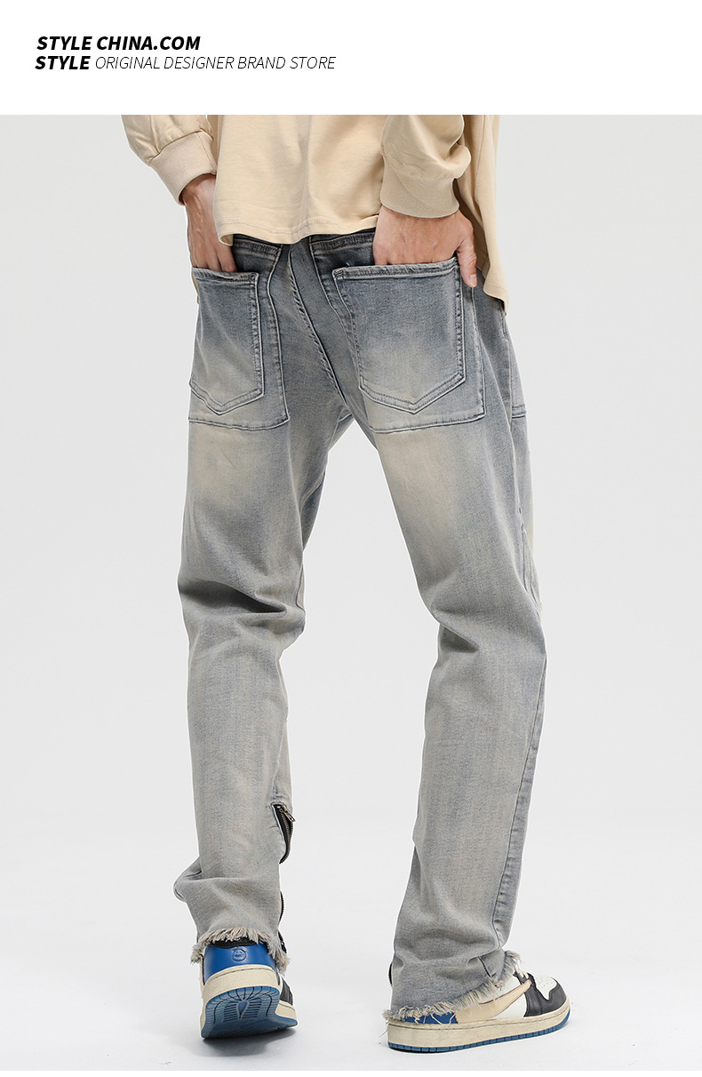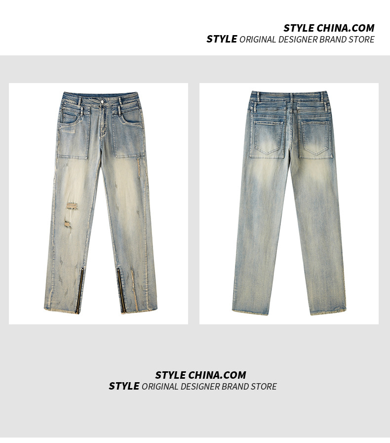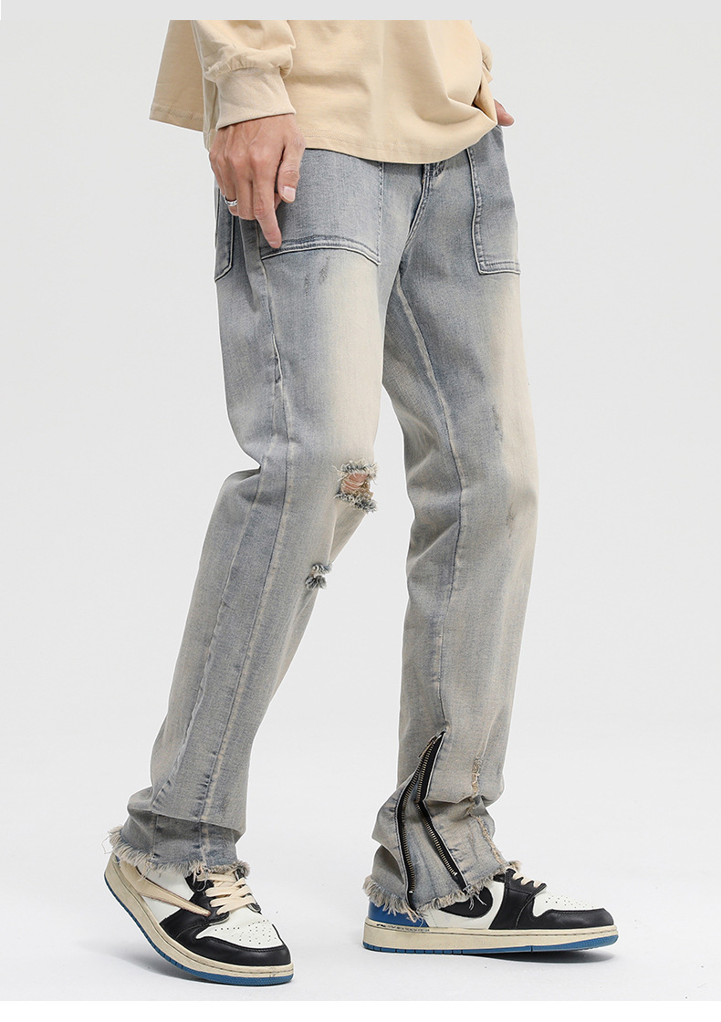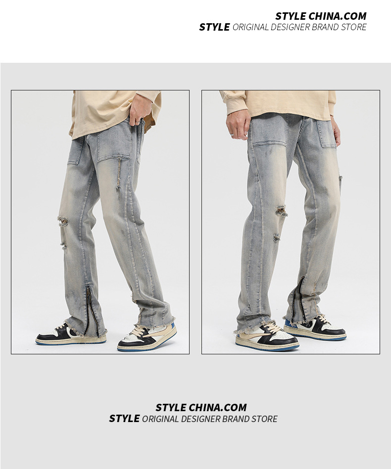 厂家直销男士破洞嘻哈风格牛仔裤,春秋休闲,水洗做旧长裤,拉链开襟设计