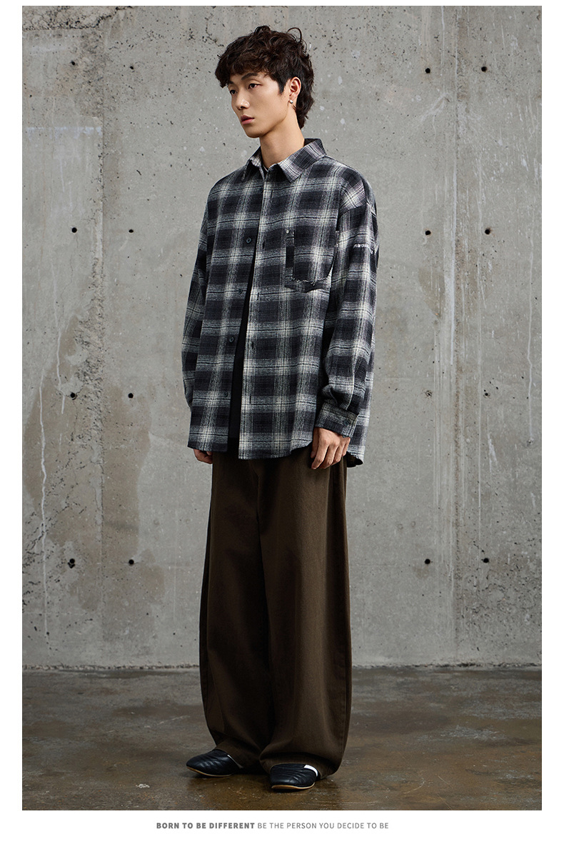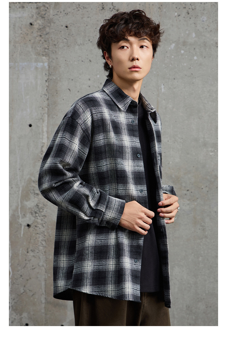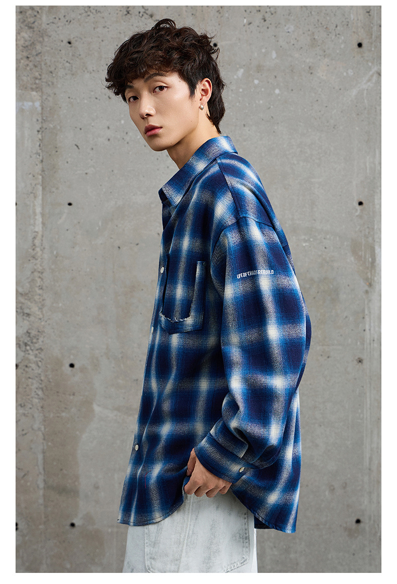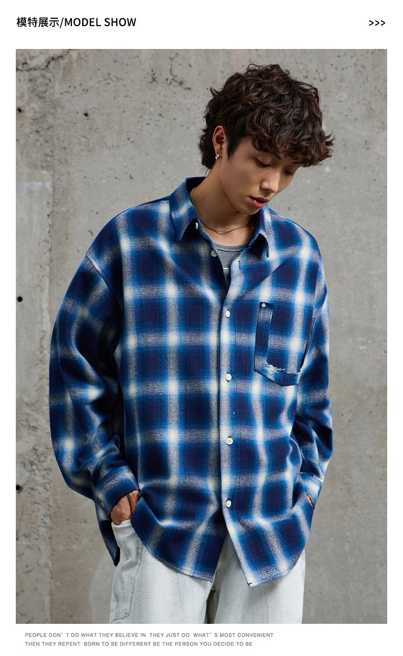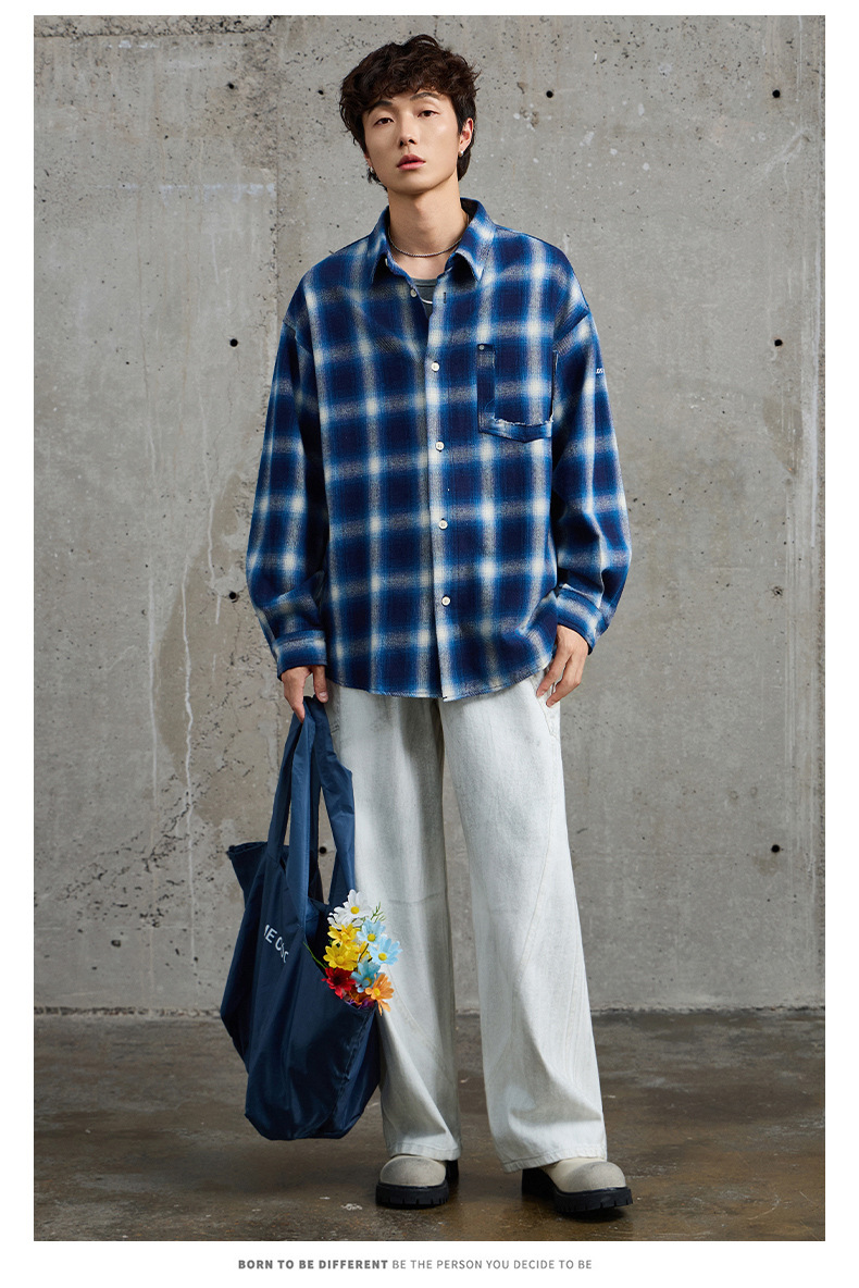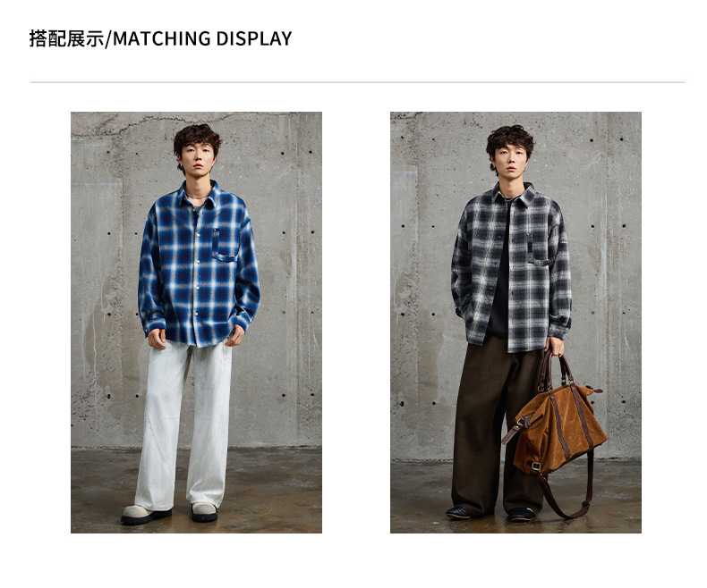 厂家直销男士宽松格子牛仔外套,秋冬街头风格,透气耐磨设计
