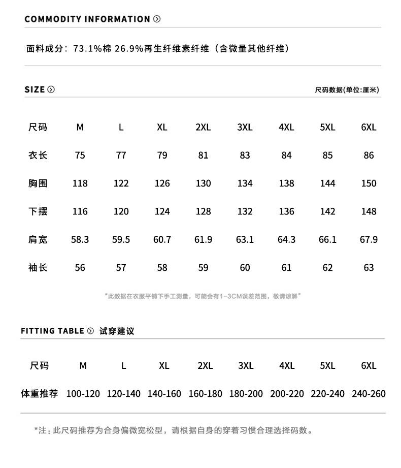 | 主面料成分的含量 | 73.1%棉 26.9%再生纤维素纤维 |