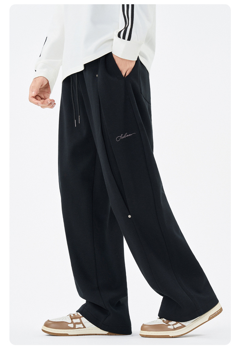 厂家直销男士修身刺绣阔腿牛仔裤,春秋休闲风,免烫耐磨长裤