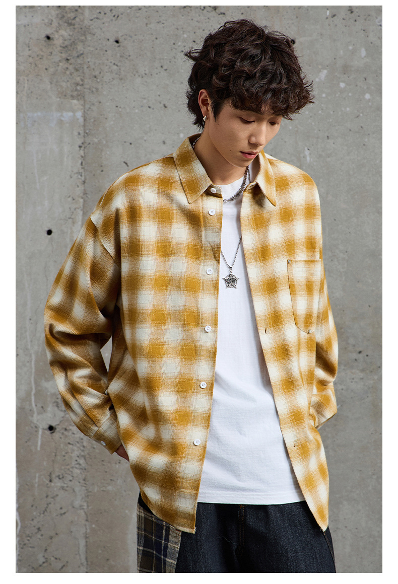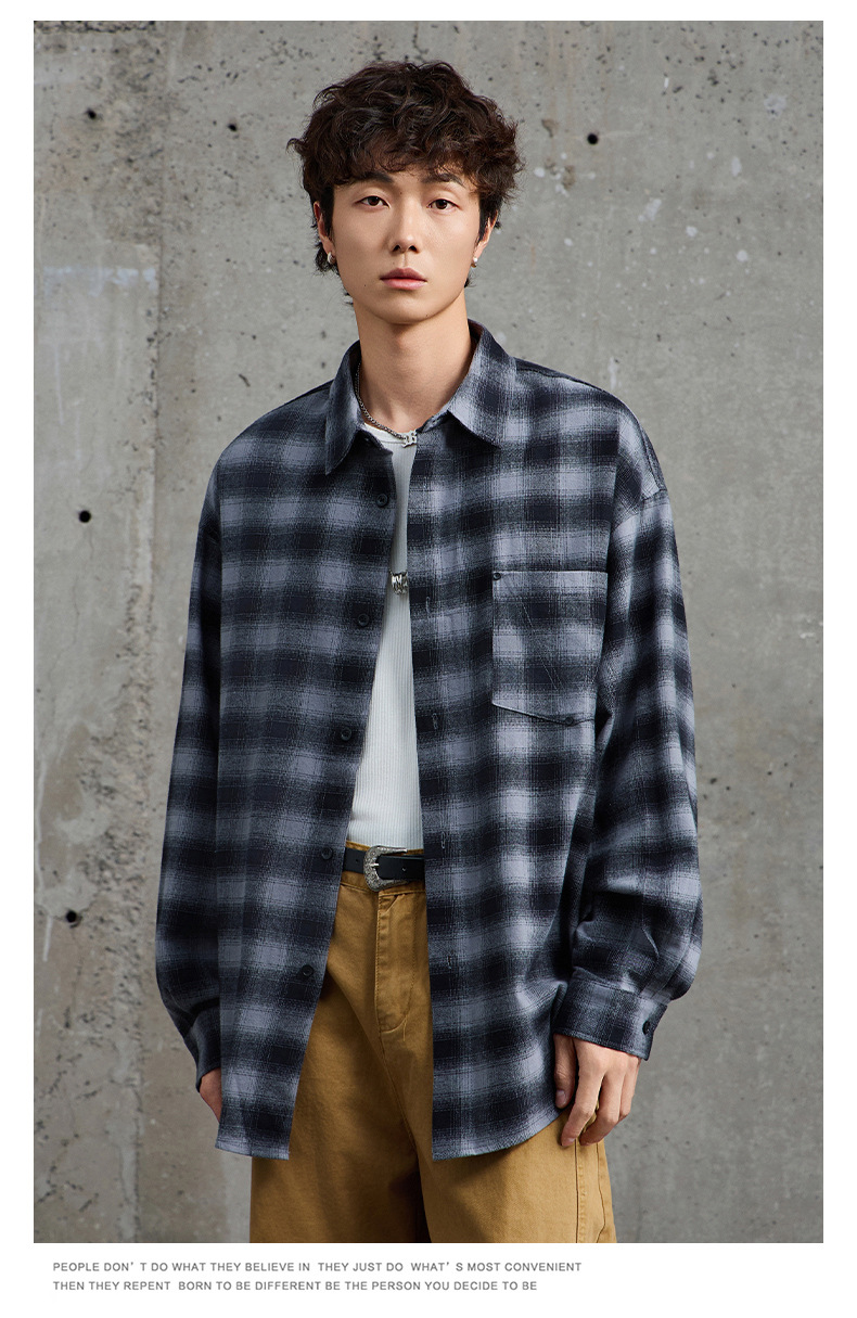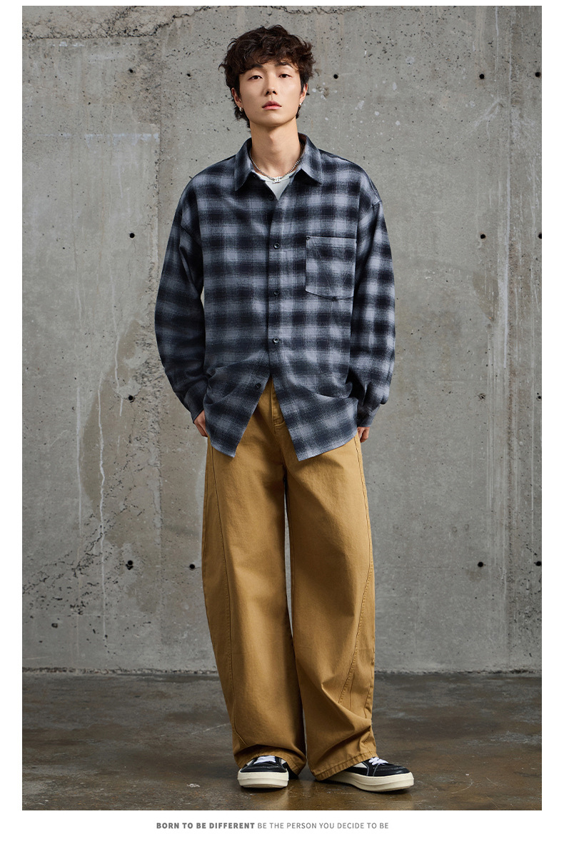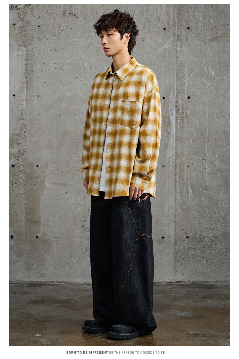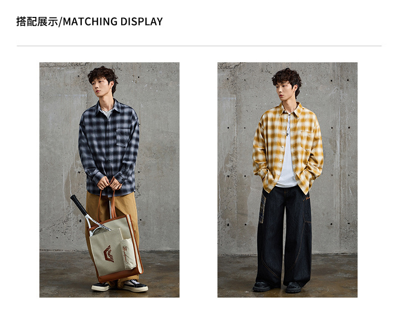 厂家直销男士宽松拼色格子牛仔外套,秋冬休闲款,透气可机洗设计