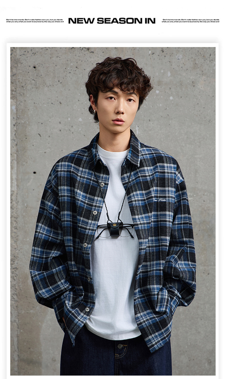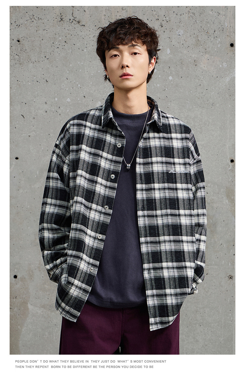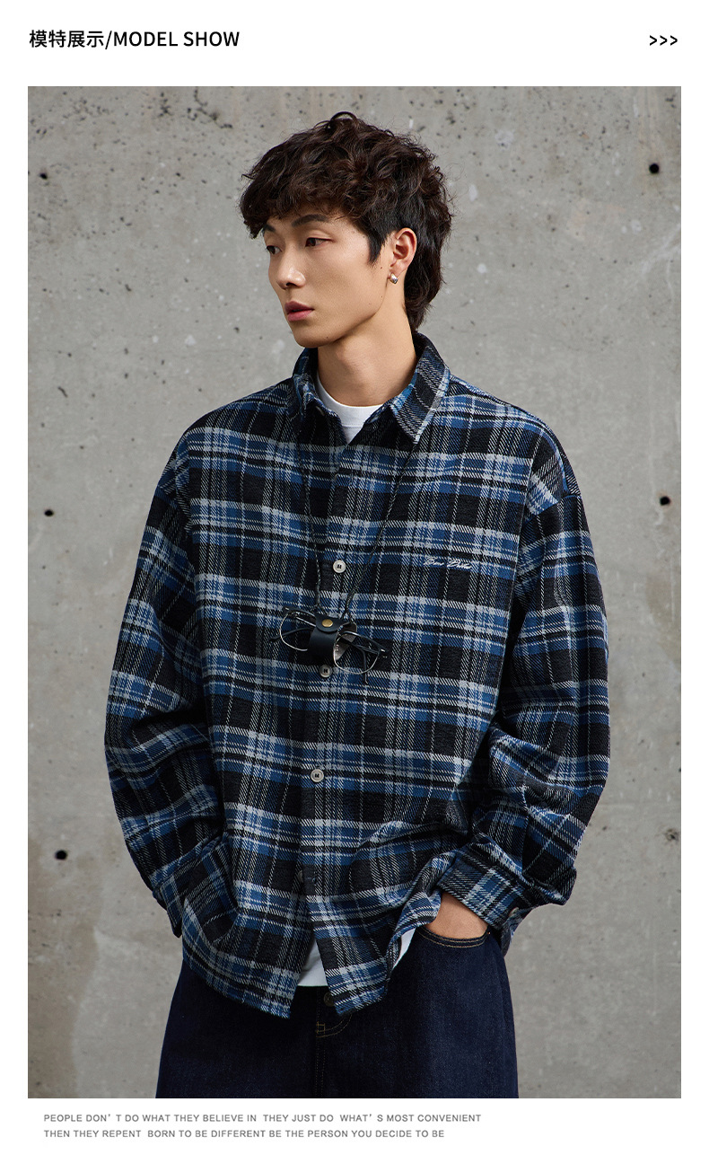 高品质男士宽松格子衬衫,休闲潮流上衣,春秋高街款式,透气耐磨,适合青年情侣穿搭